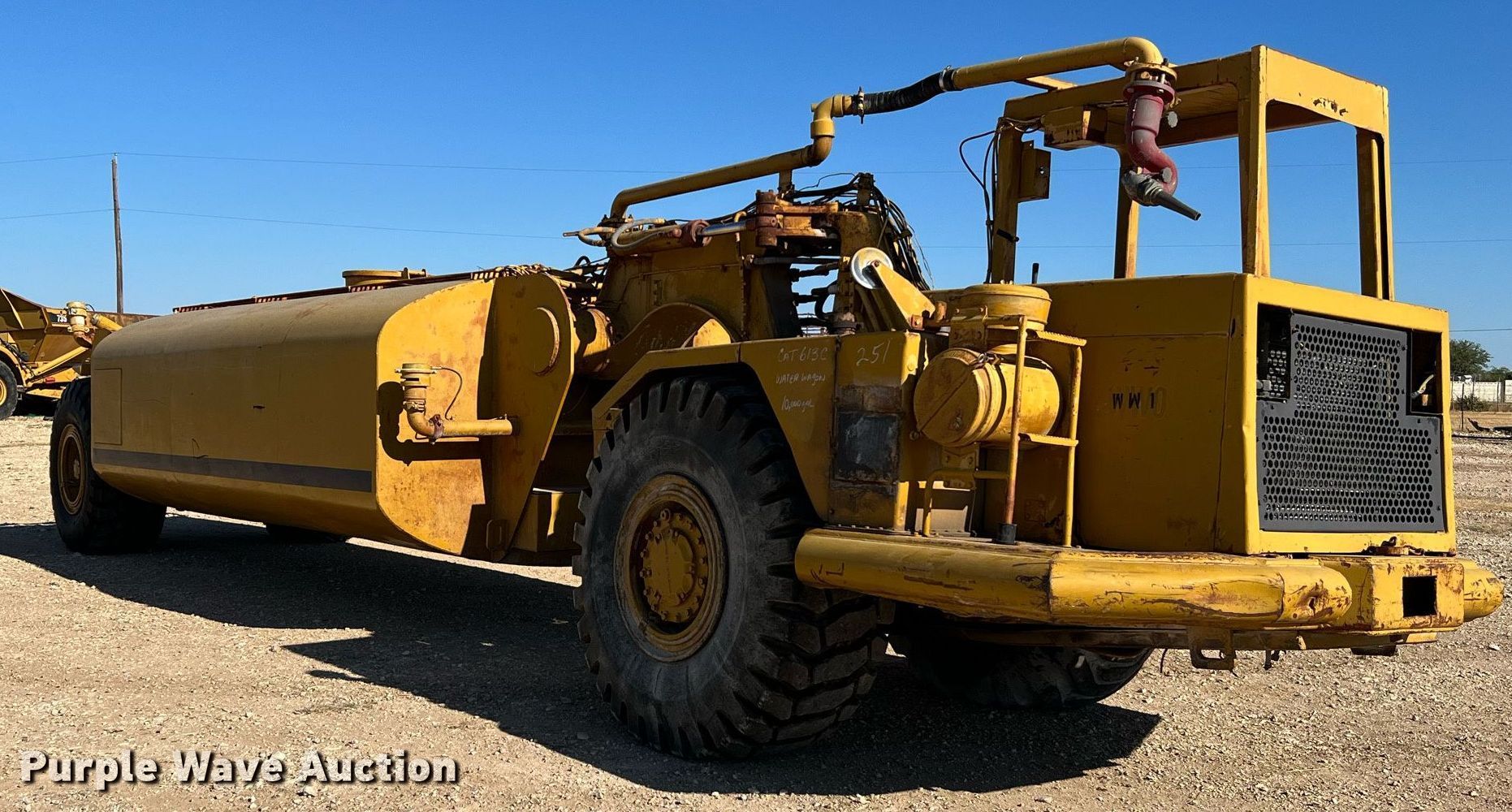 Purple Wave is selling a used Water Wagon in Texas. This item is a Caterpillar 613C water wagon with the following: Hours: 4,358 on meter, Unit #: WW1