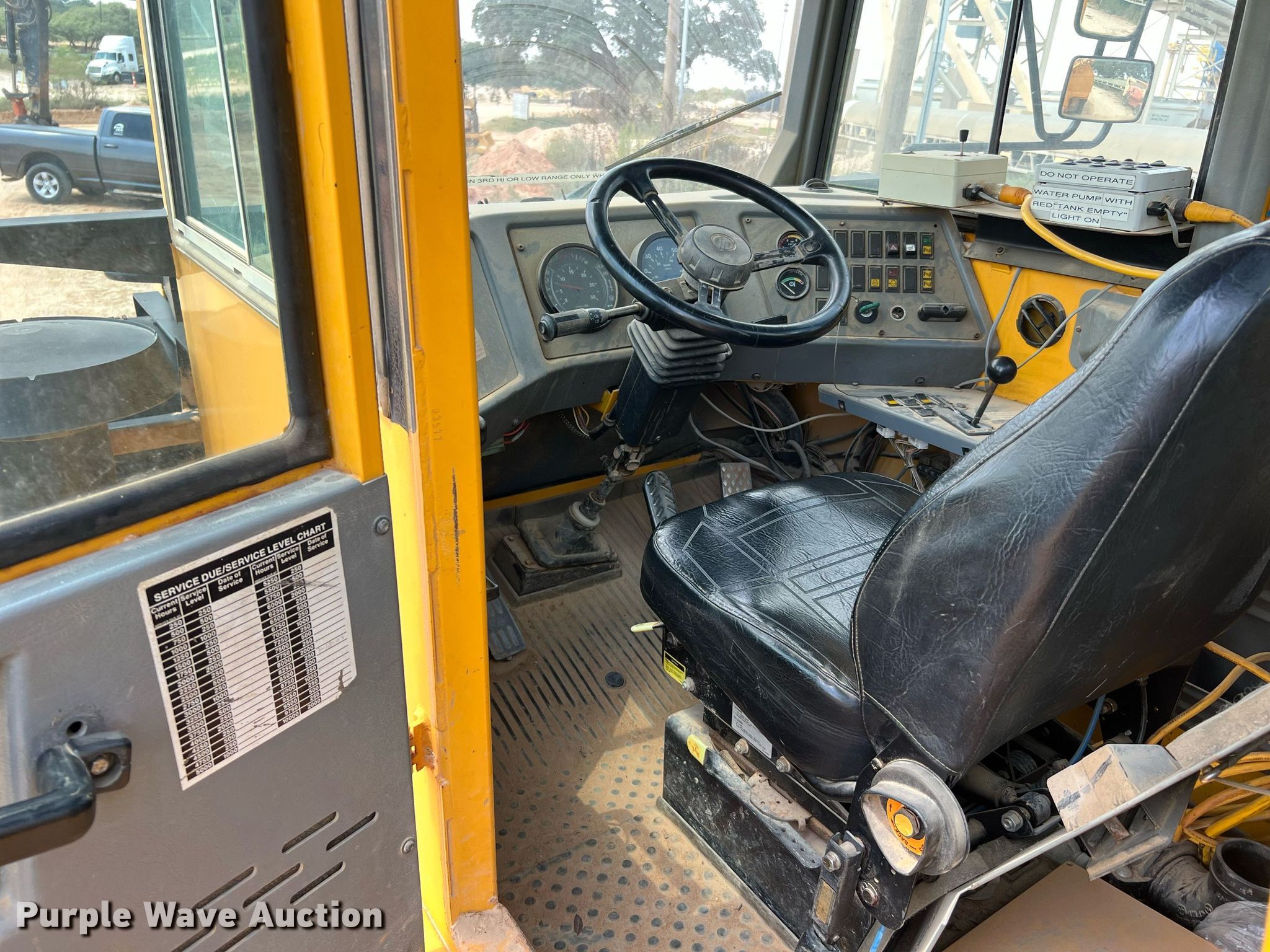 2000 Volvo A35C water wagon. Miles: 108,685 on odometer, Hours: 16,994 on meter, Serial: A35CV60640. Engine Volvo, Cylinders: 6, Fuel type: Diesel. Transmission Powershift, 4F - 1R. Chassis Six wheel drive. Interior AC, Heat. Features Water tank Spray bar: Rear, Side discharge, Water cannon, Remote control water cannon, Hose reel, In-cab spray controls. Tires Size: 26.5R25. Notes Flat tire. Superior Silica Sands LLC. 24068 Pleasanton Road. San Antonio, TX 78264