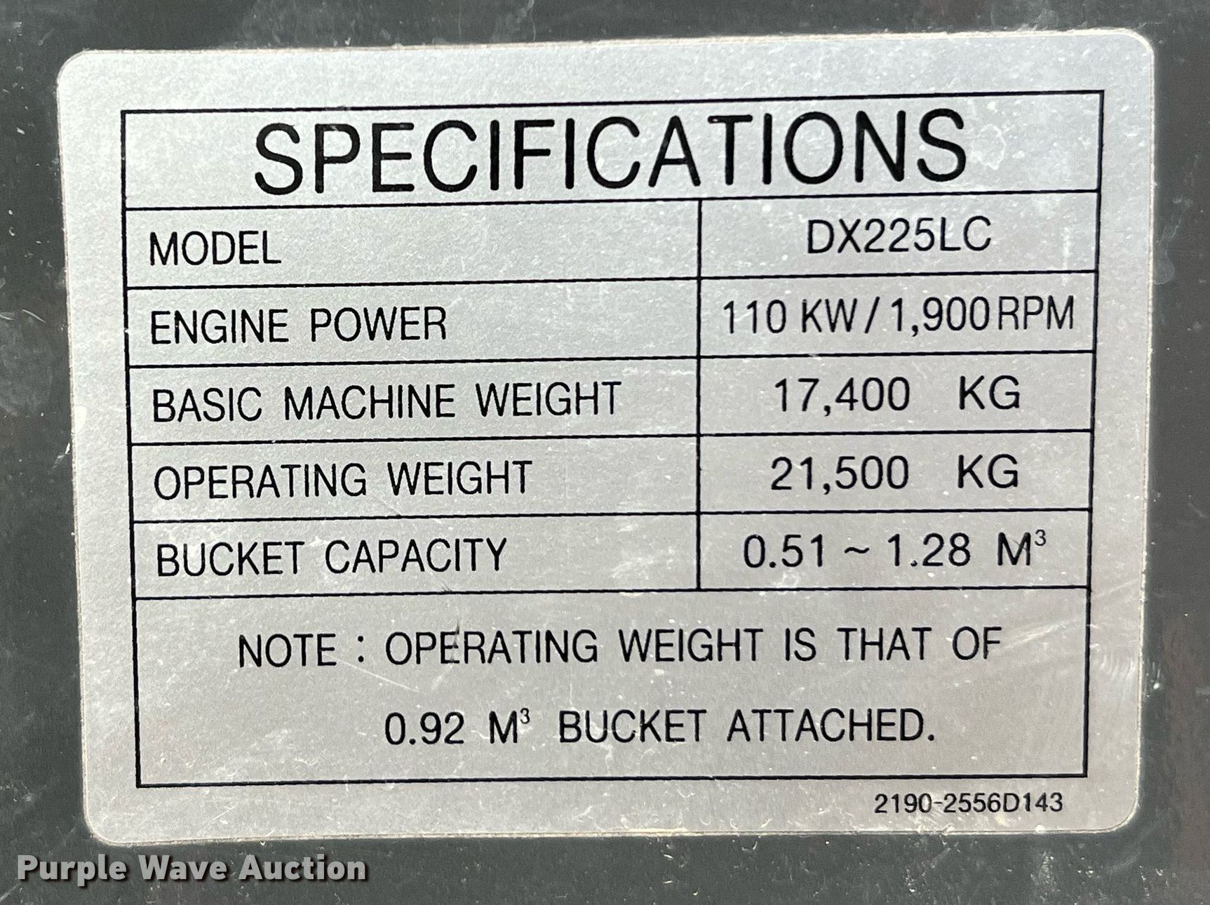 2011 Doosan DX225LC excavator | SOLD! September 28 Construction Equipment Auction