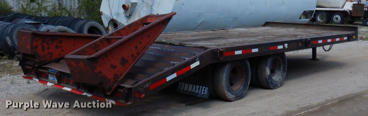 1999 Towmaster T20 equipment trailer. VIN: 4KNFT1922XL161008, Unit #: BC-5. Dimensions Overall: 29' 6" L x 102" W, Deck: 24' L x 102" W, Top deck length: 19', Deck height: 3', Ramps: Manual Length: 5'. Features Deck type: Wood. Chassis Hitch: Pintle, Landing gear: Single, Suspension: Spring, Brakes: Electric, Axles: Tandem, GVWR: 25,900 lbs, GAWR: 20,000 lbs. Tires Steel wheels, Size: LT245/75R16. Minnesota title. Title distribution may be delayed up to 14 days from verification of funds. Duininck Concrete. 4697 Minnesota 29. Alexandria, MN 56308