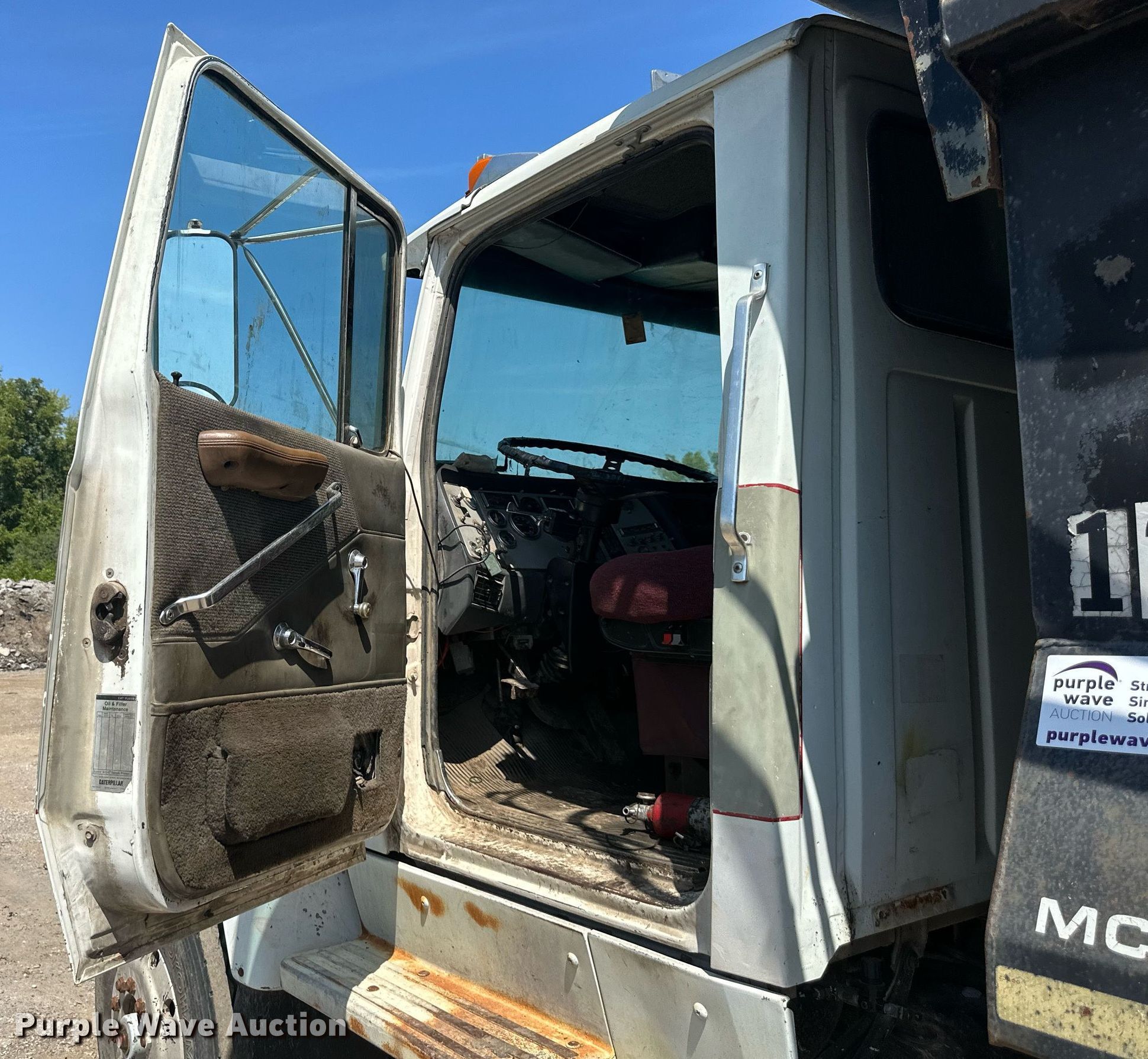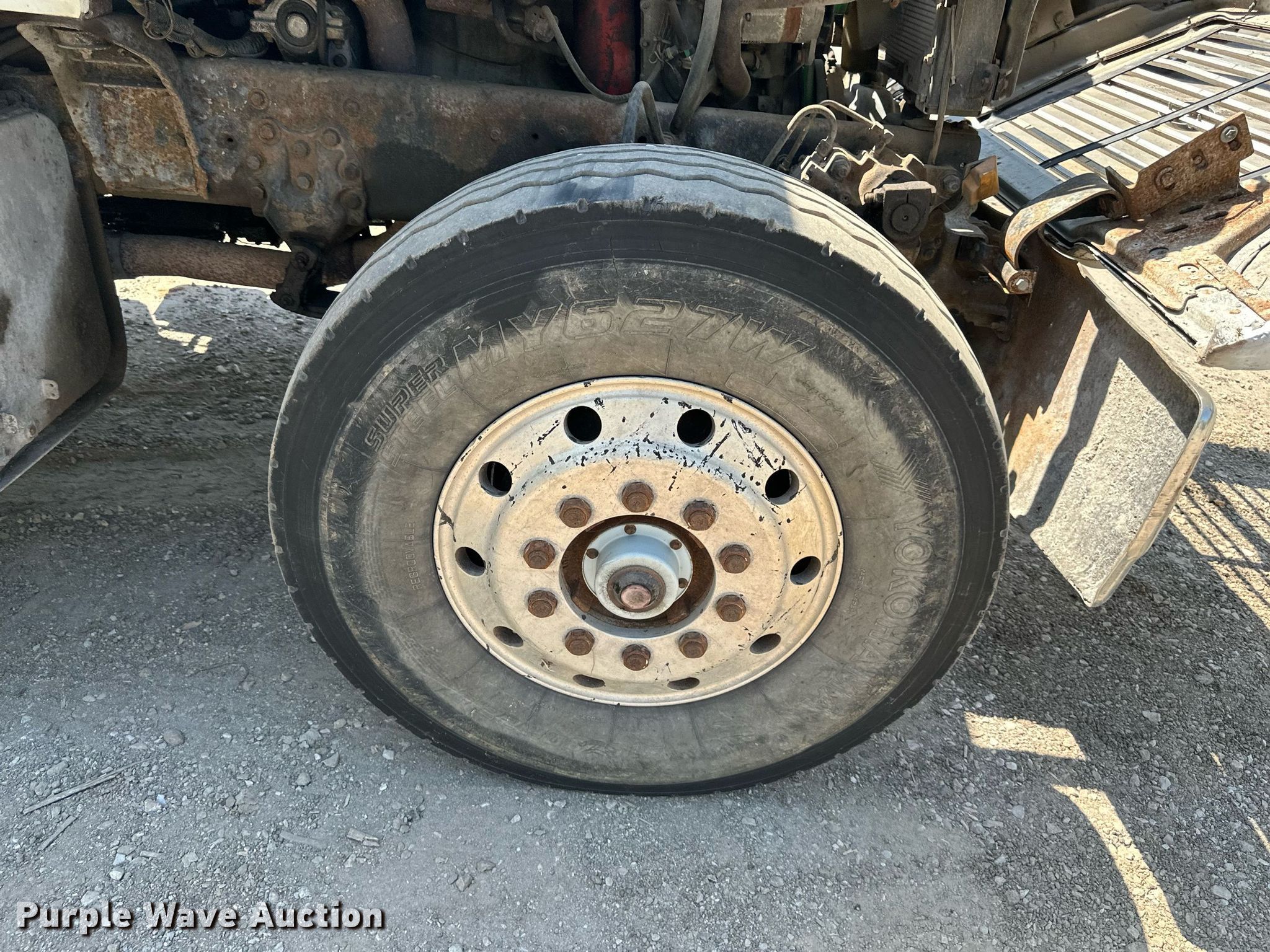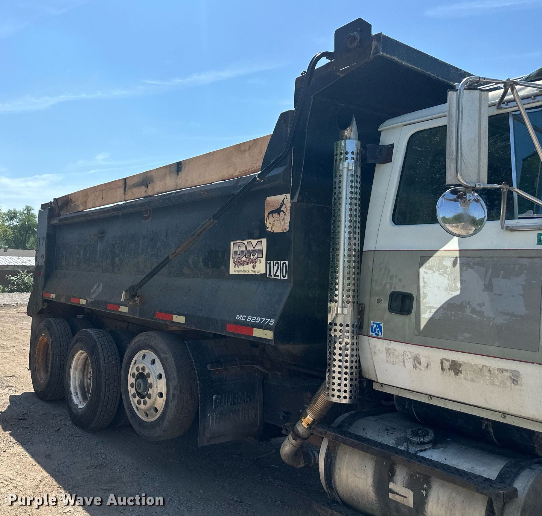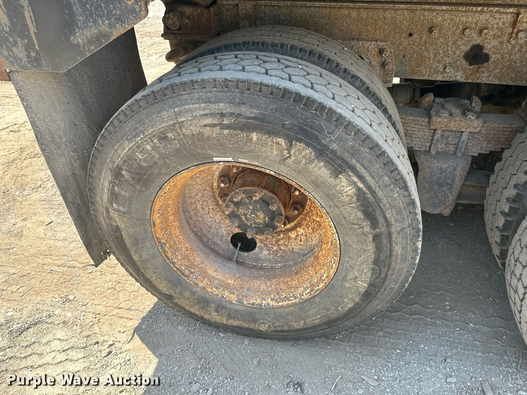 1995 Ford L8000 dump truck. Miles: 387,691 on odometer, Hours: 19,798 on meter, VIN: 1FDZU82E4SVA29442, Unit #: 120. Engine Cummins, Displacement: 8.3L, Cylinders: 6, Fuel type: Diesel. Transmission Manual, Speed: 10. Chassis Axles: Triple, Pusher axle Steerable, Differential lock: Inter-axle, Suspension: Spring over walking beam, Brakes: Air, PTO, GVWR: 56,500 lbs FAWR: 16,540 lbs, RAWR: 40,000 lbs. Interior Heat. Features Dump bed 16' L x 96" W, Side height: 42", Side board height: 10", Bed type: Steel, Roll tarp, Ram: Single , End gate: Air operated. Tires Front: 315/80R22.5, Rear: 11R22.5, Lift axle: 255/70R22.5. Missouri title. Title distribution may be delayed up to 14 days from verification of funds. 9215 East Wilson Road. Independence, MO 64053