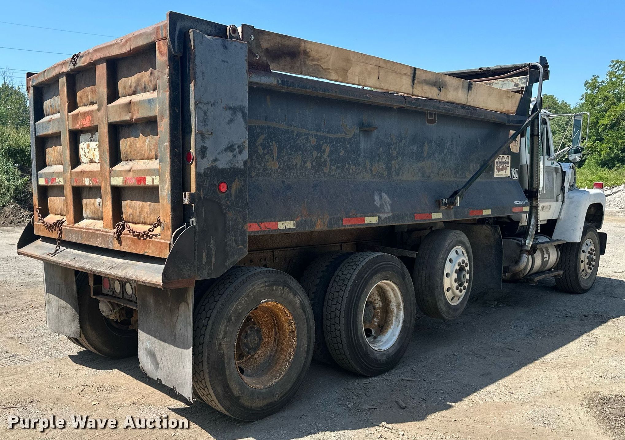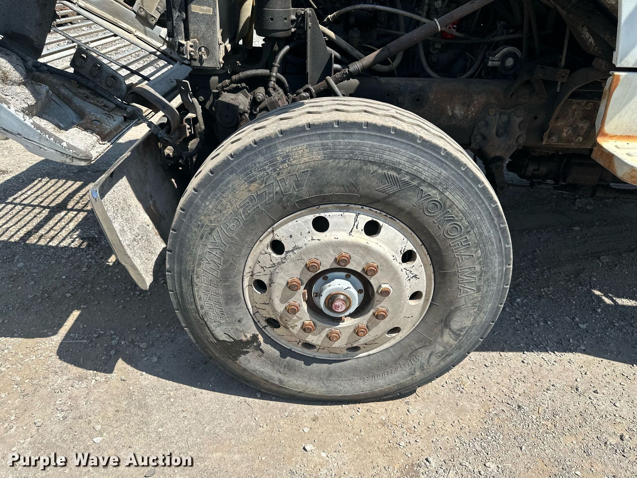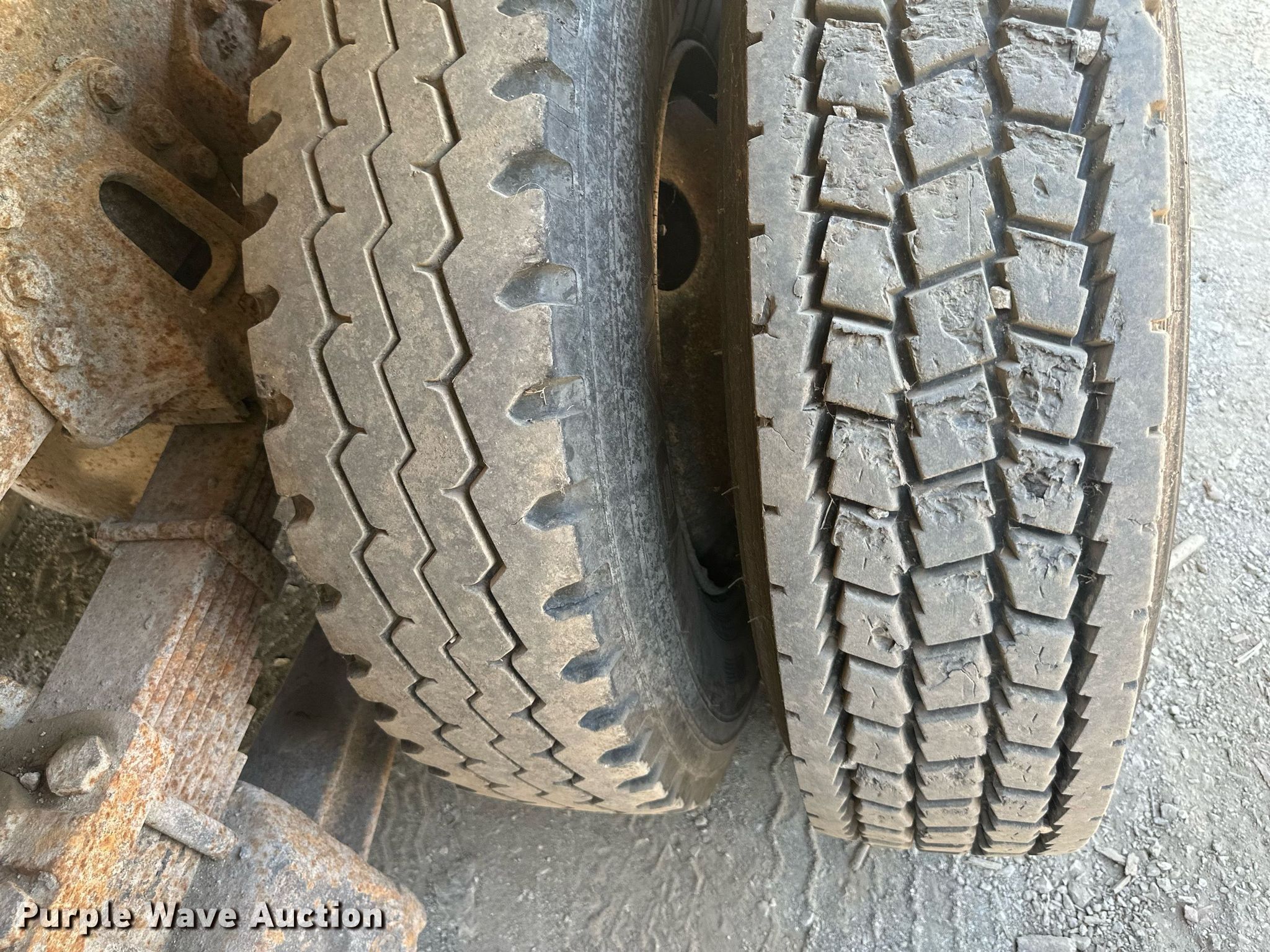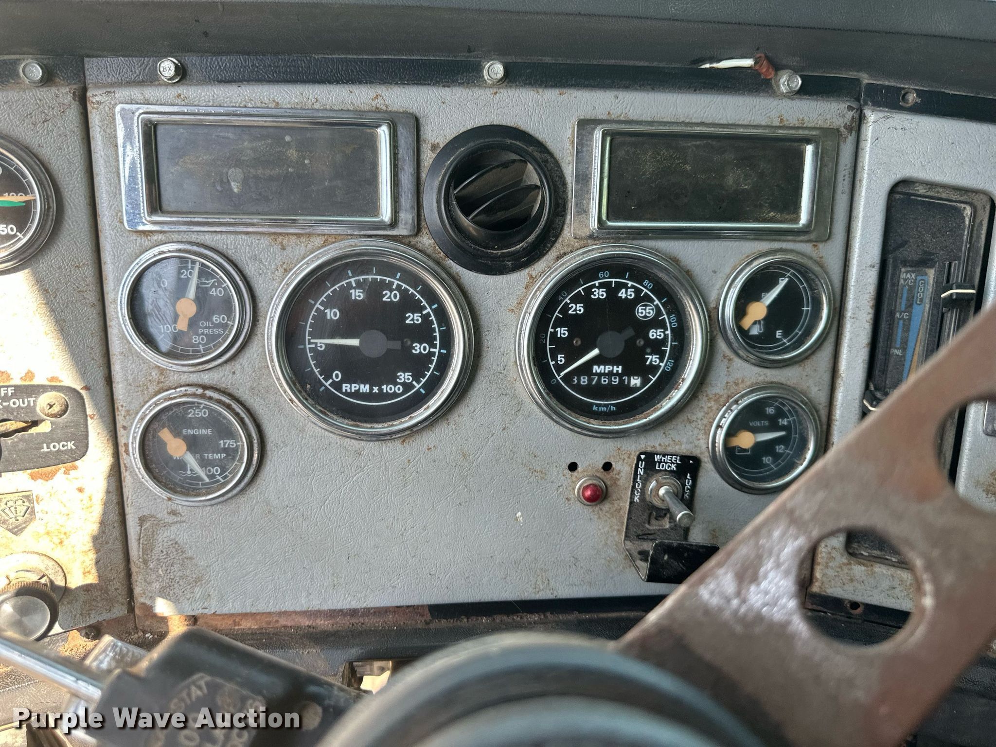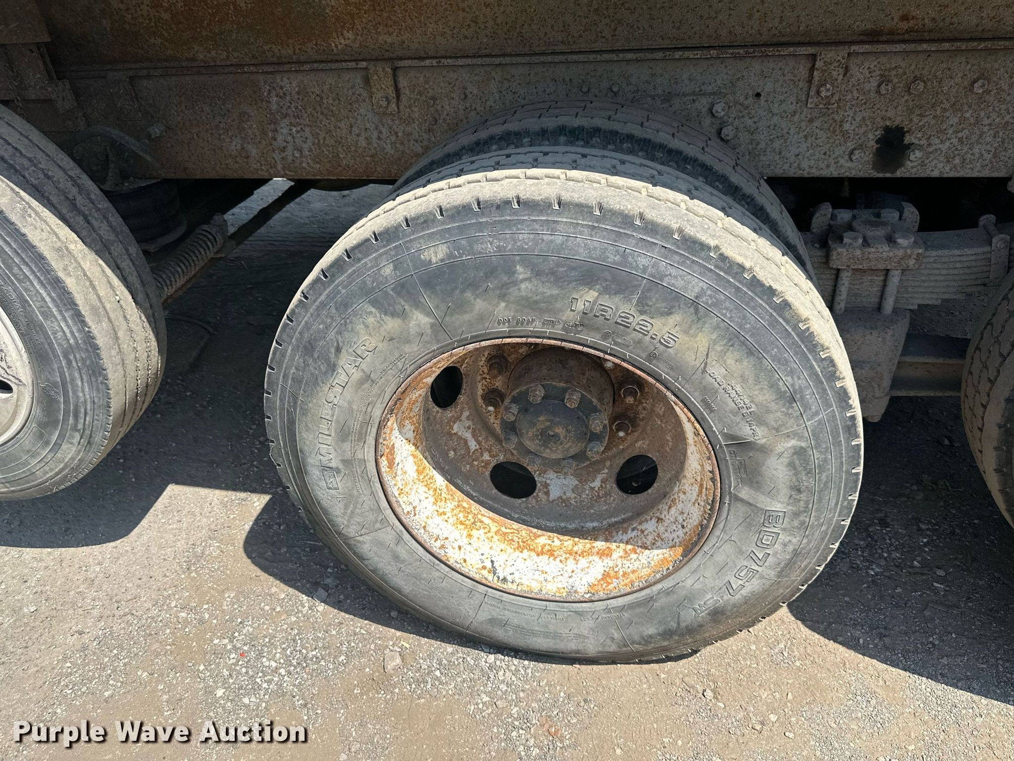 1995 Ford L8000 dump truck. Miles: 387,691 on odometer, Hours: 19,798 on meter, VIN: 1FDZU82E4SVA29442, Unit #: 120. Engine Cummins, Displacement: 8.3L, Cylinders: 6, Fuel type: Diesel. Transmission Manual, Speed: 10. Chassis Axles: Triple, Pusher axle Steerable, Differential lock: Inter-axle, Suspension: Spring over walking beam, Brakes: Air, PTO, GVWR: 56,500 lbs FAWR: 16,540 lbs, RAWR: 40,000 lbs. Interior Heat. Features Dump bed 16' L x 96" W, Side height: 42", Side board height: 10", Bed type: Steel, Roll tarp, Ram: Single , End gate: Air operated. Tires Front: 315/80R22.5, Rear: 11R22.5, Lift axle: 255/70R22.5. Missouri title. Title distribution may be delayed up to 14 days from verification of funds. 9215 East Wilson Road. Independence, MO 64053
