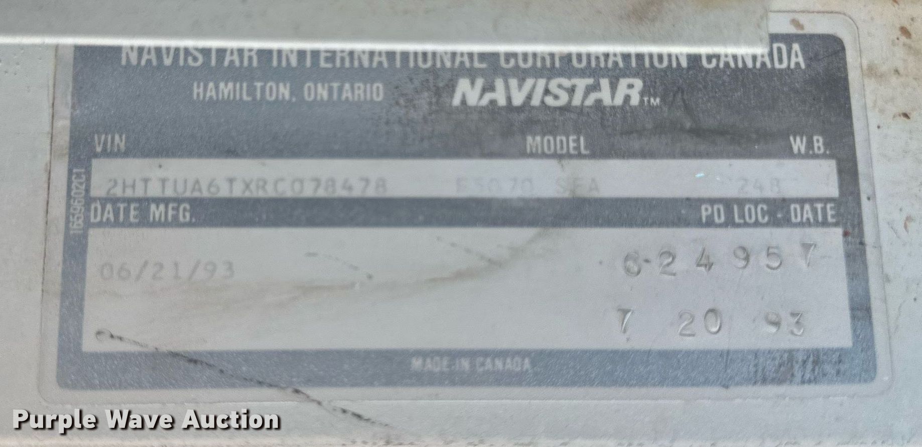 1994 International F5070 ready mix truck. Miles: 207,850 on odometer, Hours: 96 on meter, VIN: 2HTTUA6TXRC078478, Unit #: 44. Engine Displacement: 10.0L, Cylinders: 6, Fuel type: Diesel. Transmission Eaton Fuller Road Ranger, Manual, Speed: 9. Chassis Axles: Tandem, Differential lock: Inter-axle, Suspension: Spring over walking beam, Brakes: Air, PTO. Interior AC, Heat. Features Mixer McNeilus, Discharge: Rear, In-cab controls, Rear drum controls, Water tank capacity: 150 gallons, Chute Chute type: Steel.. Tires Front: 425/65R22.5, Rear: 11R22.5. Missouri title. Title distribution may be delayed up to 14 days from verification of funds. 9215 East Wilson Road. Independence, MO 64053