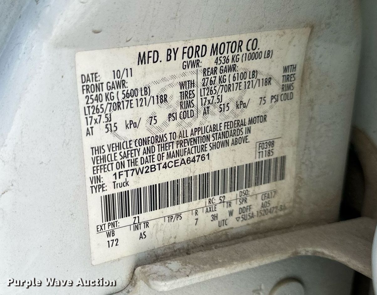 - VIN: 1FT7W2BT4CEA64761