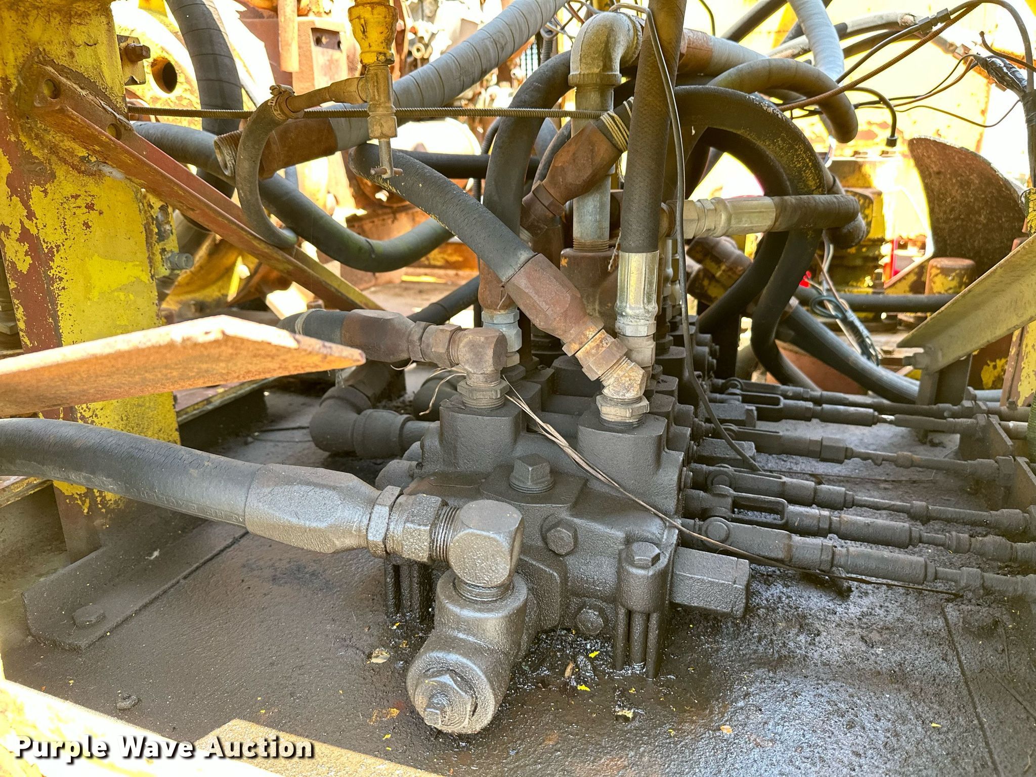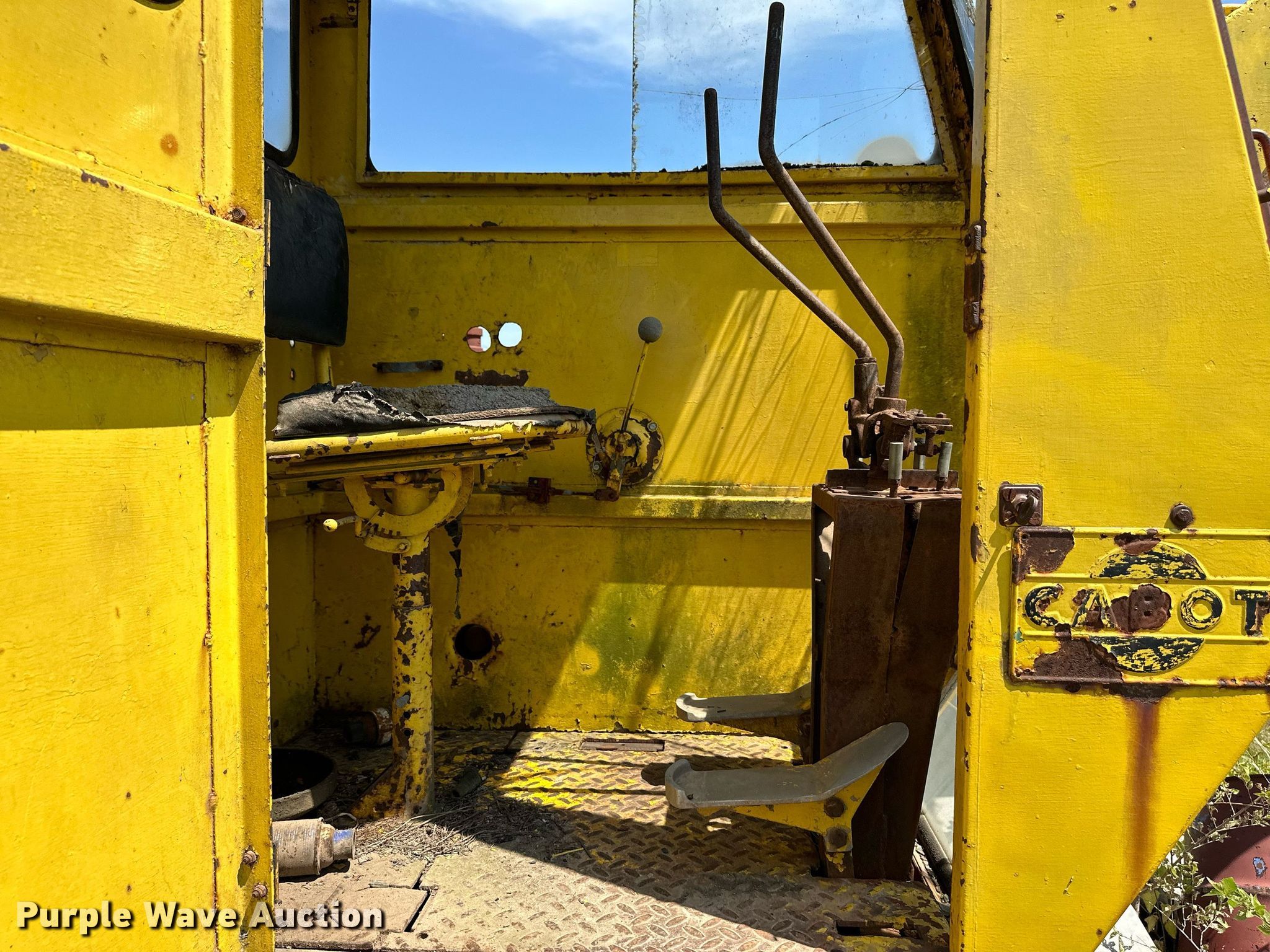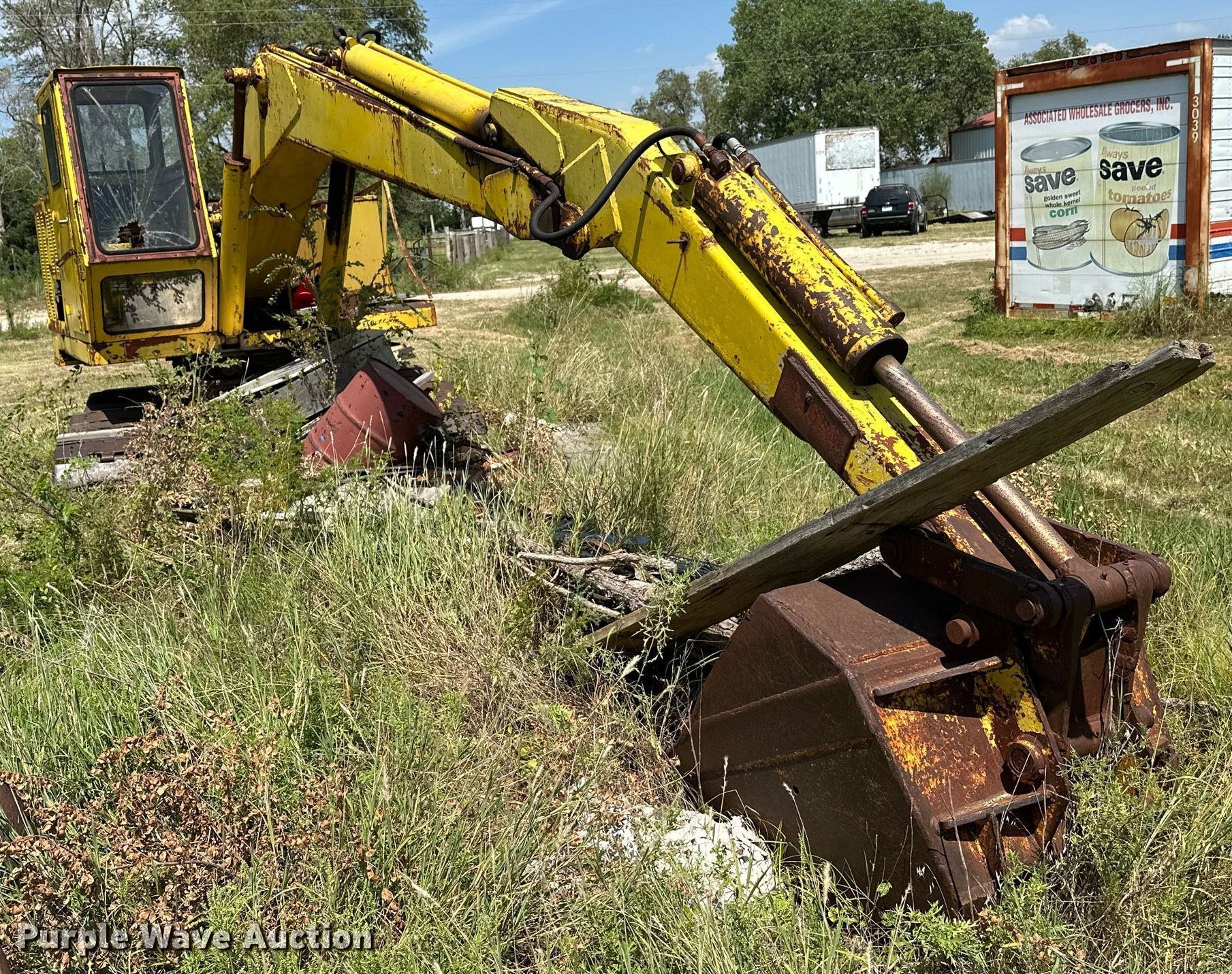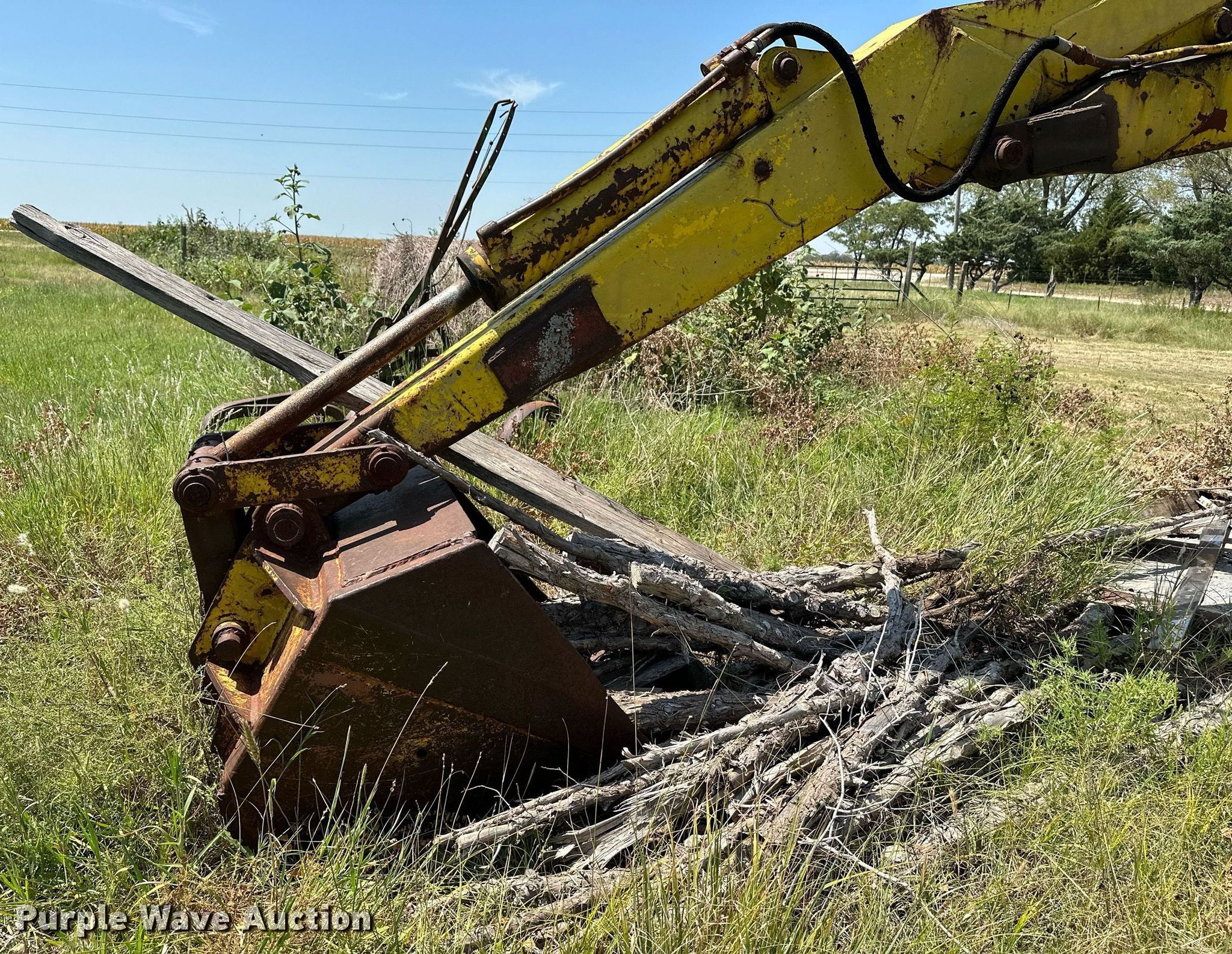Cabot Earthripper 5000 excavator. Hours: Unknown, Serial: 563DK5-39. Engine General Motors, Cylinders: 4, Fuel type: Diesel. Transmission Hydrostatic. Operators station Enclosed cab. Features Auxiliary hydraulics, Boom Standard, Stick Stick length: 80", Bucket Width: 36", Cutting edge: Bolt-on, Teeth: 5. Tracks Width: 24", Steel. Notes Glass cracked, Cracked cab glass, Non-operational unit. Wilhite Truck Sales and Parts. Burrton, KS 67020