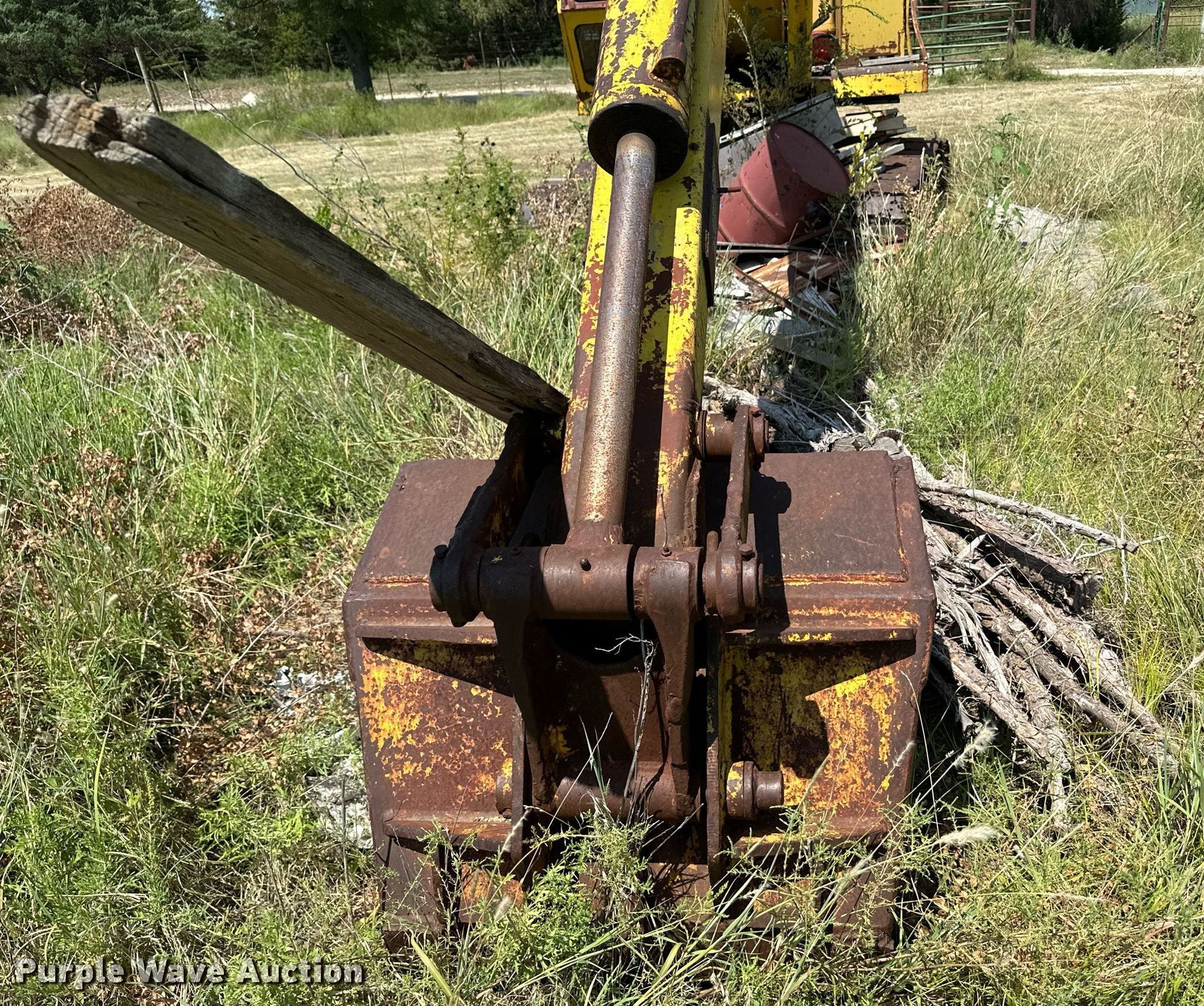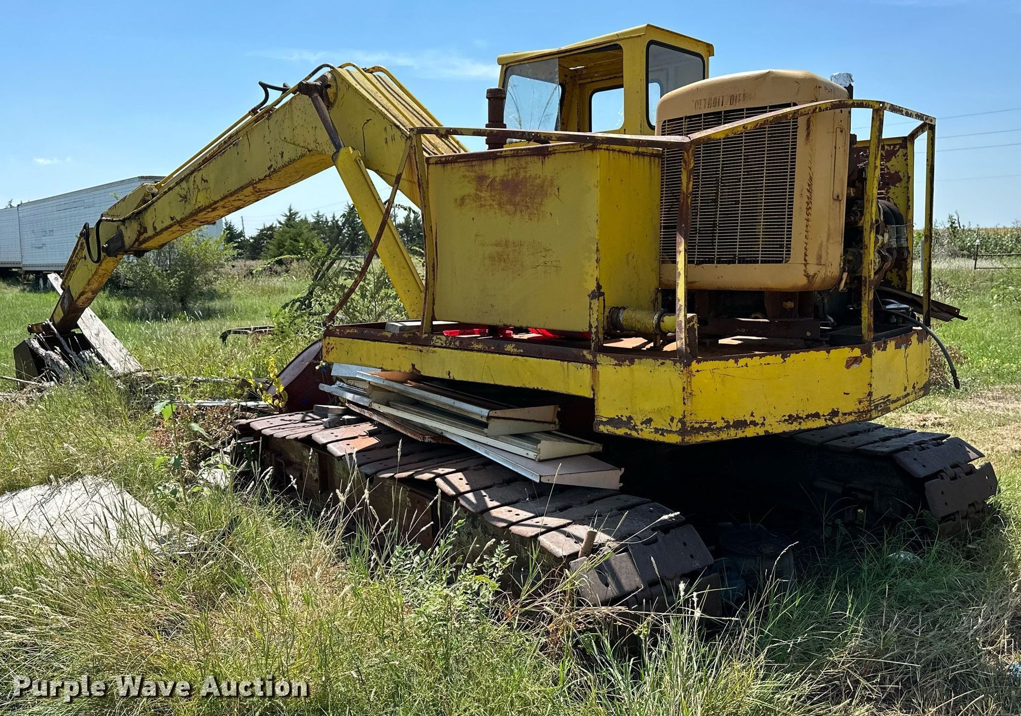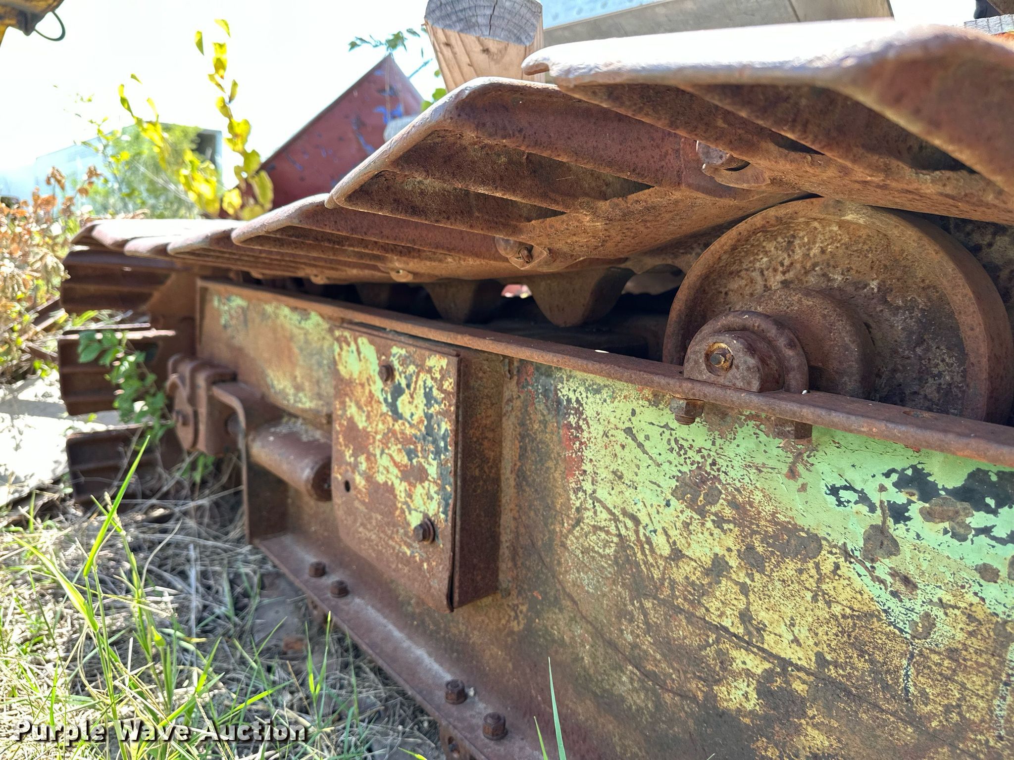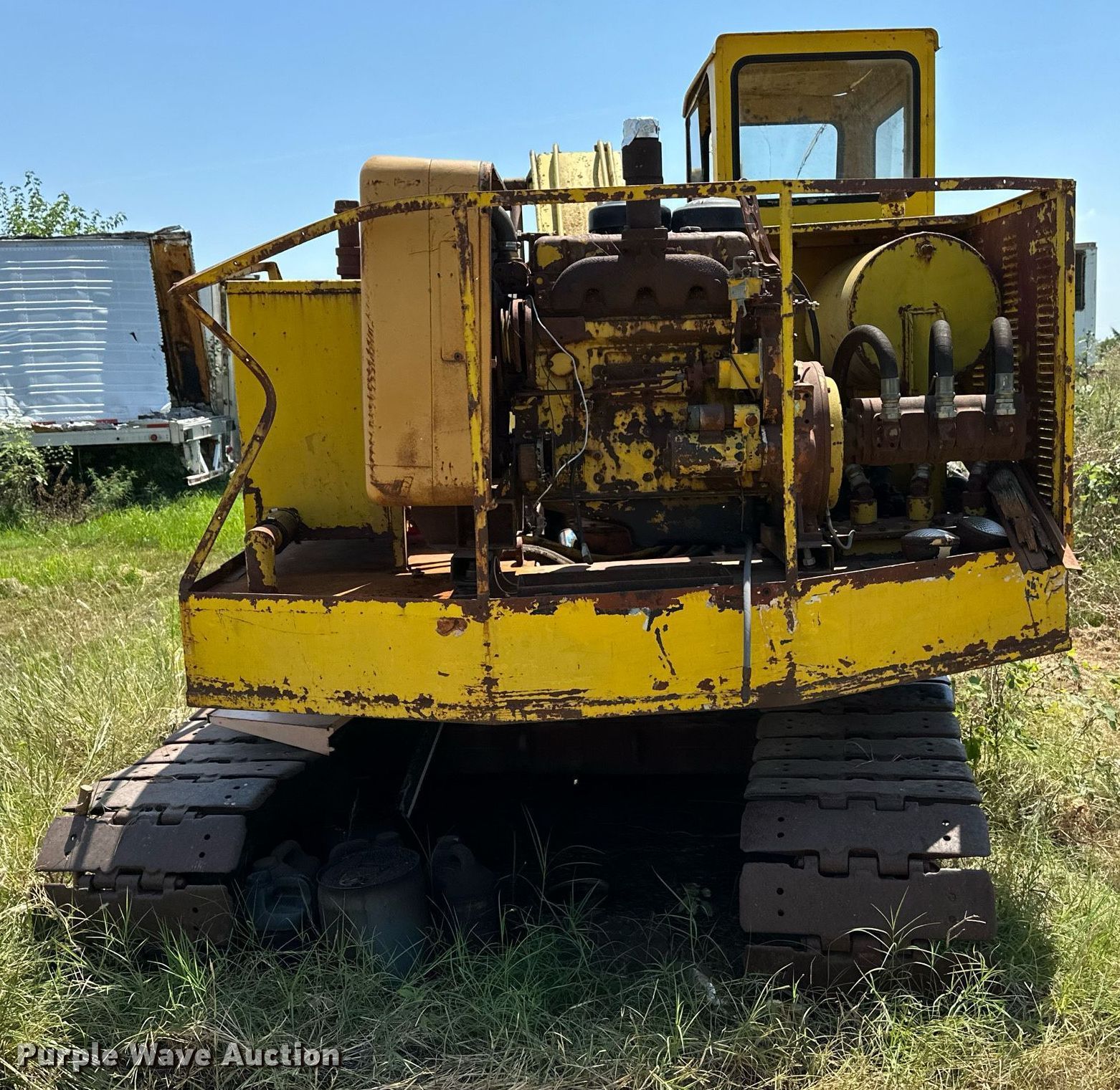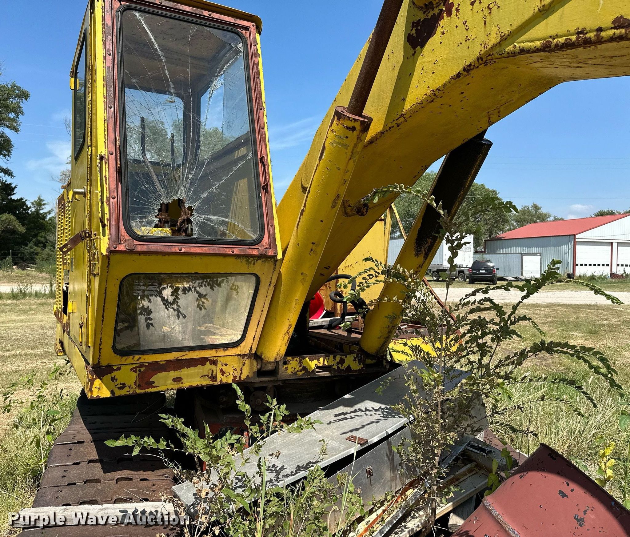 Cabot Earthripper 5000 excavator. Hours: Unknown, Serial: 563DK5-39. Engine General Motors, Cylinders: 4, Fuel type: Diesel. Transmission Hydrostatic. Operators station Enclosed cab. Features Auxiliary hydraulics, Boom Standard, Stick Stick length: 80", Bucket Width: 36", Cutting edge: Bolt-on, Teeth: 5. Tracks Width: 24", Steel. Notes Glass cracked, Cracked cab glass, Non-operational unit. Wilhite Truck Sales and Parts. Burrton, KS 67020