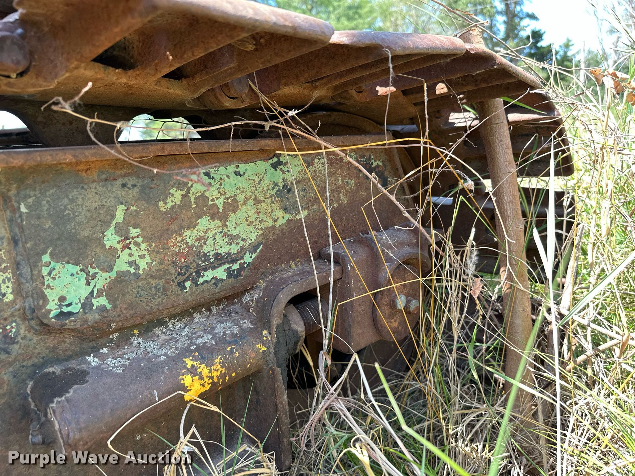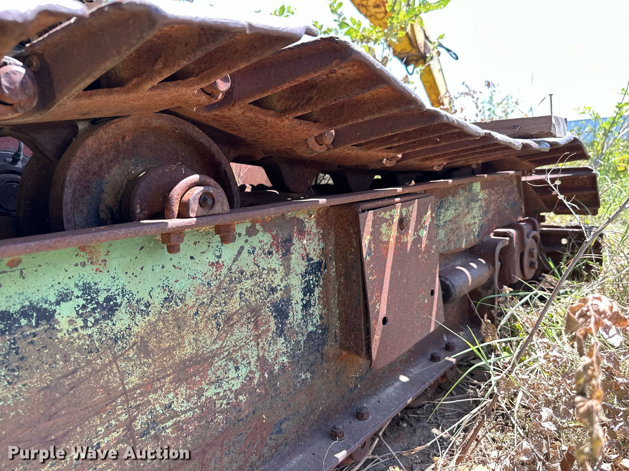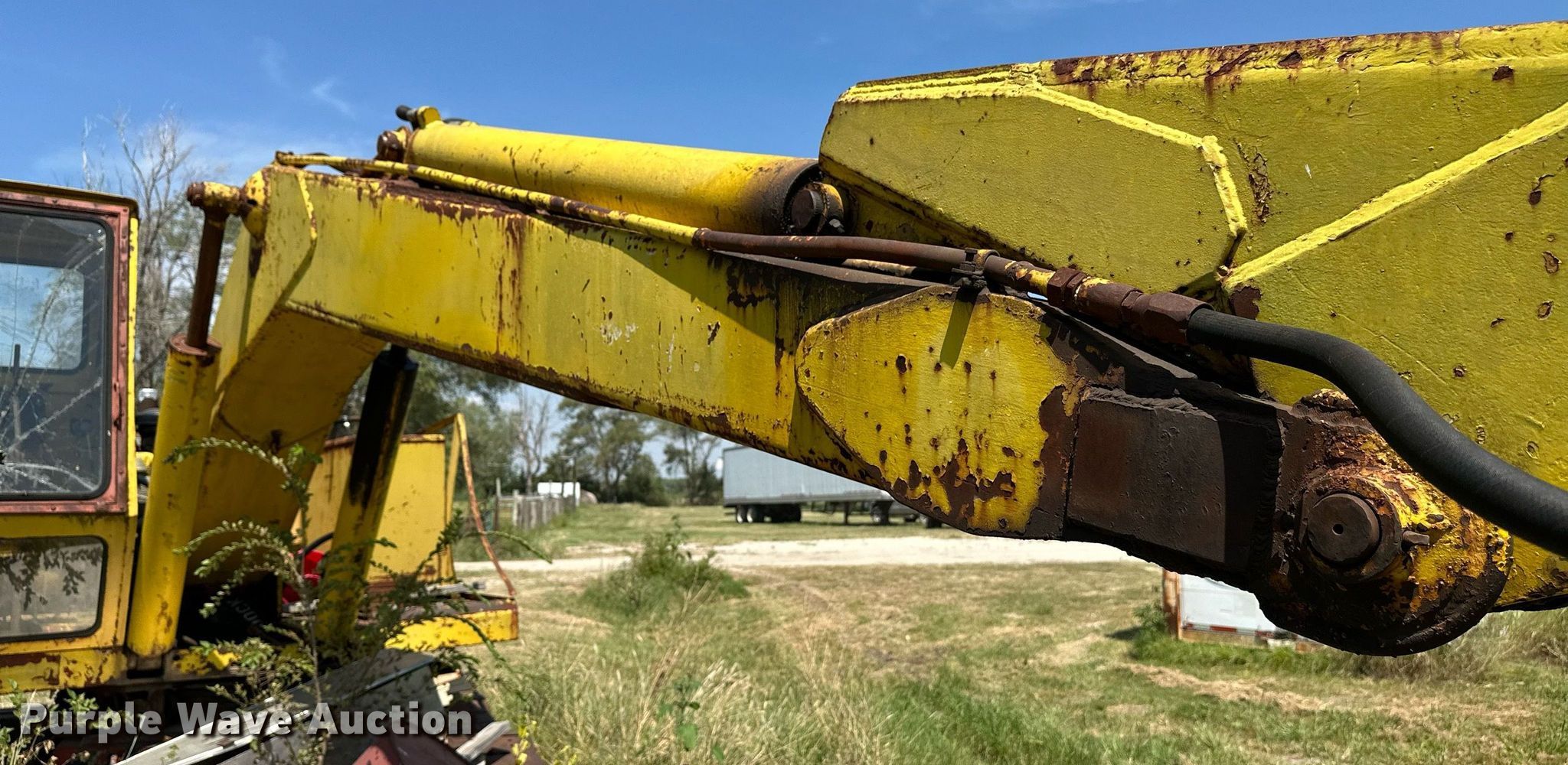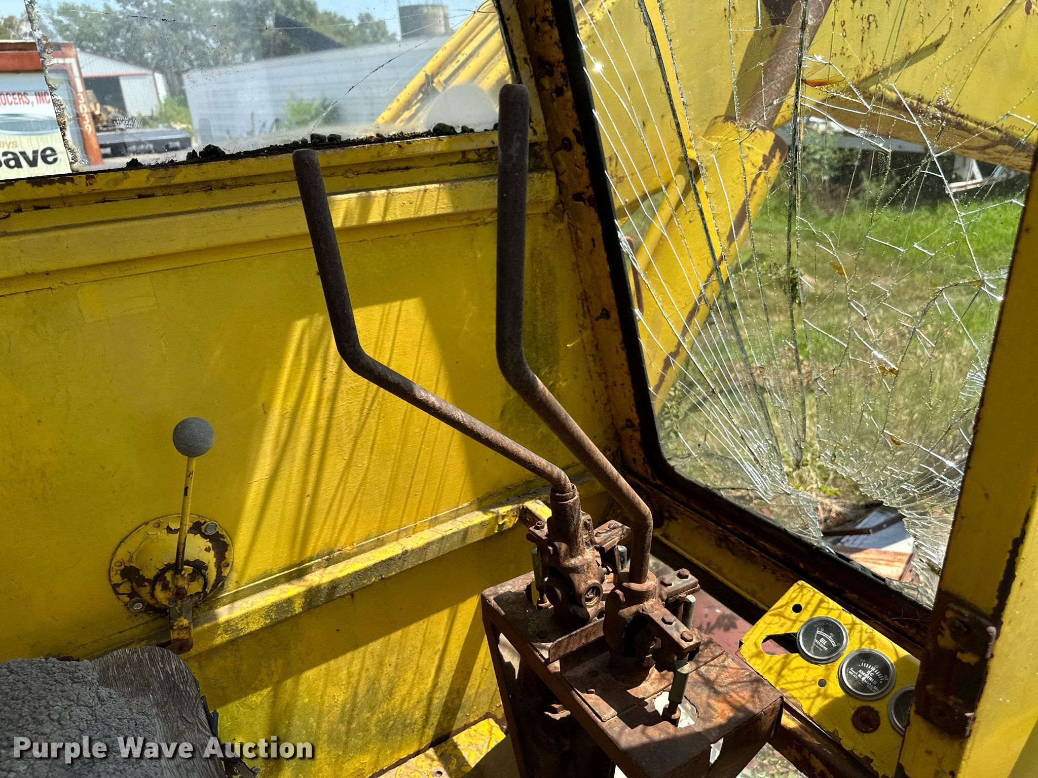 Cabot Earthripper 5000 excavator. Hours: Unknown, Serial: 563DK5-39. Engine General Motors, Cylinders: 4, Fuel type: Diesel. Transmission Hydrostatic. Operators station Enclosed cab. Features Auxiliary hydraulics, Boom Standard, Stick Stick length: 80", Bucket Width: 36", Cutting edge: Bolt-on, Teeth: 5. Tracks Width: 24", Steel. Notes Glass cracked, Cracked cab glass, Non-operational unit. Wilhite Truck Sales and Parts. Burrton, KS 67020