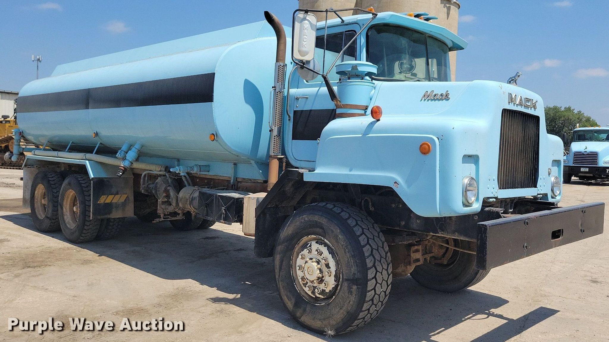 Purple Wave is selling a used Tank Truck or Water Truck in Iowa. This item is a 1974 Mack water truck with the following: Miles: 212,980 on odometer, Hours: 3,428 on meter, VIN: DMM6856S2094