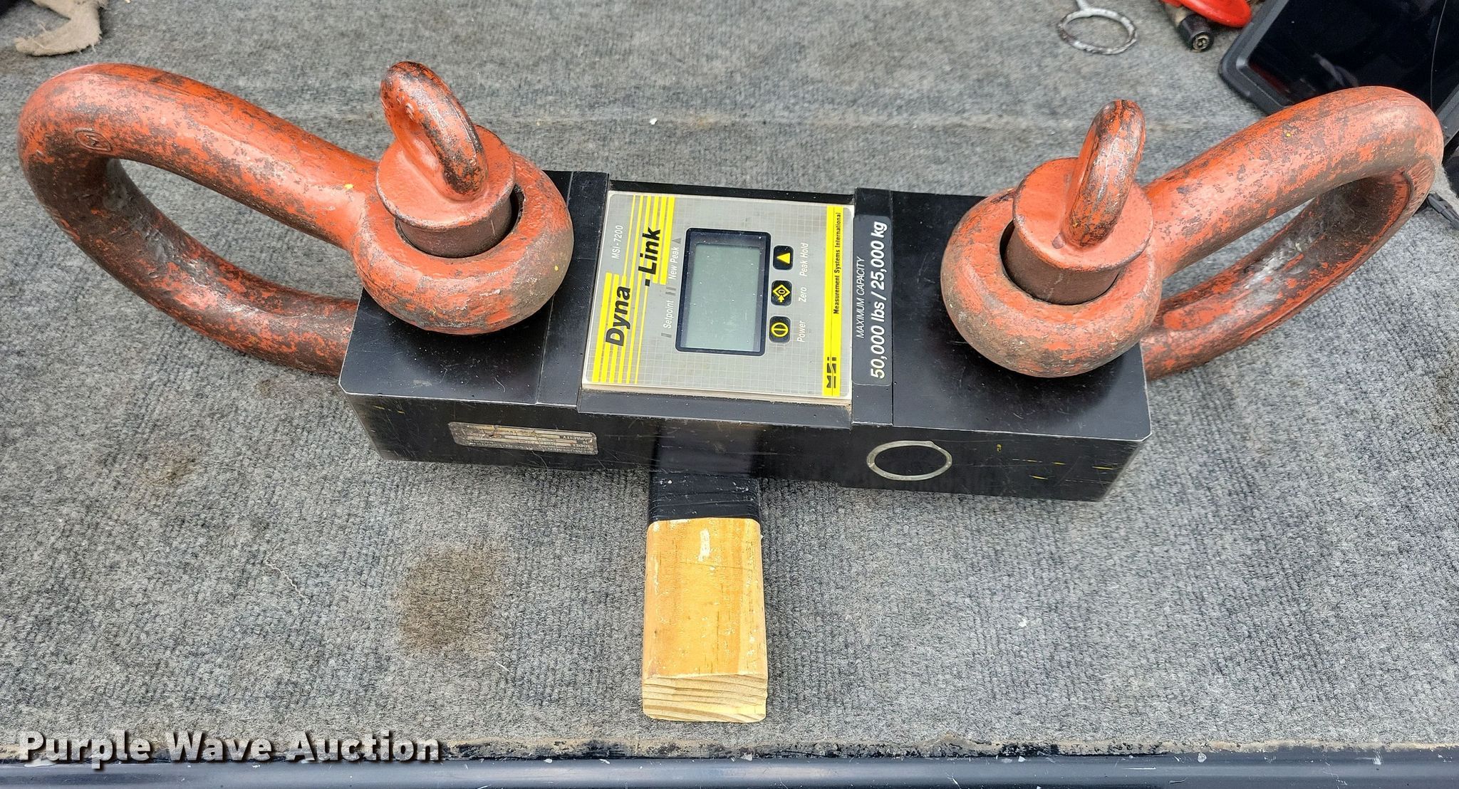Purple Wave is selling a used Crane Attach. in Iowa. This item is a Dyna-Link MSI-7200 load testing cell with the following: Serial: 70839, Capacity: 50,000 lbs, (2) 30T clevises