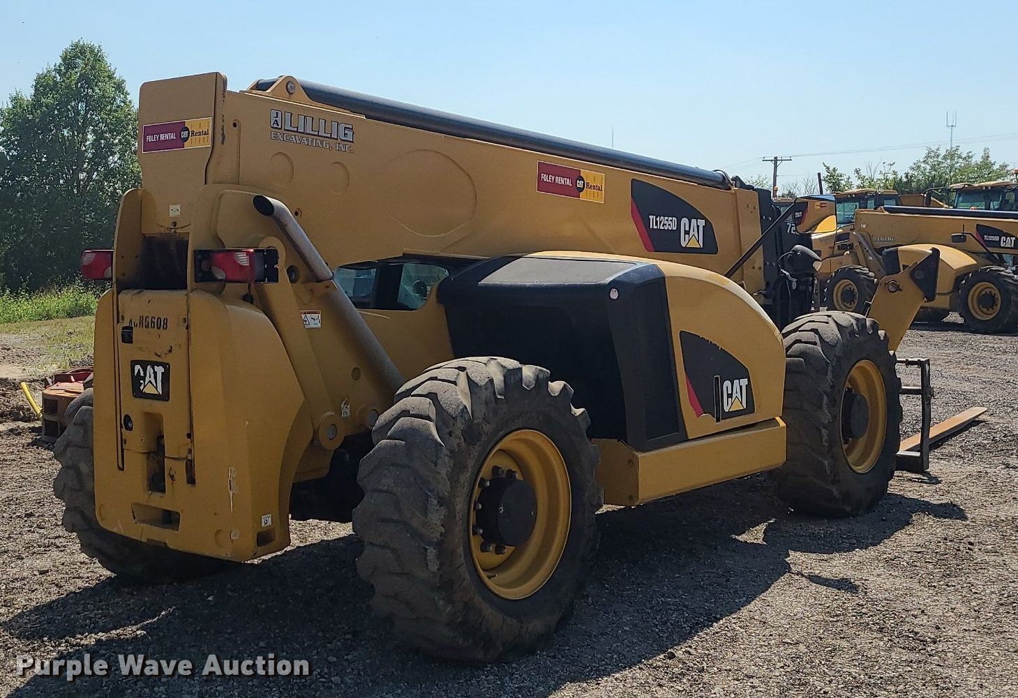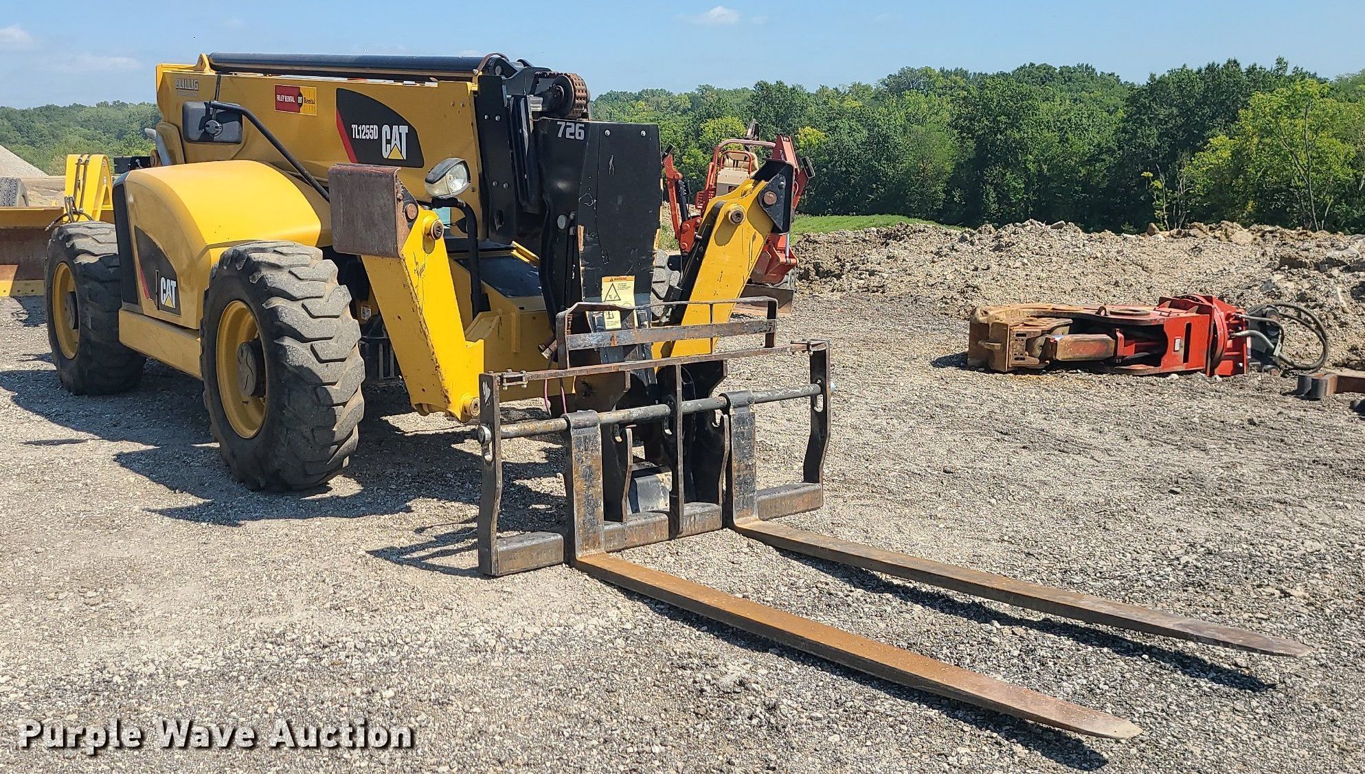 Purple Wave is selling a used Telehandler in Missouri. This item is a 2018 Caterpillar TL1255D telehandler with the following: Hours: 3,292 on meter, Serial: ML701332