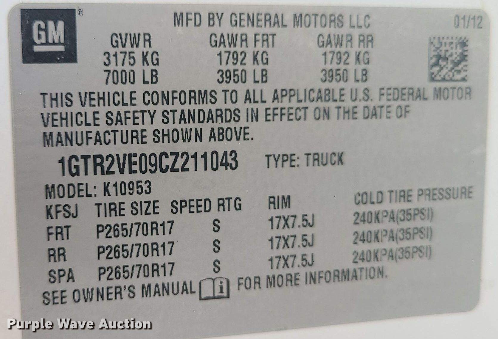 - VIN: 1GTR2VE09CZ211043
