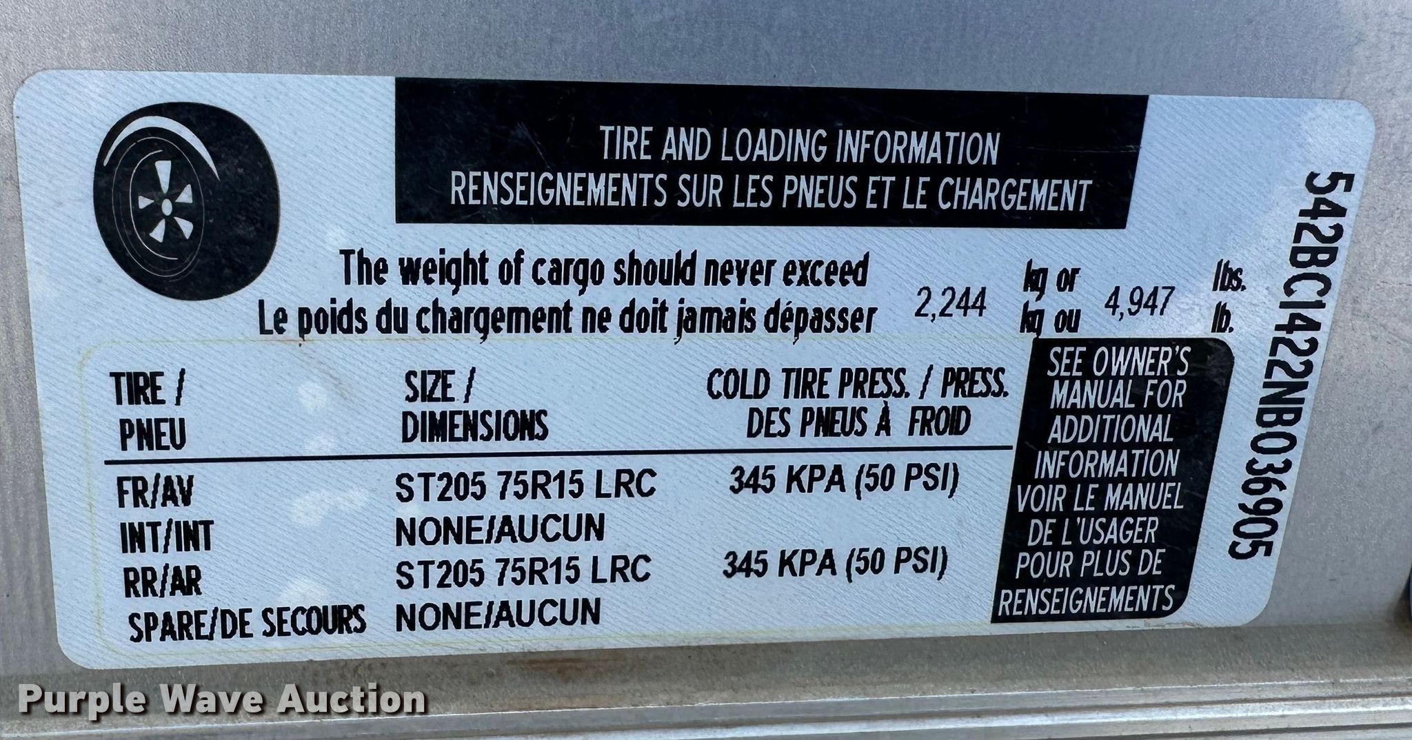 - VIN: 542BC1422NB036905