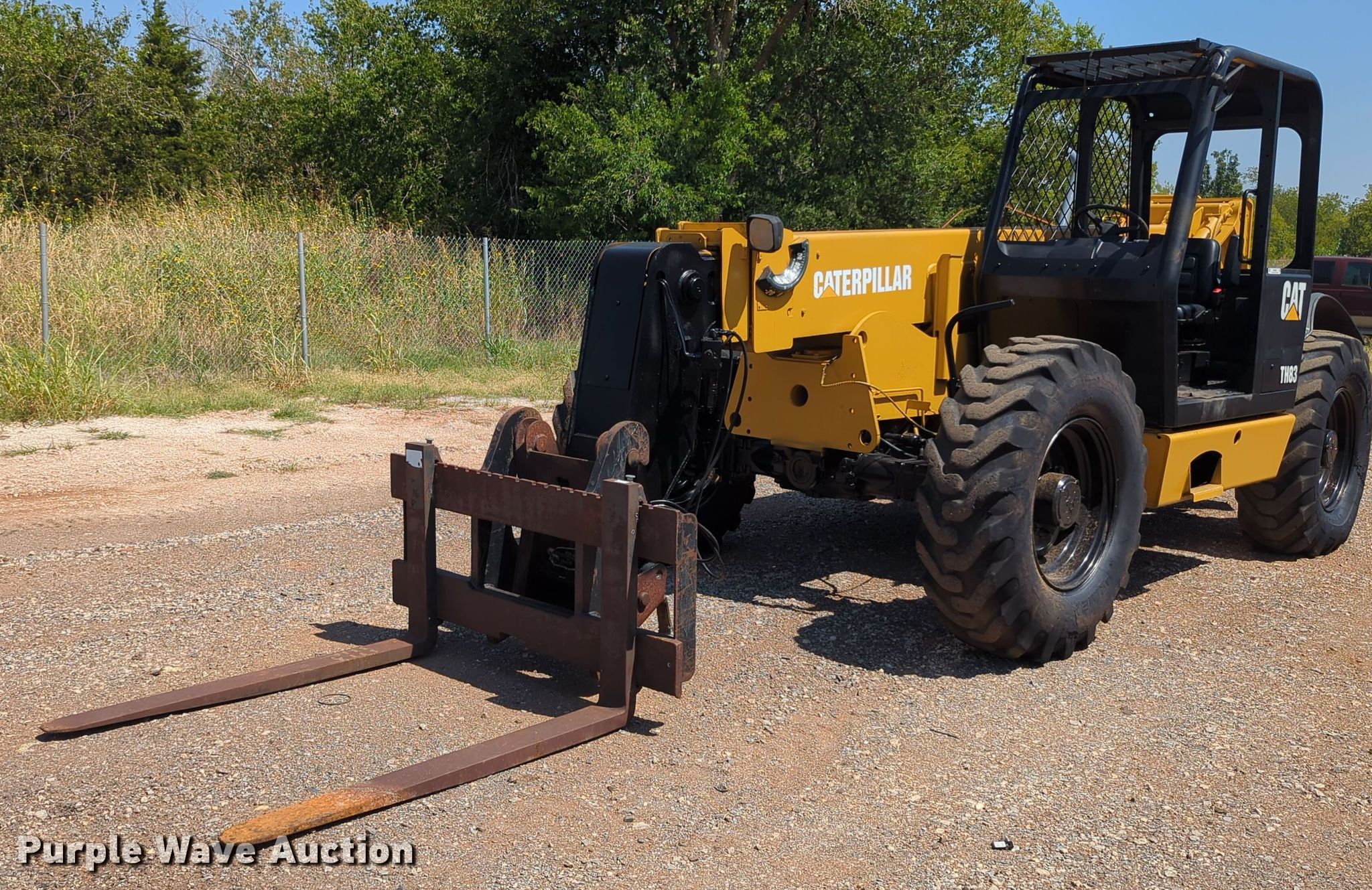 Purple Wave is selling a used Telehandler in Oklahoma. This item is a Caterpillar TH83 telehandler with the following: Hours: 3,860 on meter