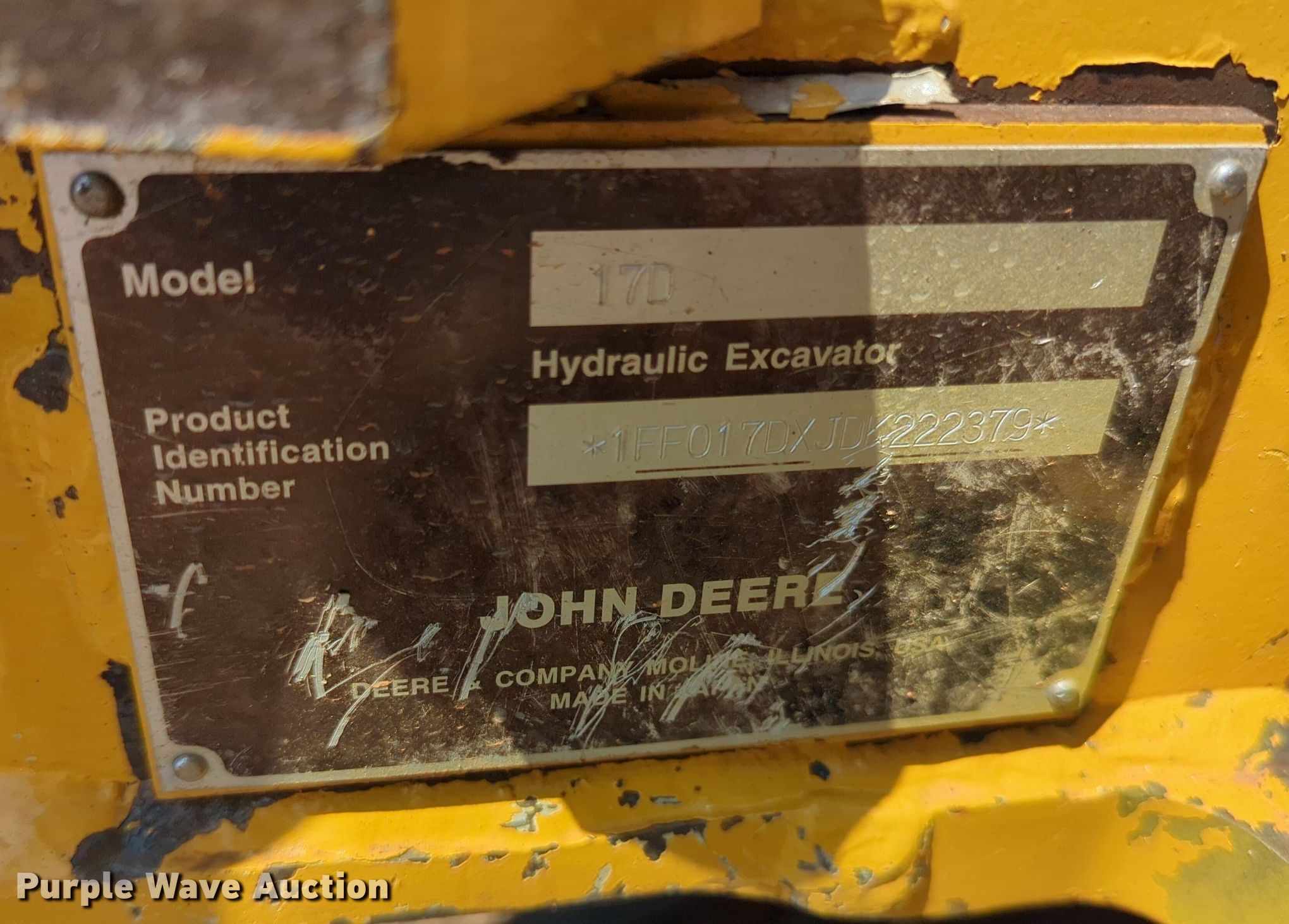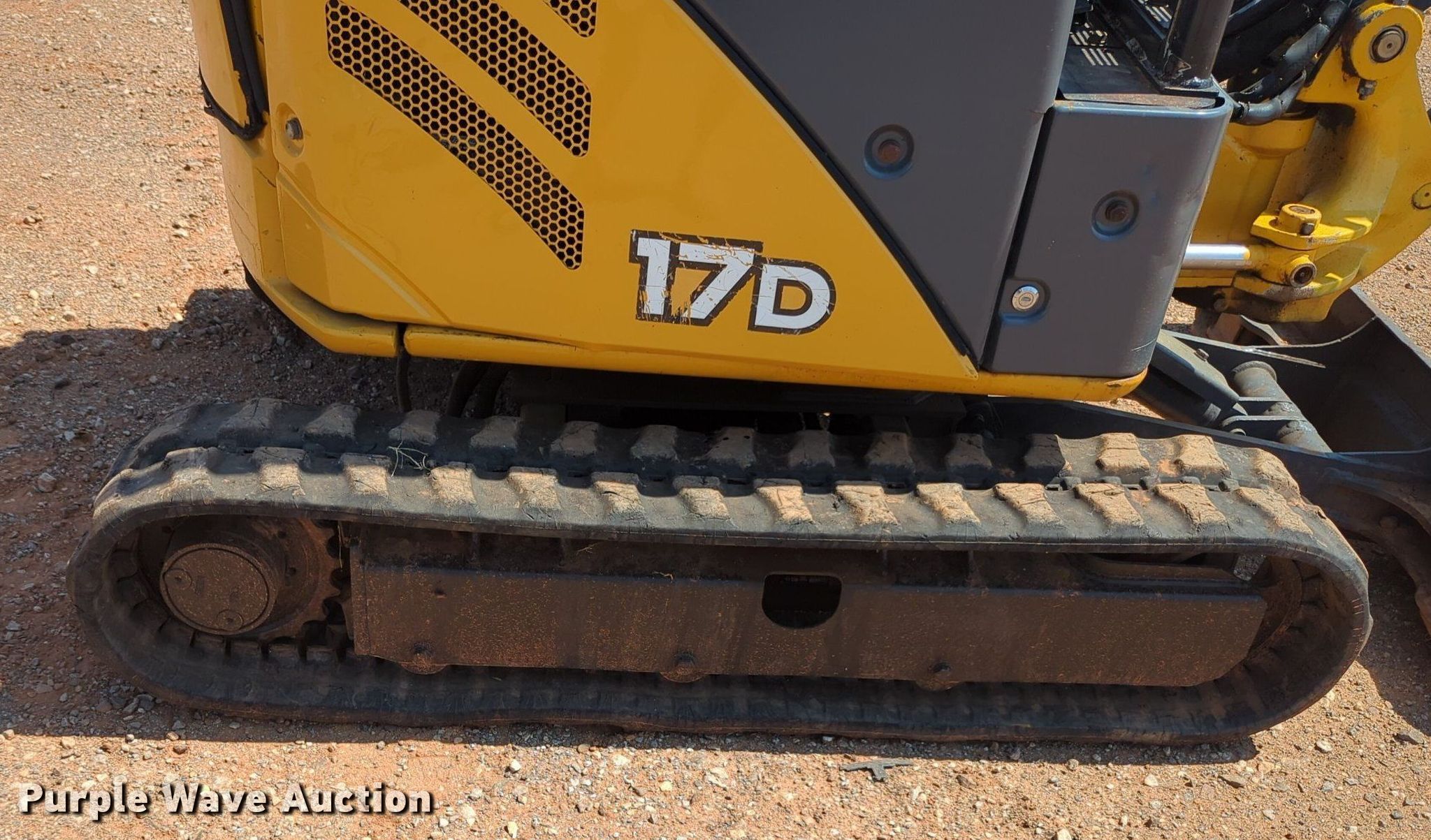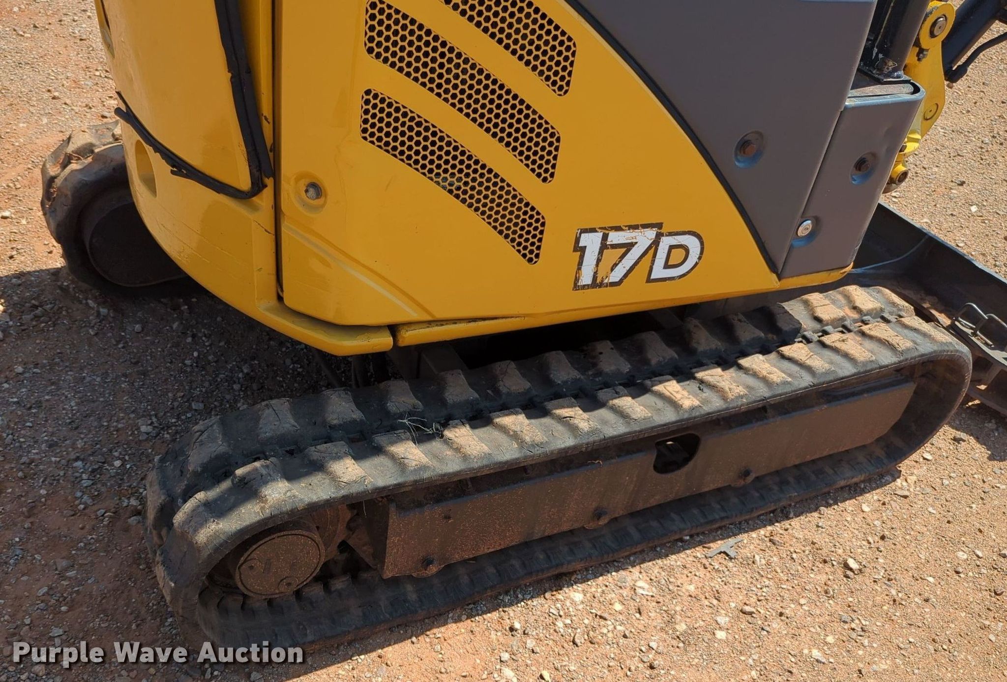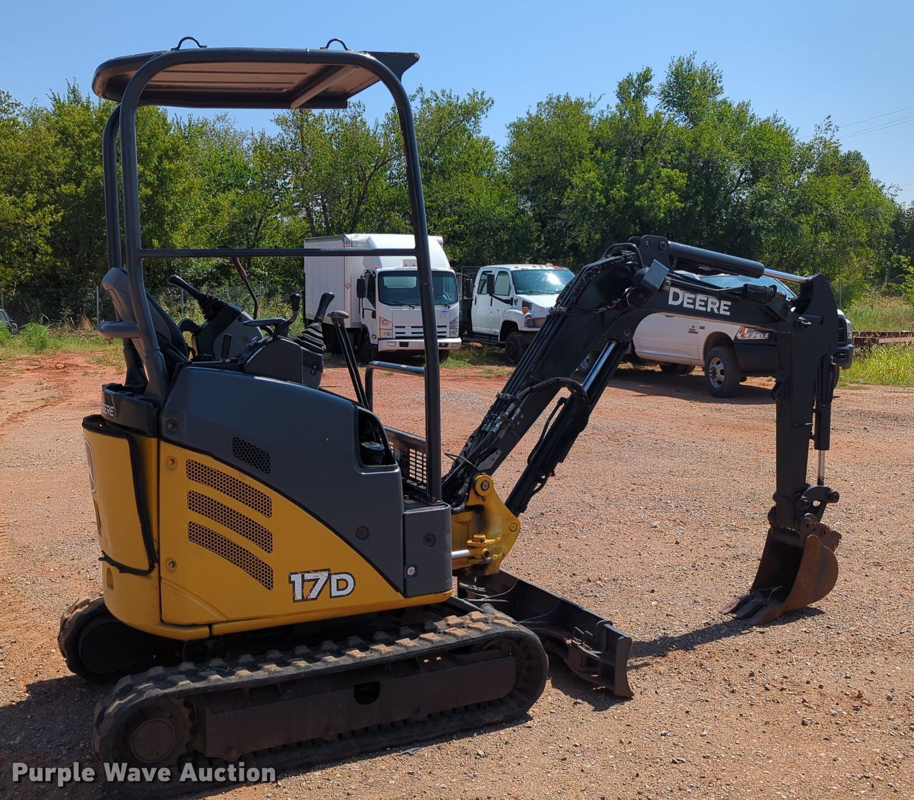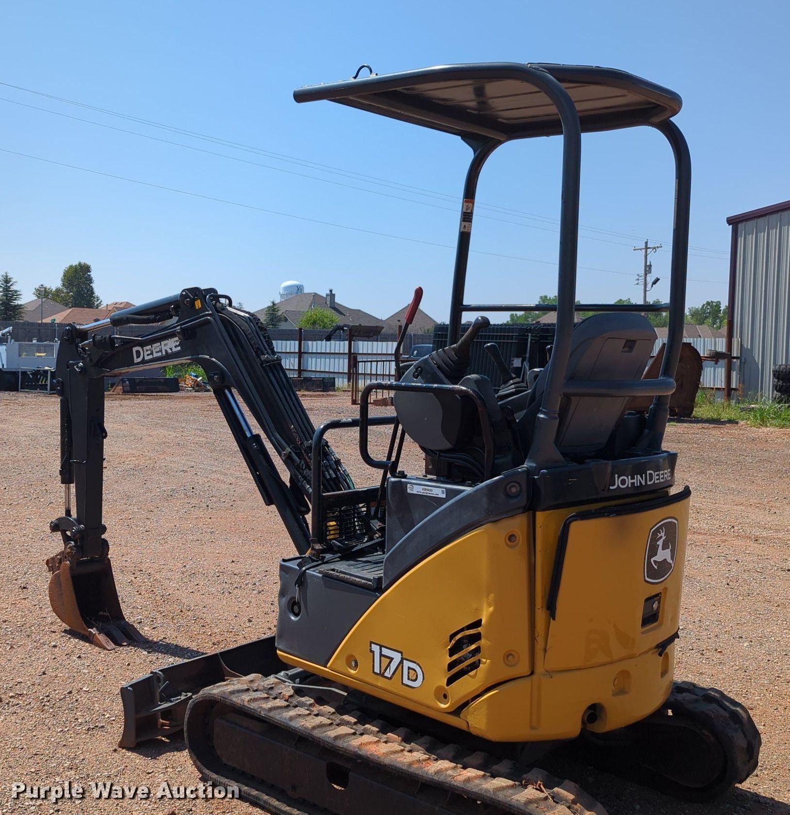 Purple Wave is selling a used Mini Excavator in Oklahoma. This item is a 2014 John Deere 17D mini excavator with the following: Hours: Unknown, Serial: 1FF017DXJDK222379