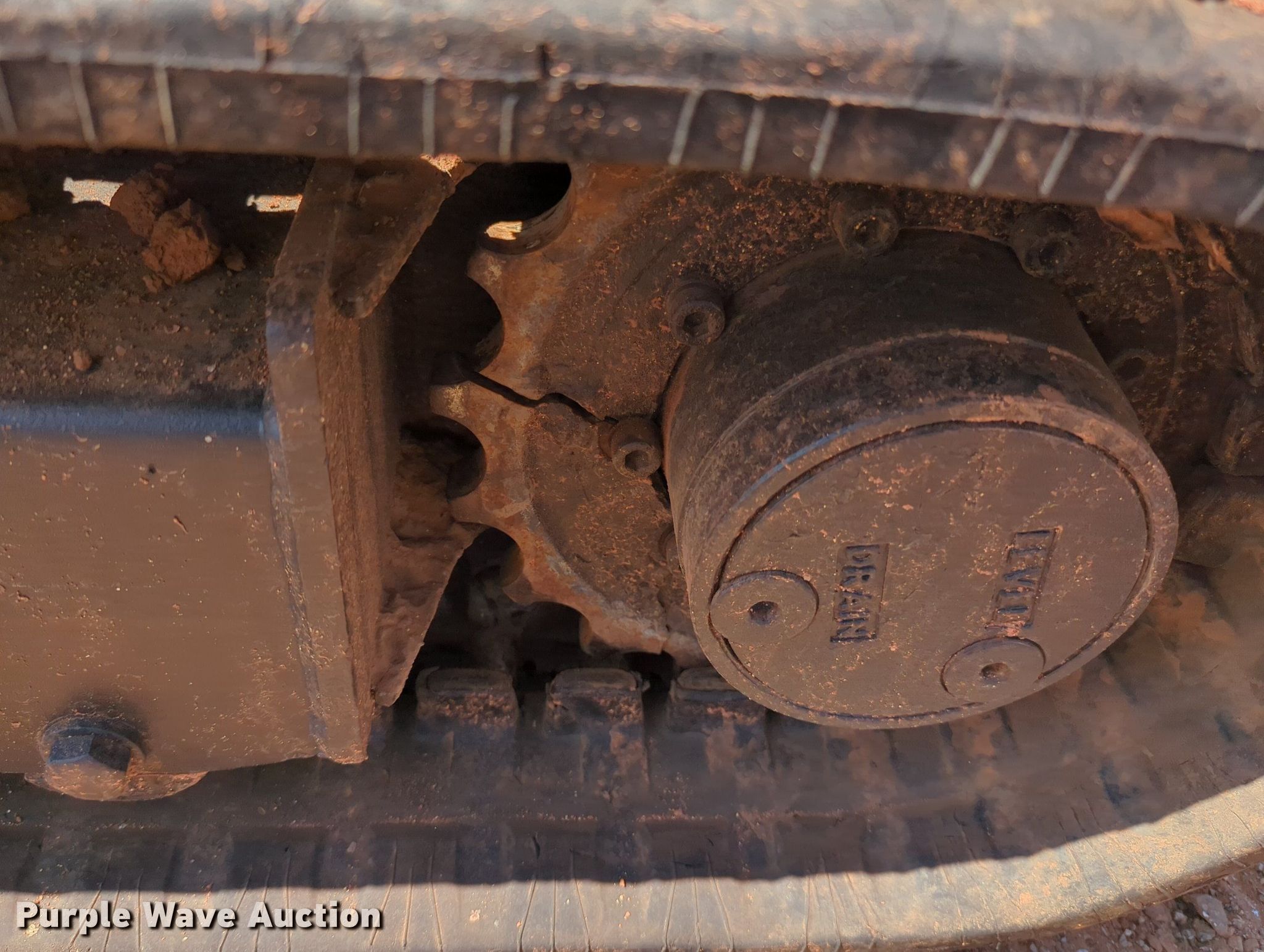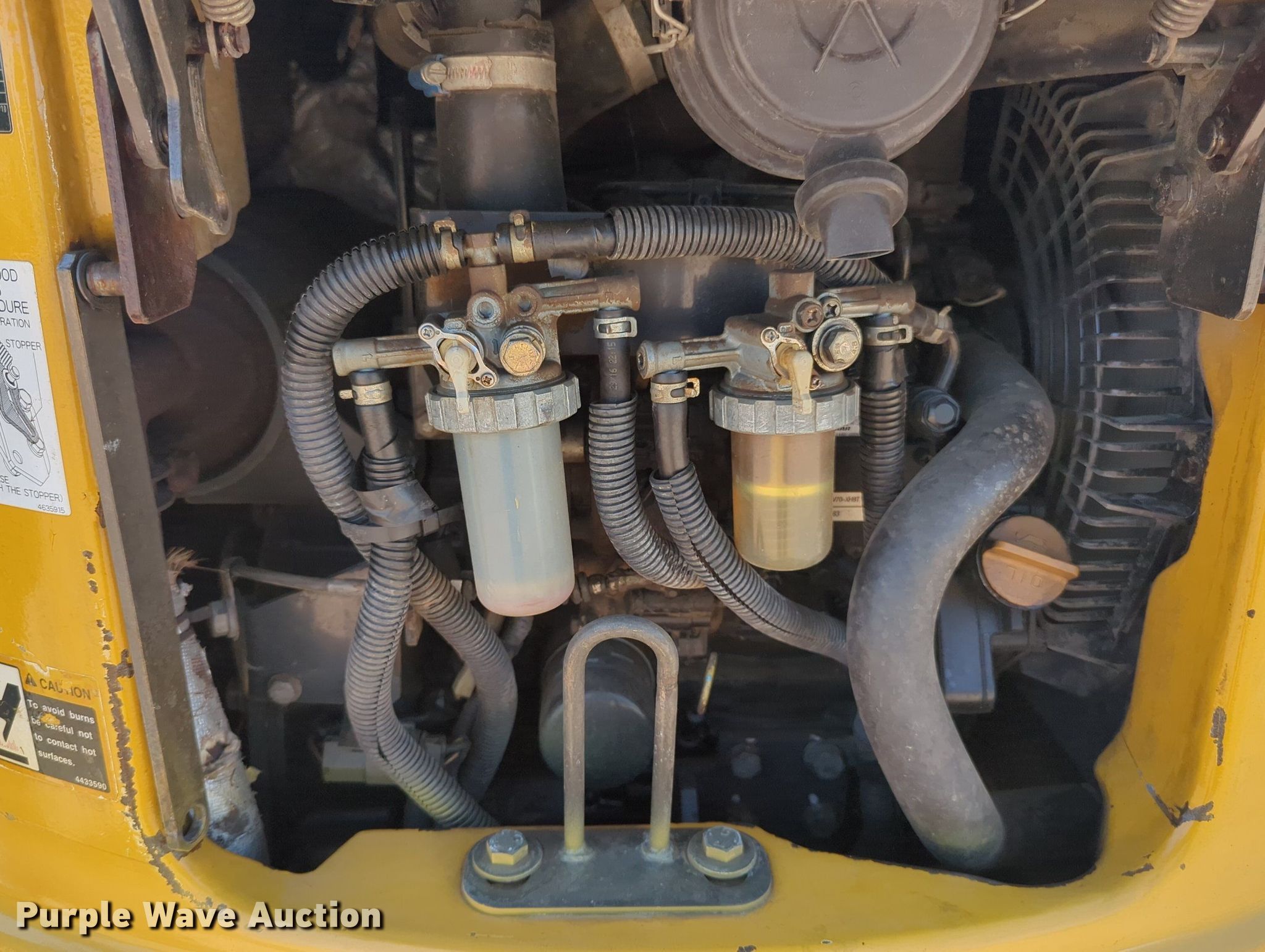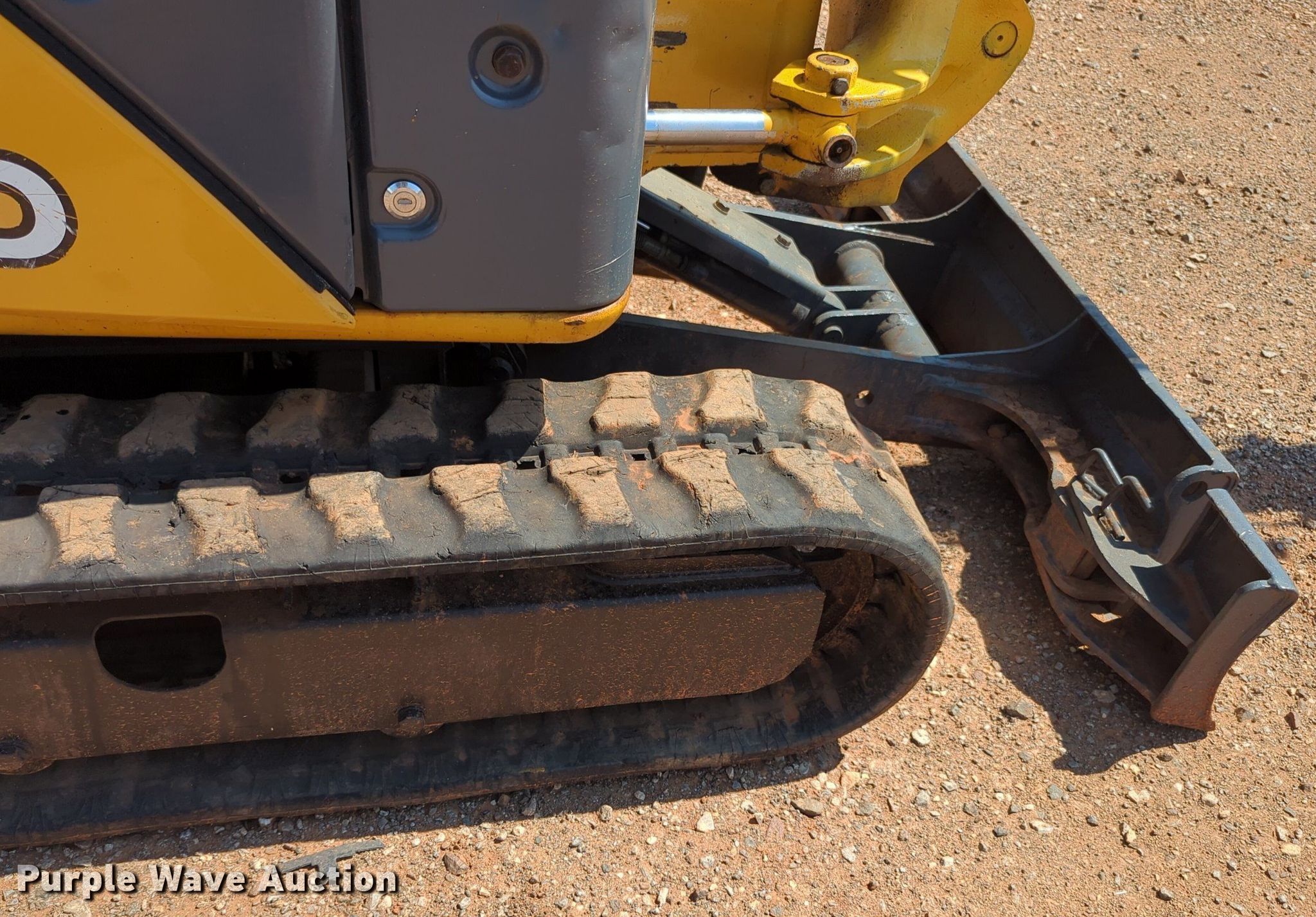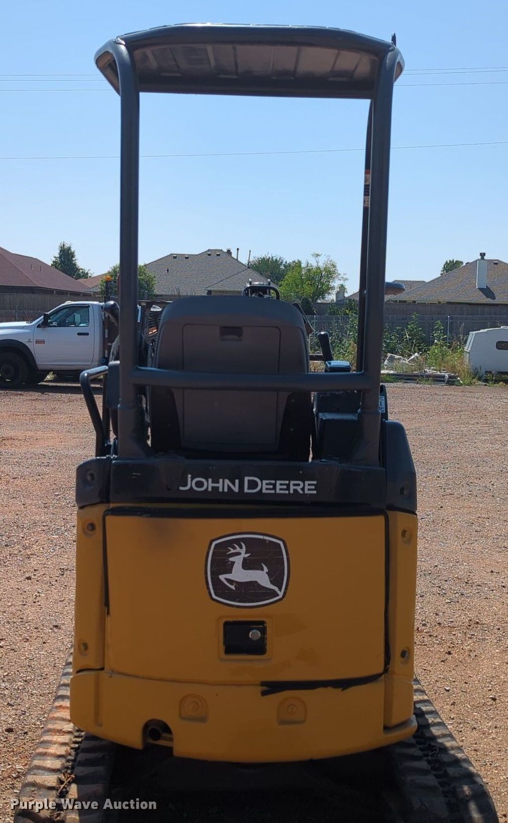 2014 John Deere 17D mini excavator. Hours: Unknown, Serial: 1FF017DXJDK222379. Engine YANMAR 3TNV70-XHB, Displacement: 0.854L, Cylinders: 3, Fuel type: Diesel. Transmission Hydrostatic. Features Auxiliary hydraulics, Backfill blade Width: 52", Boom Swing, Stick Stick length: 36", Bucket Width: 10", Teeth: 3. Tracks Width: 9", Rubber. Notes Non-operational hour meter, Possible swing bearing issues, unit will not swing to the right , Drive sprocket damaged. 1401 Lakeshore Dr. Yukon, OK 73099