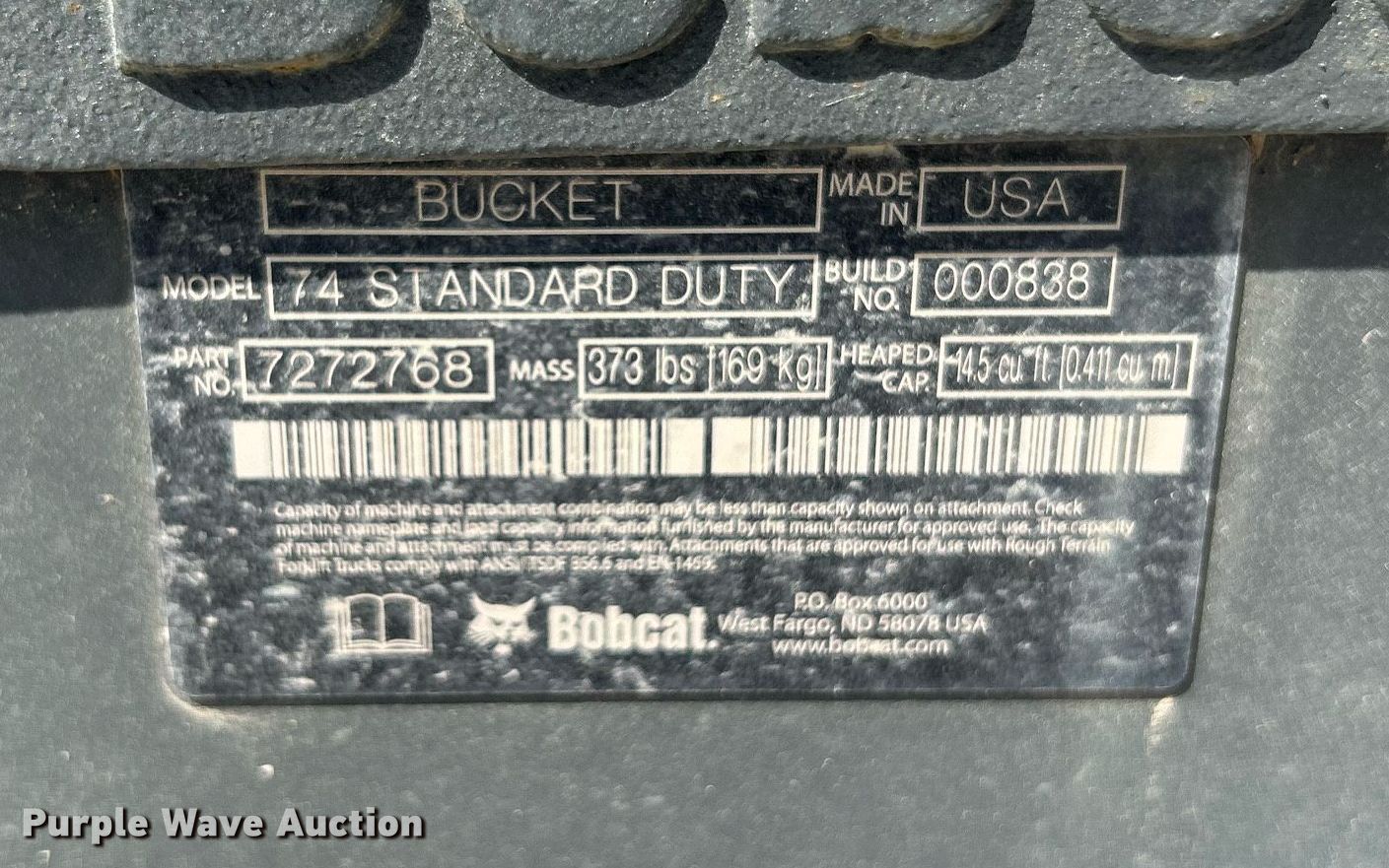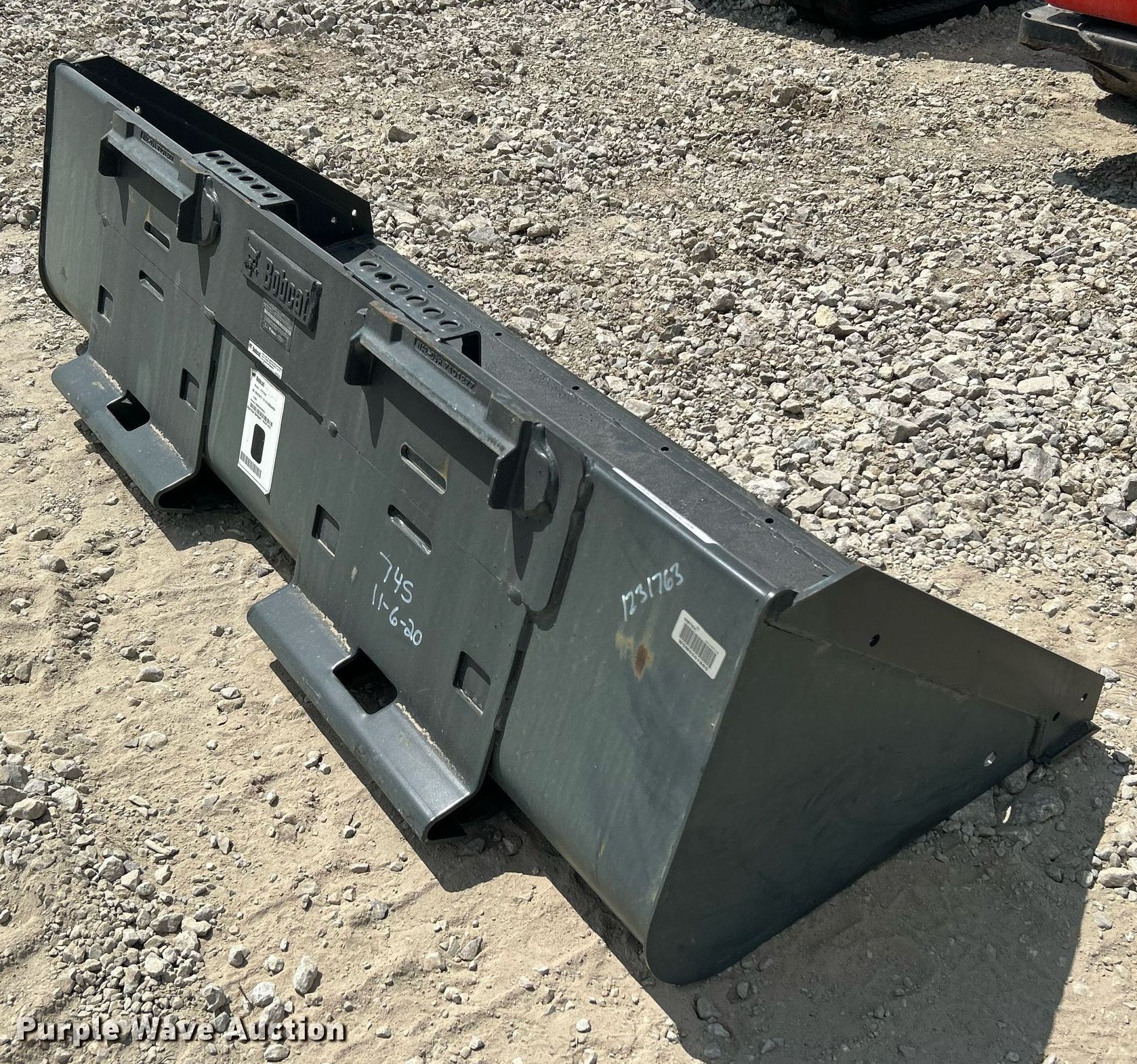 Purple Wave is selling a used Skid Steer Attach. in Oklahoma. This item is a Bobcat 74 Standard Duty skid steer bucket with the following: Width: 73"