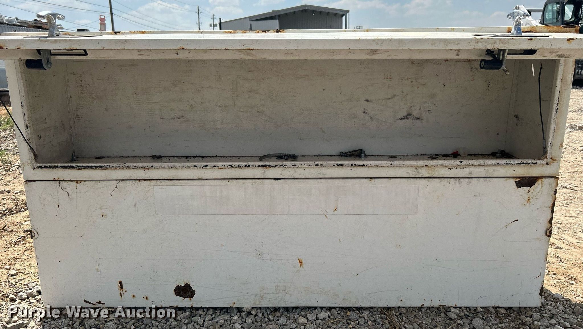 Purple Wave is selling a used Truck Part and Attach. in Oklahoma. This item is a Toolbox with the following: Dimensions: 60"L x 12"W x 33"H