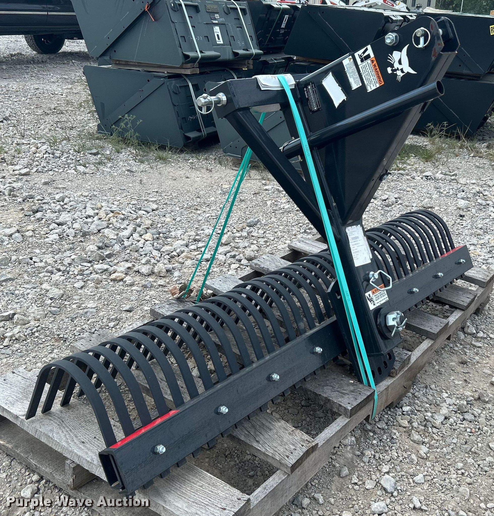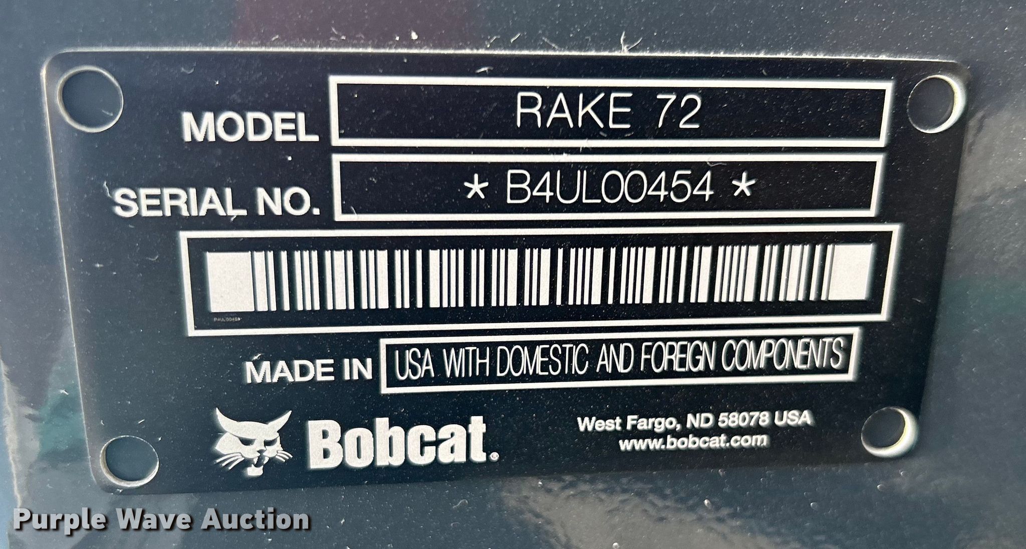 Purple Wave is selling a used Ag Equip. Other in Oklahoma. This item is a Bobcat Rake 72 landscape rake with the following: Serial: B4UL00454, Width: 71", Hitch: Three point