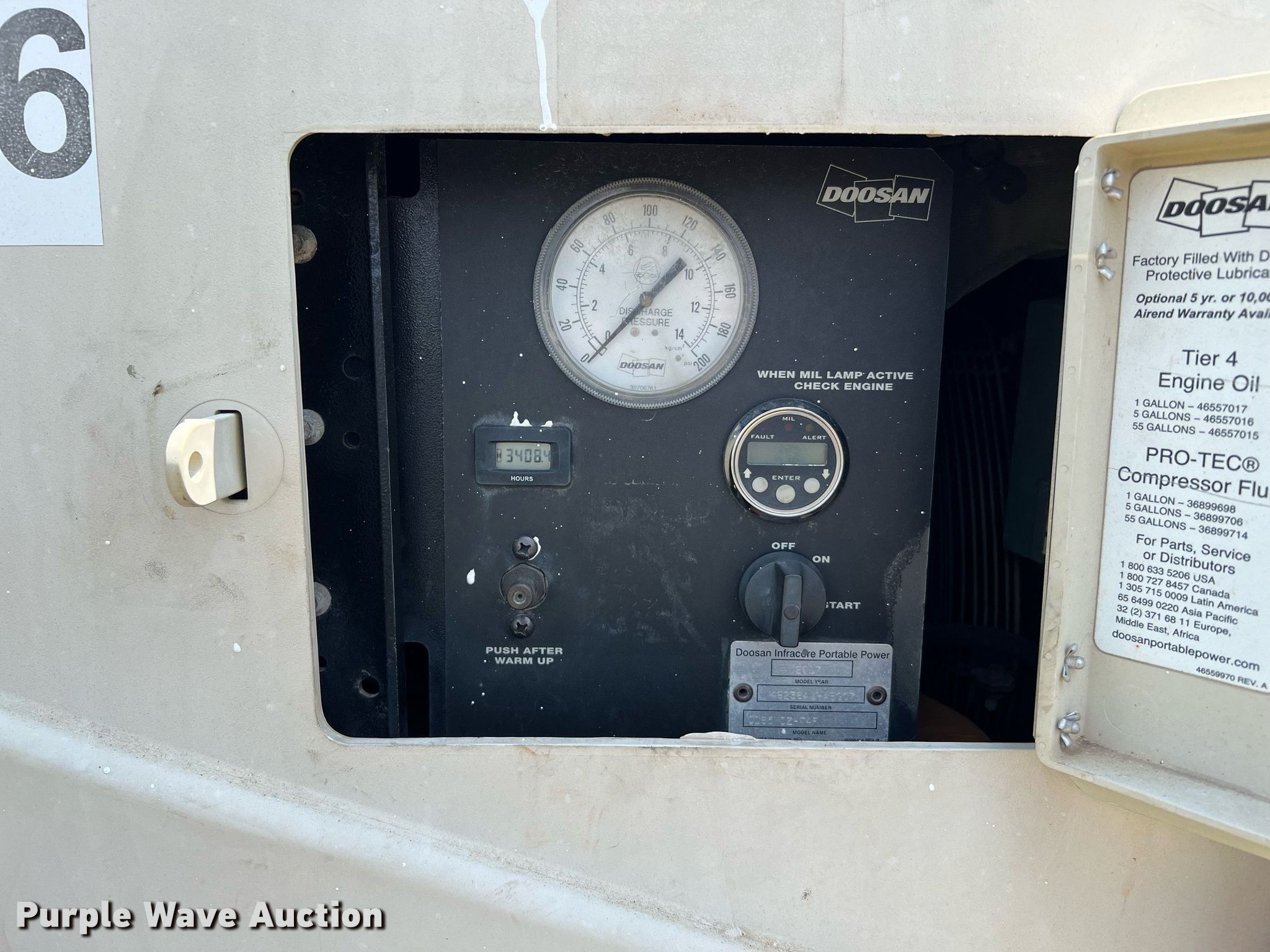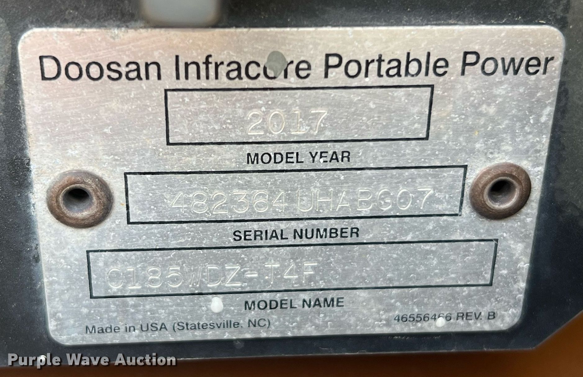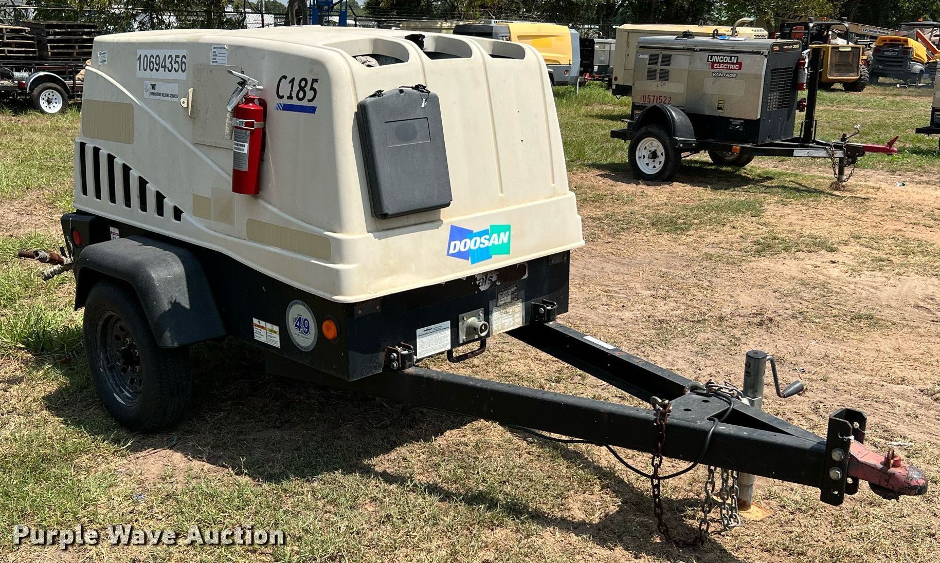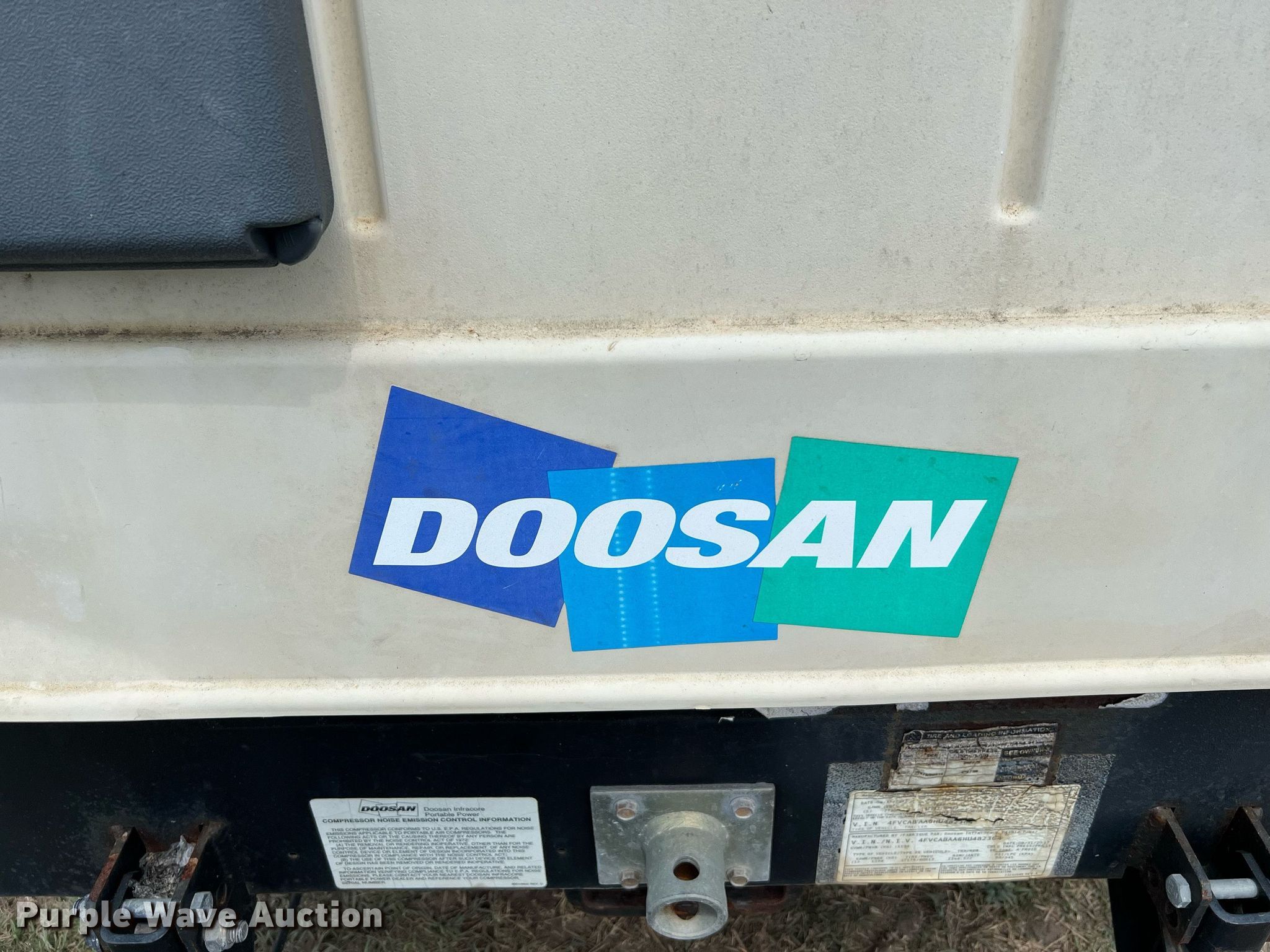 Purple Wave is selling a used Air Compressor in Texas. This item is a 2017 Doosan C185 air compressor with the following: Hours: 3,408 on meter, VIN: 4FVCABAA6HU482364, Serial: 482364UHABG07, Unit #: 10694356
