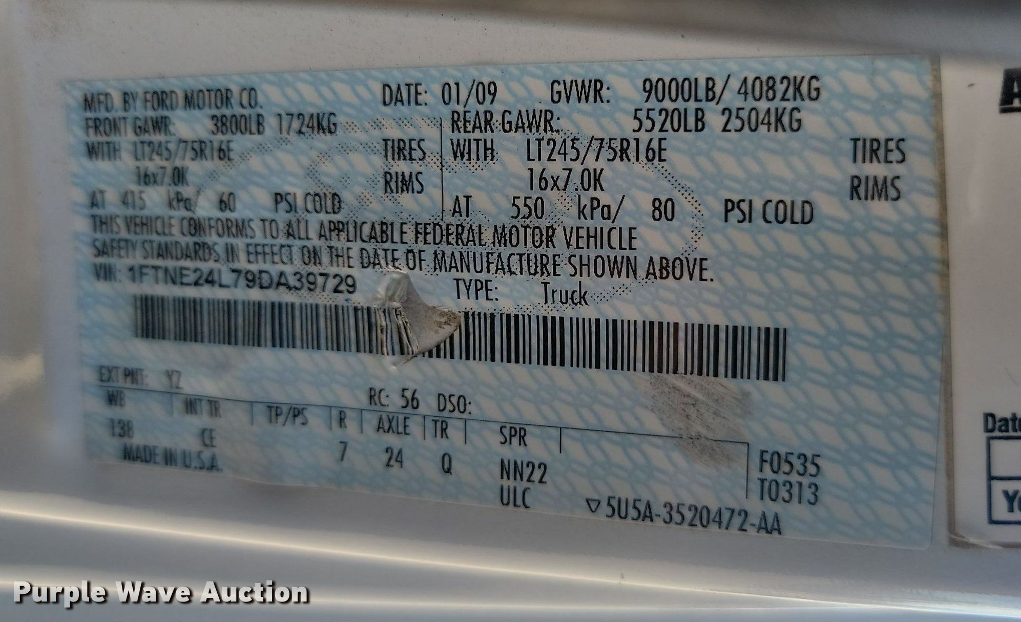 - VIN: 1FTNE24L79DA39729
