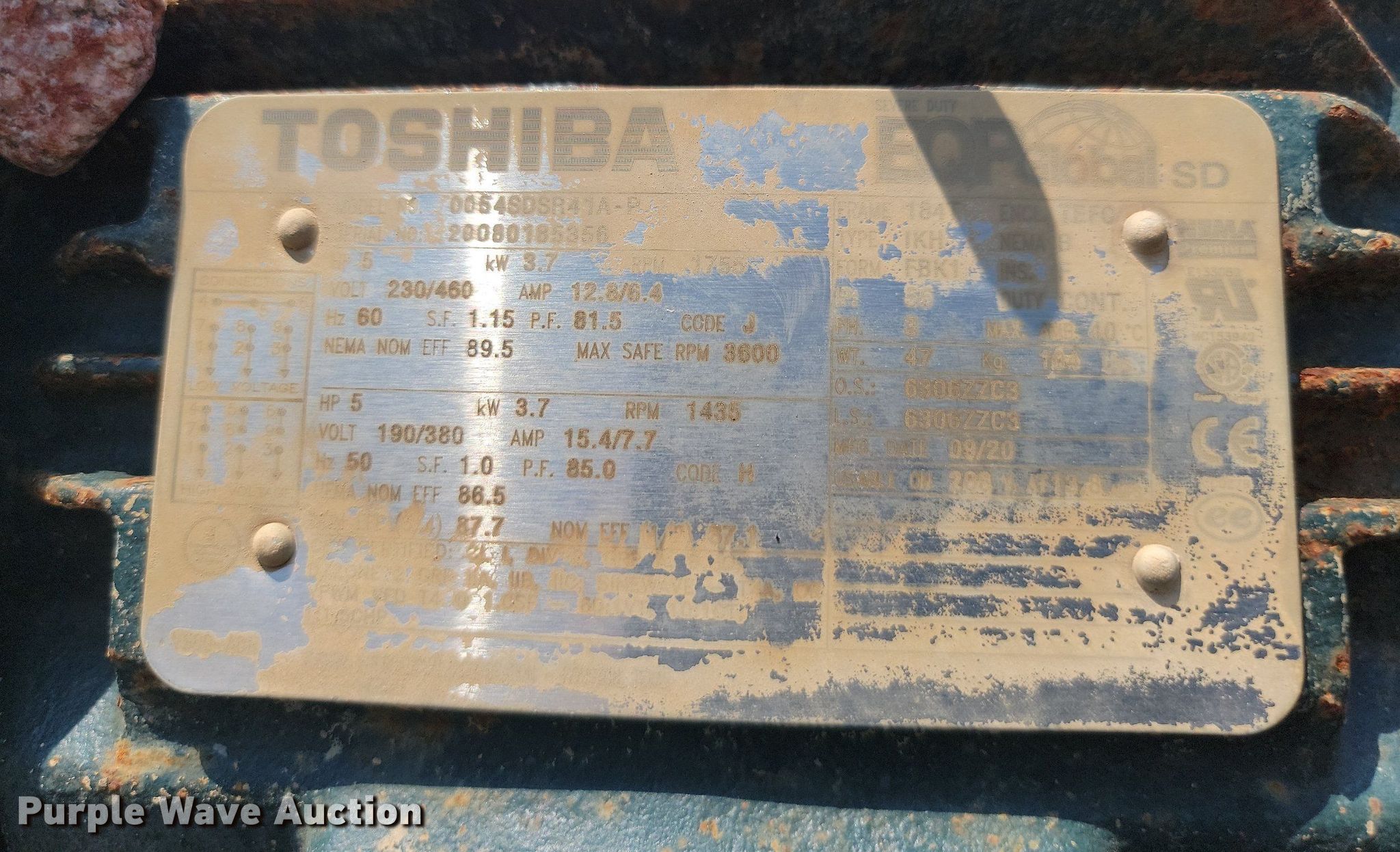 Kolman Athey screen. Electric Motor. Toshiba , HP: 5, kW: 3.7, Volts: 230/460, Phase: Three. Features Screen deck Length: 5', Width: 32", Decks: Single, Screen size Top: 0.25".. Northern Con-Agg, LLP. 1546 210th Street. Russell, MN 56169