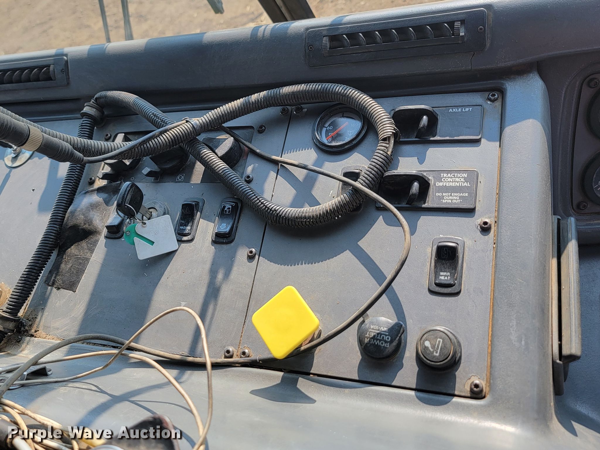 2004 Sterling Condor refuse truck. Miles: 36,093 on odometer, Hours: 3,253 on meter, VIN: 49HFBVDC94RM94932. Engine Caterpillar C7, Displacement: 7.2L, Cylinders: 6, Fuel type: Diesel. Transmission Automatic. Chassis Double frame, Axles: Tandem, Tag axle, Suspension: Spring, Brakes: Air, PTO, GVWR: 52,000 lbs. Interior Heat, Heated mirrors, Power windows. Features Refuse bed Bridgeport, Capacity: 20 cu.yd., Load: Side, Cart tipper. Tires Size: 315/80R22.5, Lift axle: 255/70R22.5. South Dakota prior salvage title. Title distribution may be delayed up to 30 days from verification of funds. Capital Area Refuse LLC. 311 N Waldron St. Ft. Pierre, SD 57532