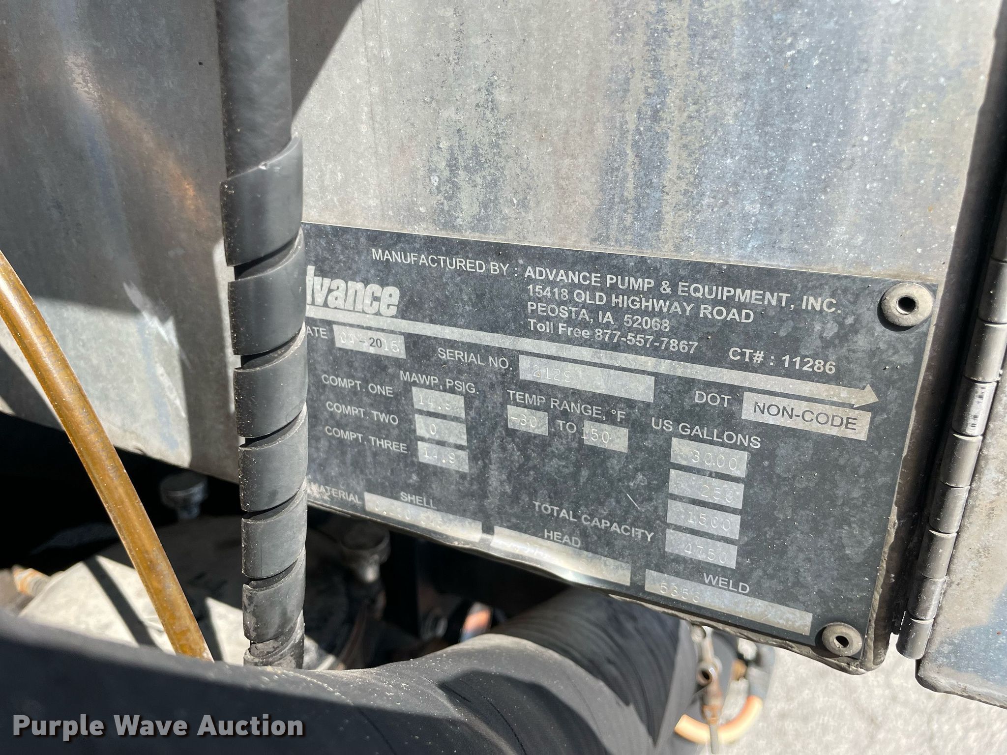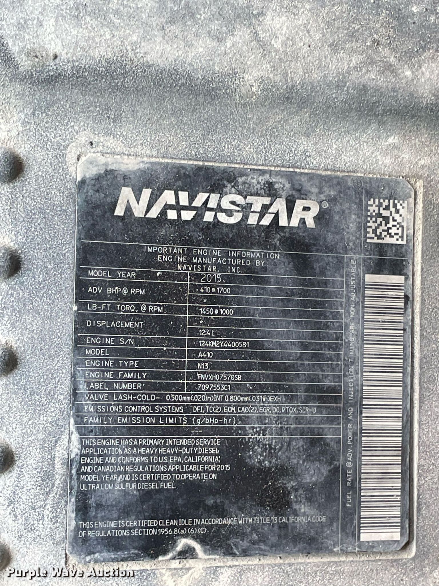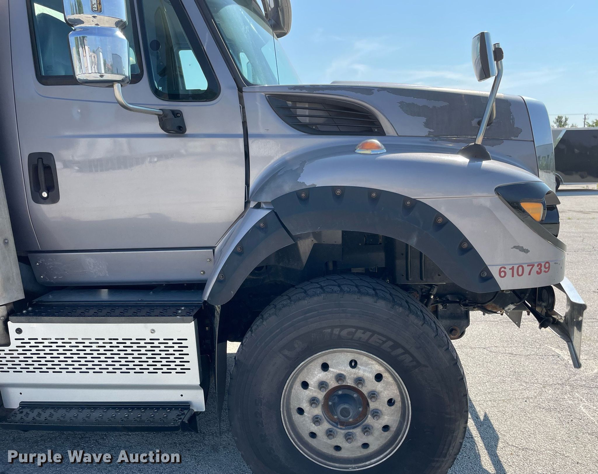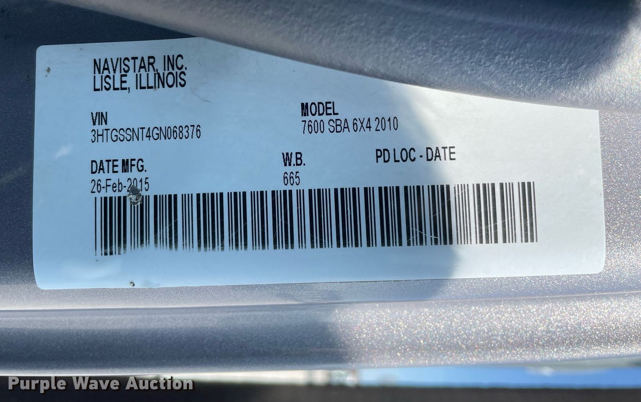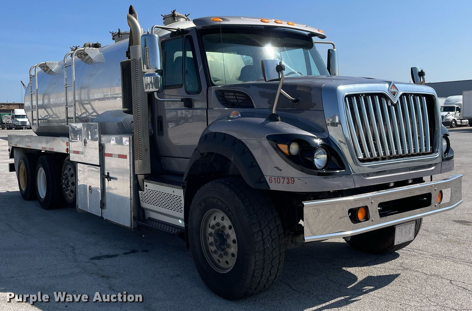 2016 International 7600 vacuum truck. Miles: 266,733 on odometer, Hours: 17,033 on meter, VIN: 3HTGSSNT4GN068376, Unit #: 610739. Engine International A410, Displacement: 12.4L, Cylinders: 6, Fuel type: Diesel. Transmission Automated manual. Chassis Axles: Triple, Pusher axle, Suspension: Air, Brakes: Air, PTO, GVWR: 60,000 lbs. Interior AC, Heat, Heated mirrors, Power windows, Cruise control. Features Tank bed 2015 Advance Pump and Equipment, Serial: 2129, Capacity: 4,750 gallons, Top hatches: 3, Rear outlet: 3", Water pump General Pump TS2021, PSI: 3500, GPM: 5, Vacuum pump Challenger 607P-FD. Tires Front: 425/65R22.5, Rear: 11R22.5, Lift axle: 225/70R22.5. Ohio title. Aim Transportation Solutions. 16055 Van Drunen Road. South Holland, IL 60473