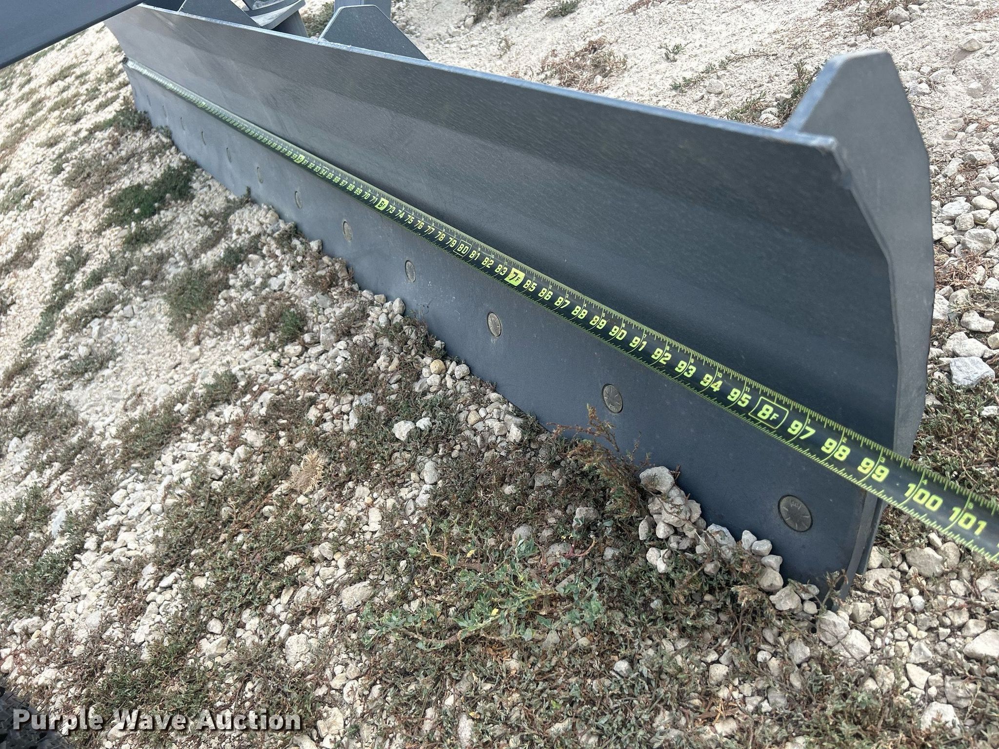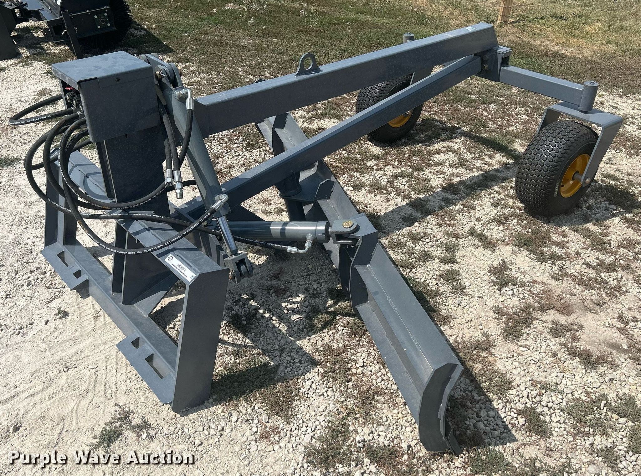skid steer grader. Width: 98", Cutting edge: Bolt-on, Hydraulic lift, Tires size: 18x8.50-8. Notes Unused. Springville, IA 52336