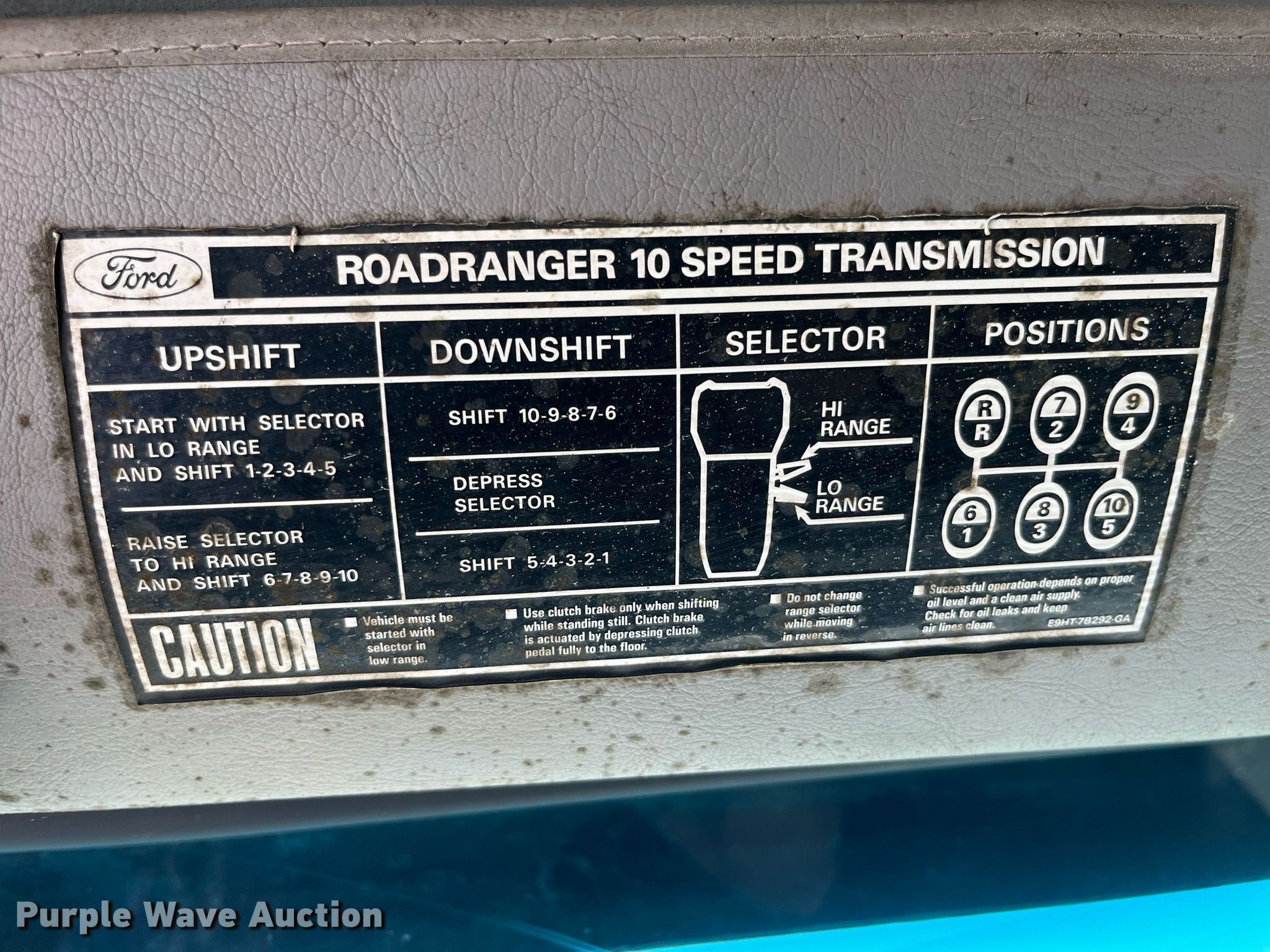 1998 Ford LT9513 vacuum truck. Miles: 220,376 on odometer, VIN: 1FDZS96W2WVA11672. Engine Caterpillar 3406, Serial: 6TS13832, Displacement: 14.6L, Cylinders: 6, Fuel type: Diesel. Transmission Eaton Fuller Roadranger, Manual, Speed: 10. Chassis Axles: Tandem, Suspension: Spring over walking beam, Brakes: Air, GVWR: 62,000 lbs, Wheelbase: 264". Interior AC, Heat, Cruise control. Features Tank bed Serial: 98481285, Rear outlet: 6", Vacuum pump Roots, Serial: LR98-1165. Tires Front: 425/65R22.5, Rear: 11R22.5. Notes Unknown operating condition of inter-axle differential lock, Non-operational AC, Heat. Iowa title. Seller is an Iowa licensed motor vehicle dealer. The buyer may be required to pay sales tax and/or registration fees to the dealer prior to taking possession. Buyers may be required to provide identification to the licensed dealer to comply with Iowa state laws. Title will be assigned and distributed by the dealer. Please contact the seller for distribution questions. Keokuk Auto Credit. 4083 Main St. Keokuk, IA 52632