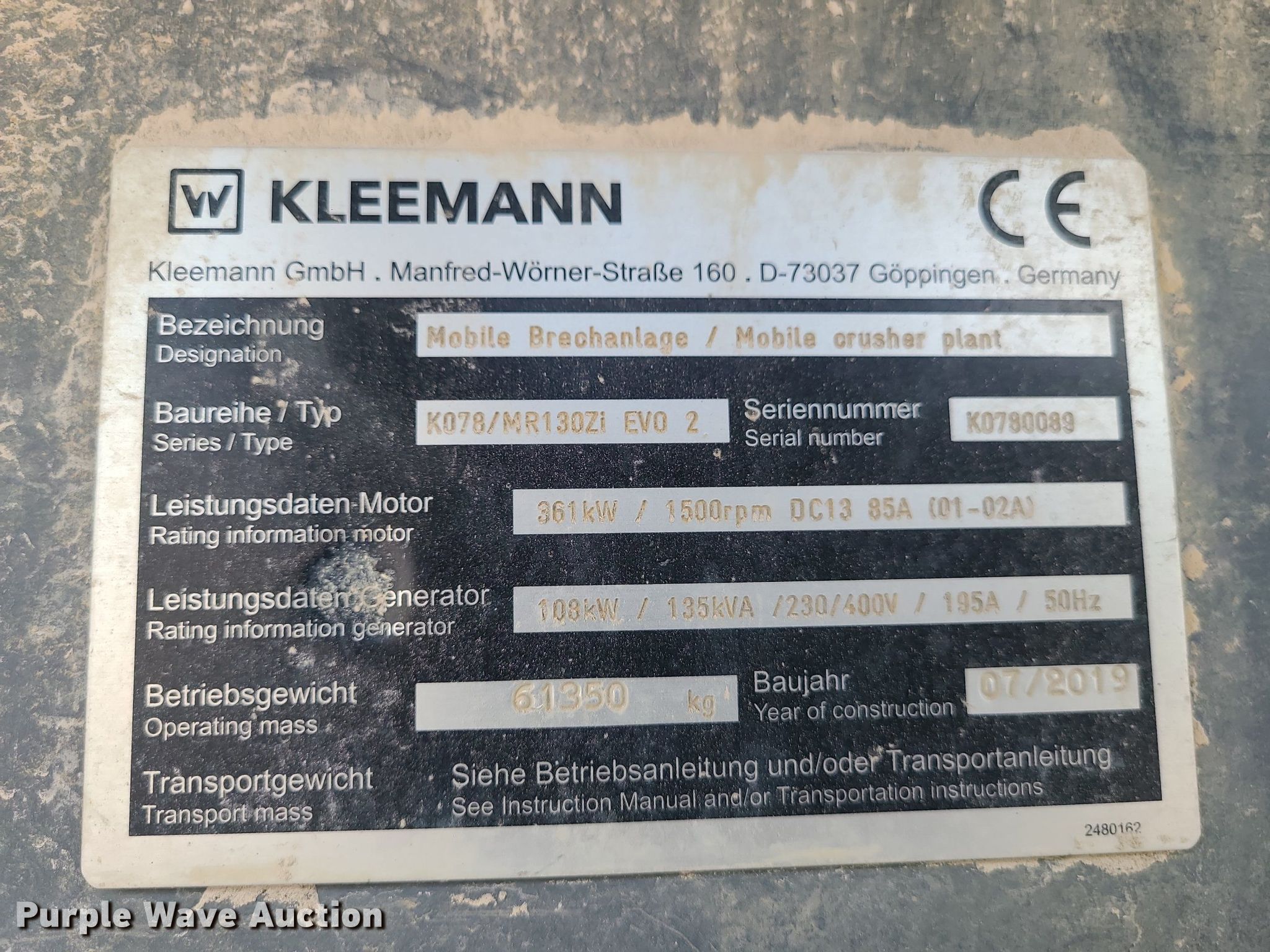 2019 Kleemann Mobirex MR130 Zi EVO2 impact crusher has sold in Kansas City, Missouri for $508200. Item MJ9293 sold on September 28th, 2023.