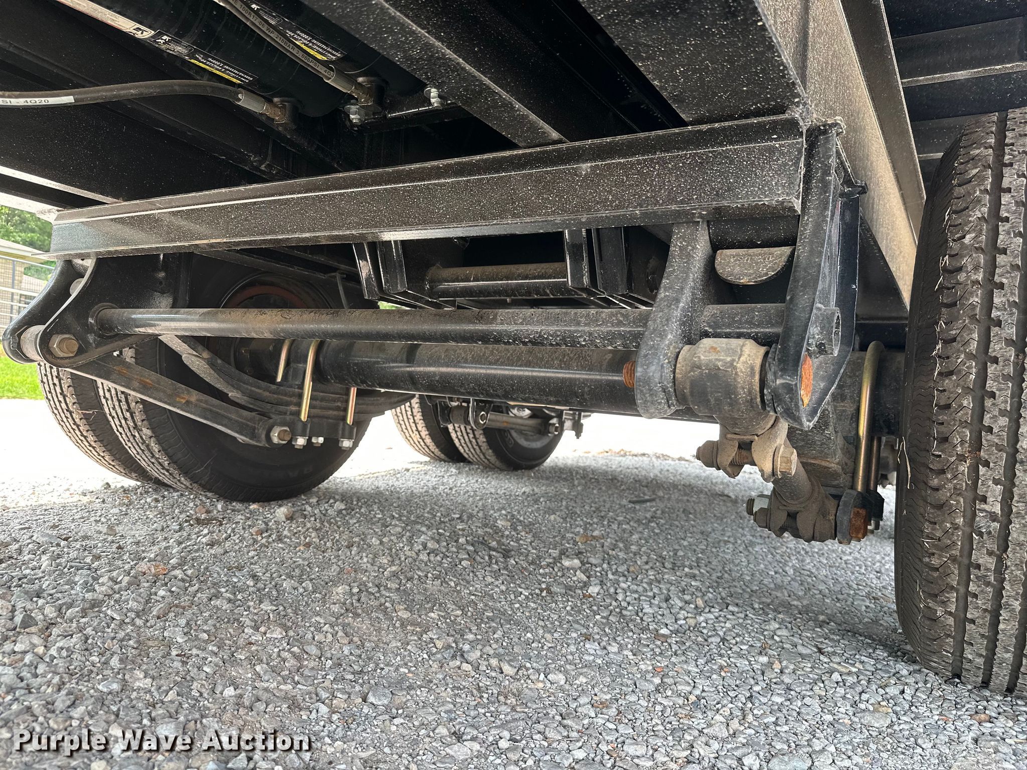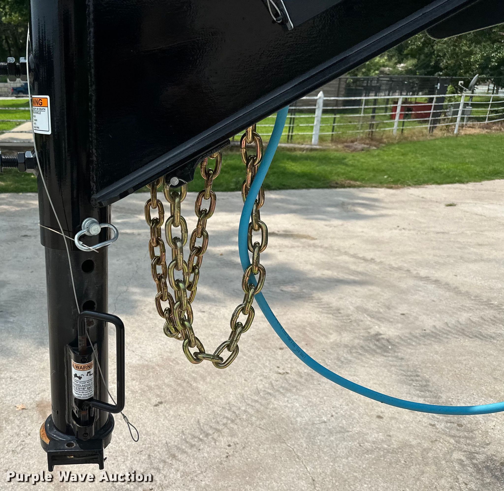 2022 PJ Trailers DD202 dump trailer. VIN: 4P53D302XN1384574. Dimensions Overall: 29' x 8' W x 6" W, Body: 20', Side height: 4' 4". Features Body type: Steel, Ram: Dual, End gate: Manual, Trailer controls. Chassis Hitch: Gooseneck, Landing gear: Dual, Suspension: Spring, Brakes: Electric, Axles: Tandem, GVWR: 25,000 lbs, GAWR: 10,000 lbs. Tires Size: ST235/80R16. Missouri title. Seller is a Missouri licensed motor vehicle dealer. Title will be assigned and distributed by the dealer. Please contact the seller for distribution questions. Title distribution may be delayed up to 14 days from verification of funds. 2103 A State Hwy K. Seneca, MO 64865