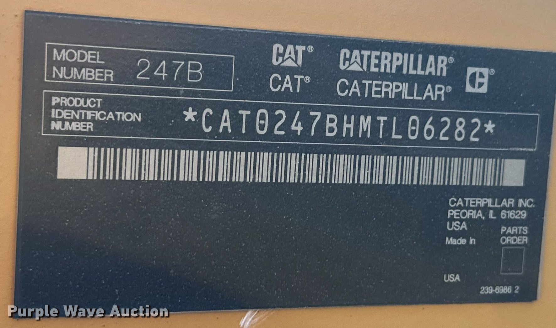 Purple Wave is selling a used Tracked Skid Steer Loader in Kansas. This item is a 2008 Caterpillar 247B2 tracked skid steer loader with the following: Hours: 912 on meter, Actual hours unknown, Serial: CAT0247BHMTL06282