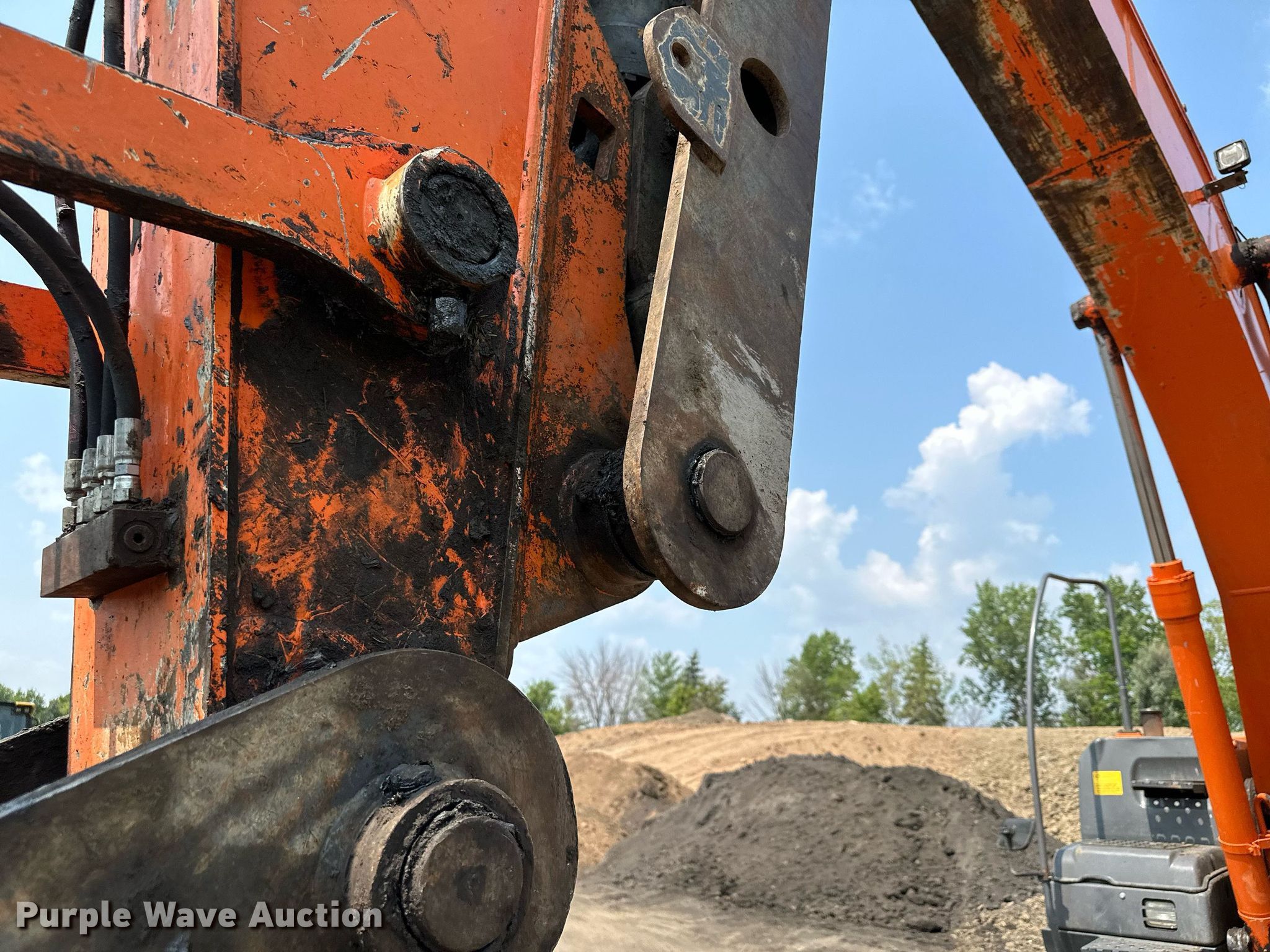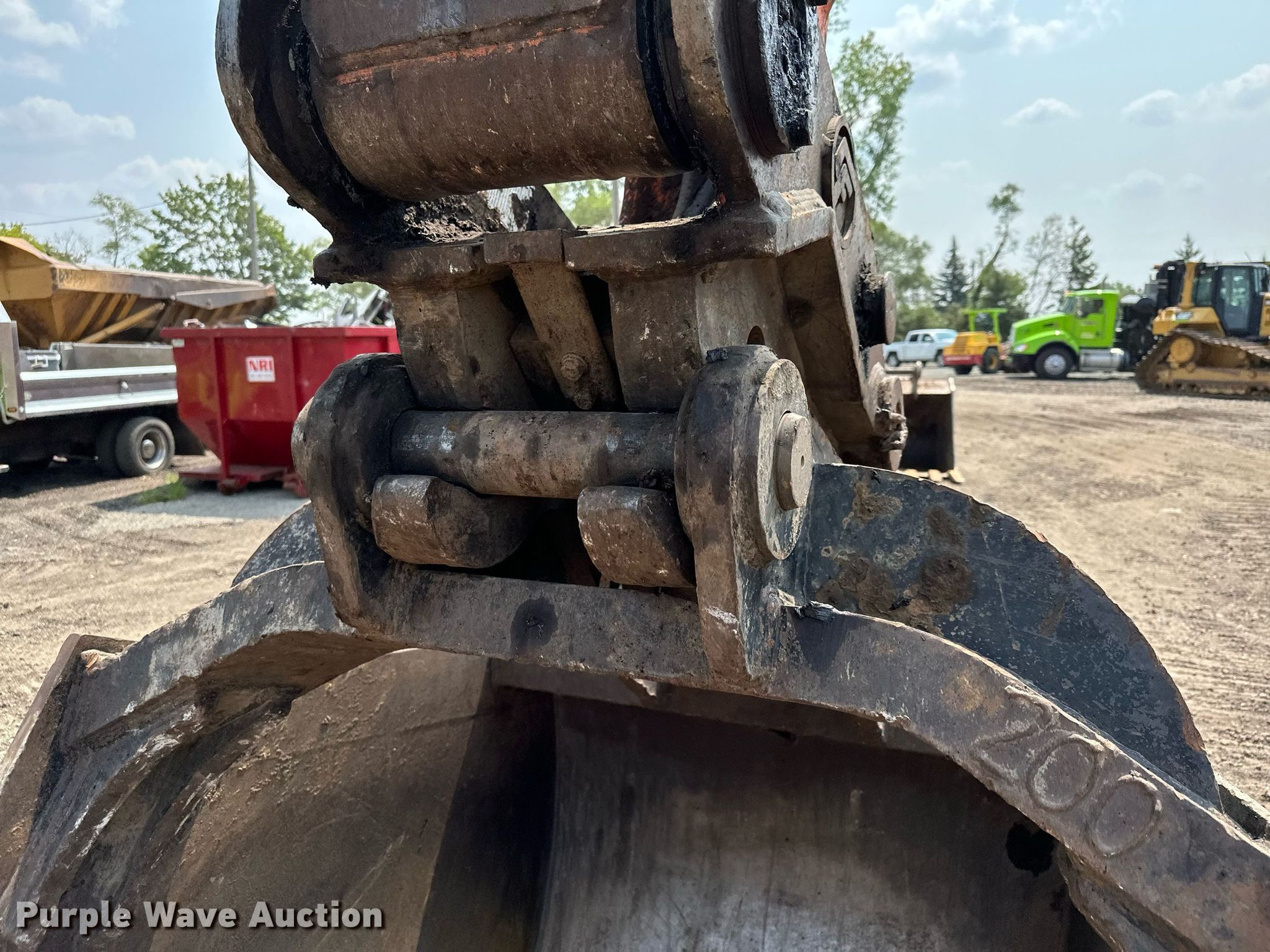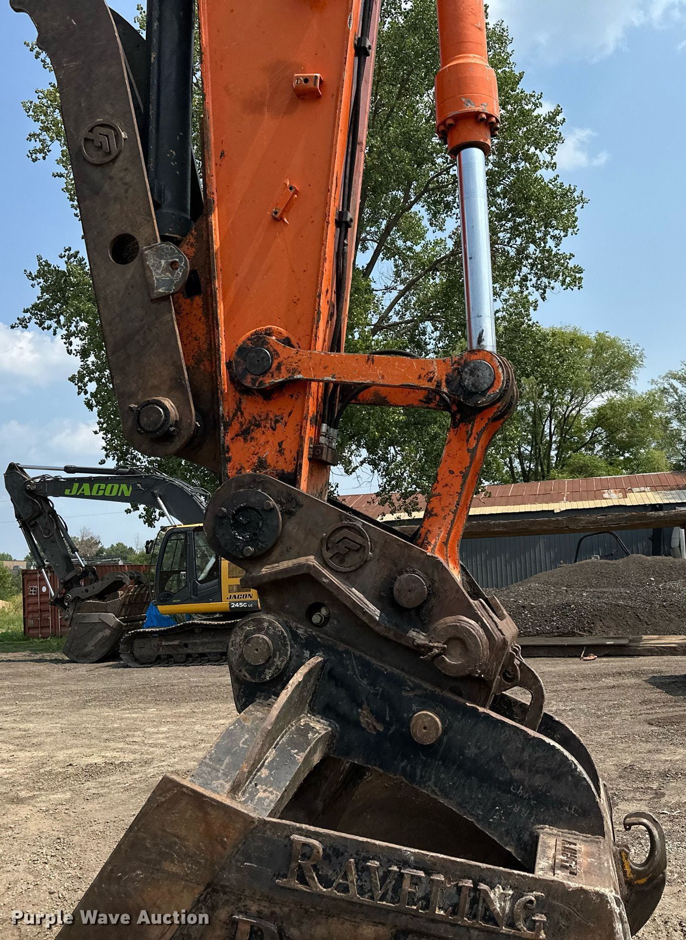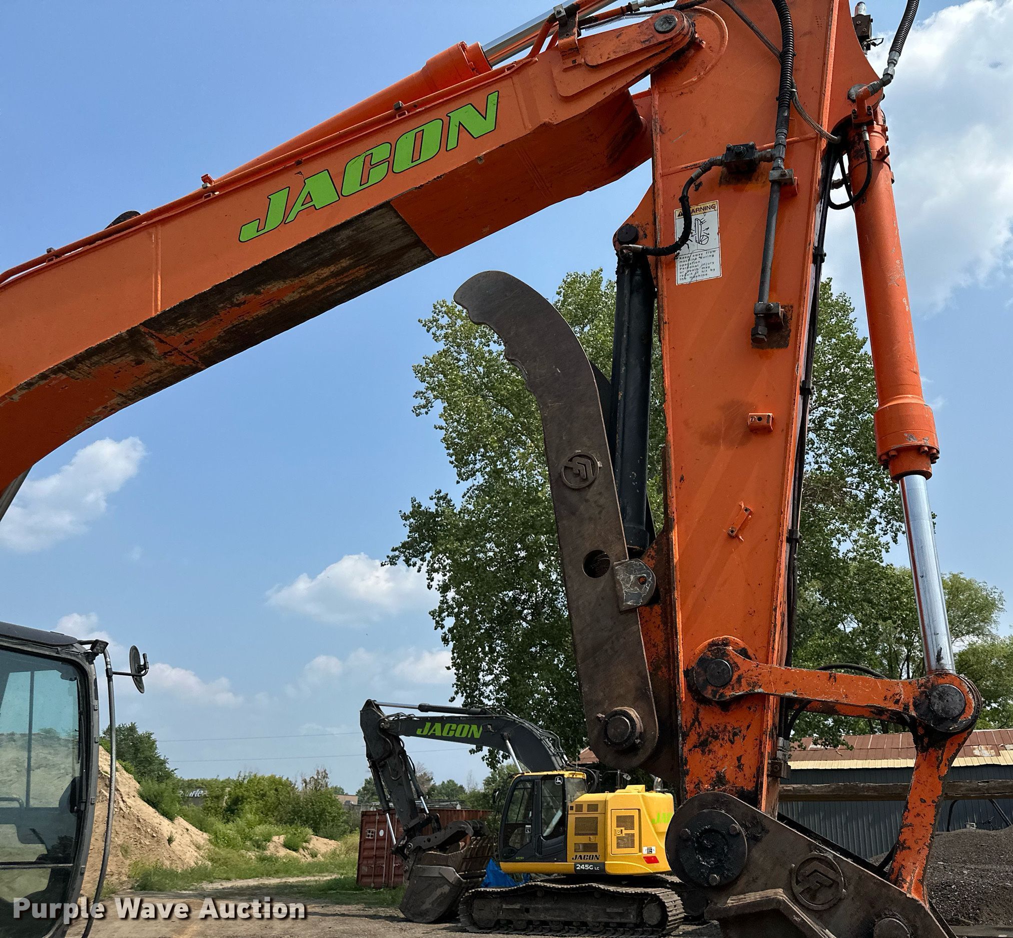 2012 Hitachi ZX200LC-3 excavator. Hours: 7,337 on meter, Serial: 1FFAST0XLCD321079. Engine Isuzu, Cylinders: 6, Fuel type: Diesel. Transmission Hydrostatic, Two speed travel. Operators station Enclosed cab, AC, Heat. Features Auxiliary hydraulics, Boom Standard, Stick Stick length: 9' 7", Thumb: Hydraulic, Weld-on Cf, Bucket Raveling, Width: 48", Cutting edge: Weld-on. Tracks Width: 31.5", Grouser pads: Triple. JACON LLC.. 1101 South Birch Lake Boulevard. White Bear Lake, MN 55127