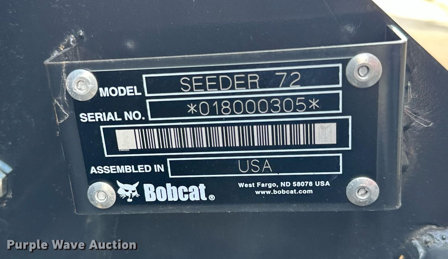 Purple Wave is selling a used Skid Steer Attach. in North Dakota. This item is a Bobcat Seeder 72 skid steer seeder with the following: Serial: 018000305, Width: 72"