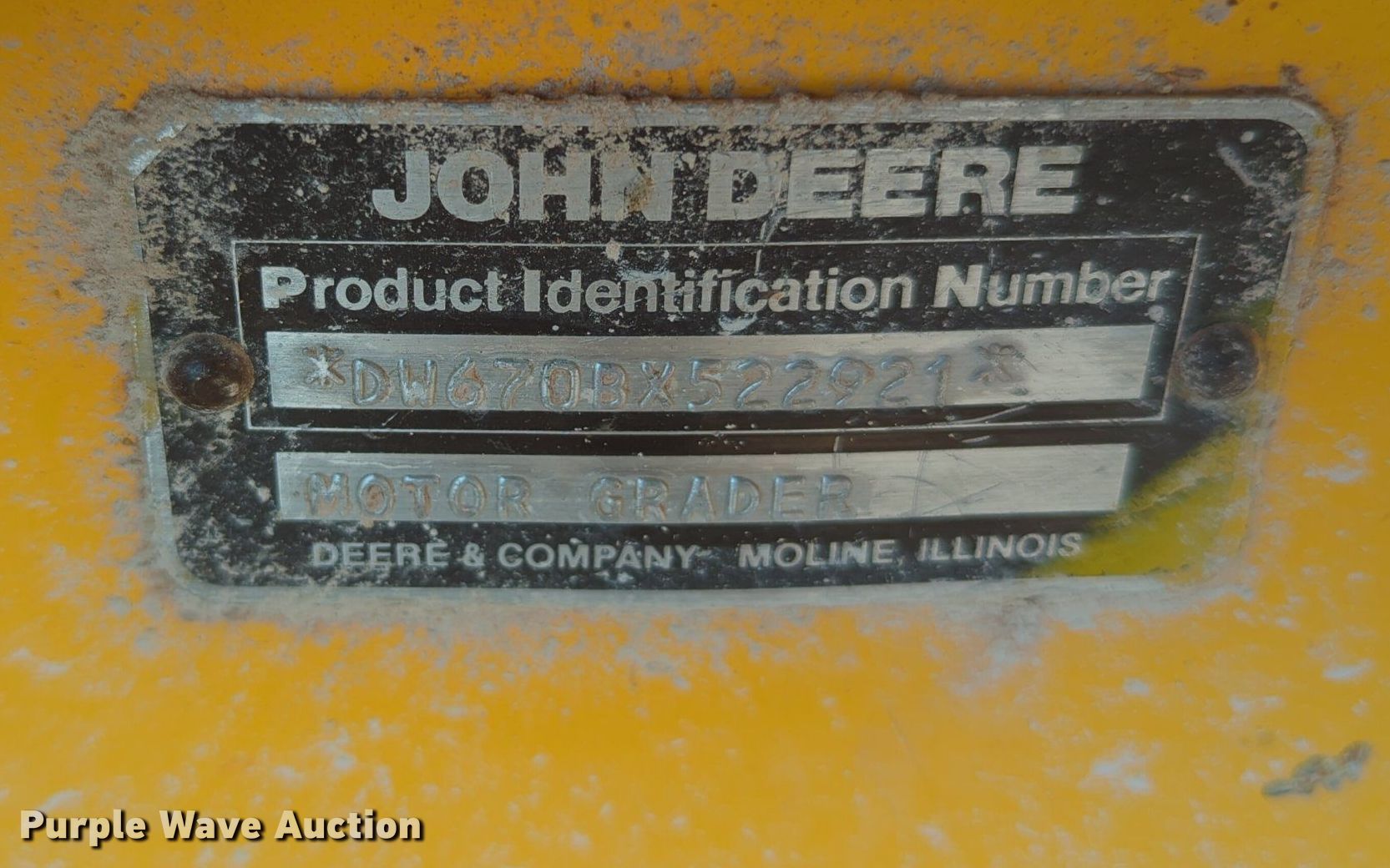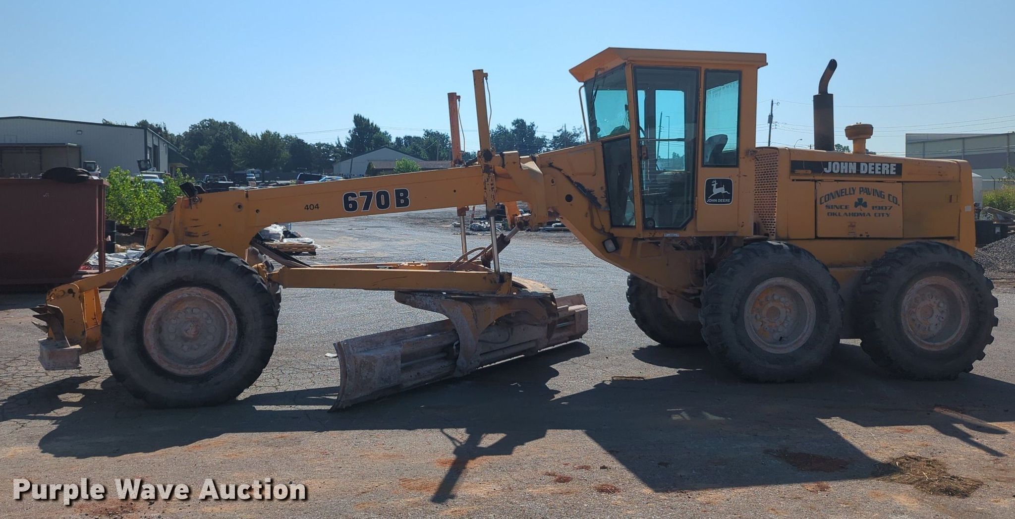 Purple Wave is selling a used Motor Grader in Oklahoma. This item is a 1989 John Deere 670B motor grader with the following: Hours: 19,427 on meter, Serial: DW670BX522921