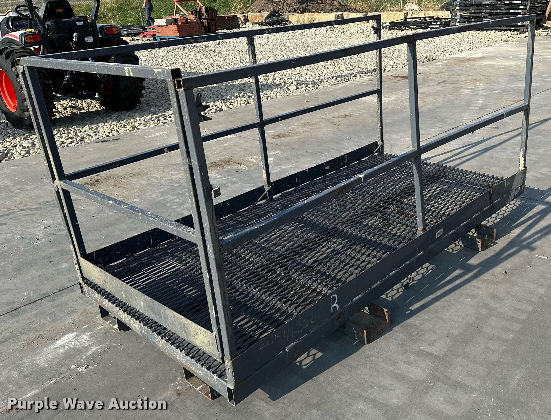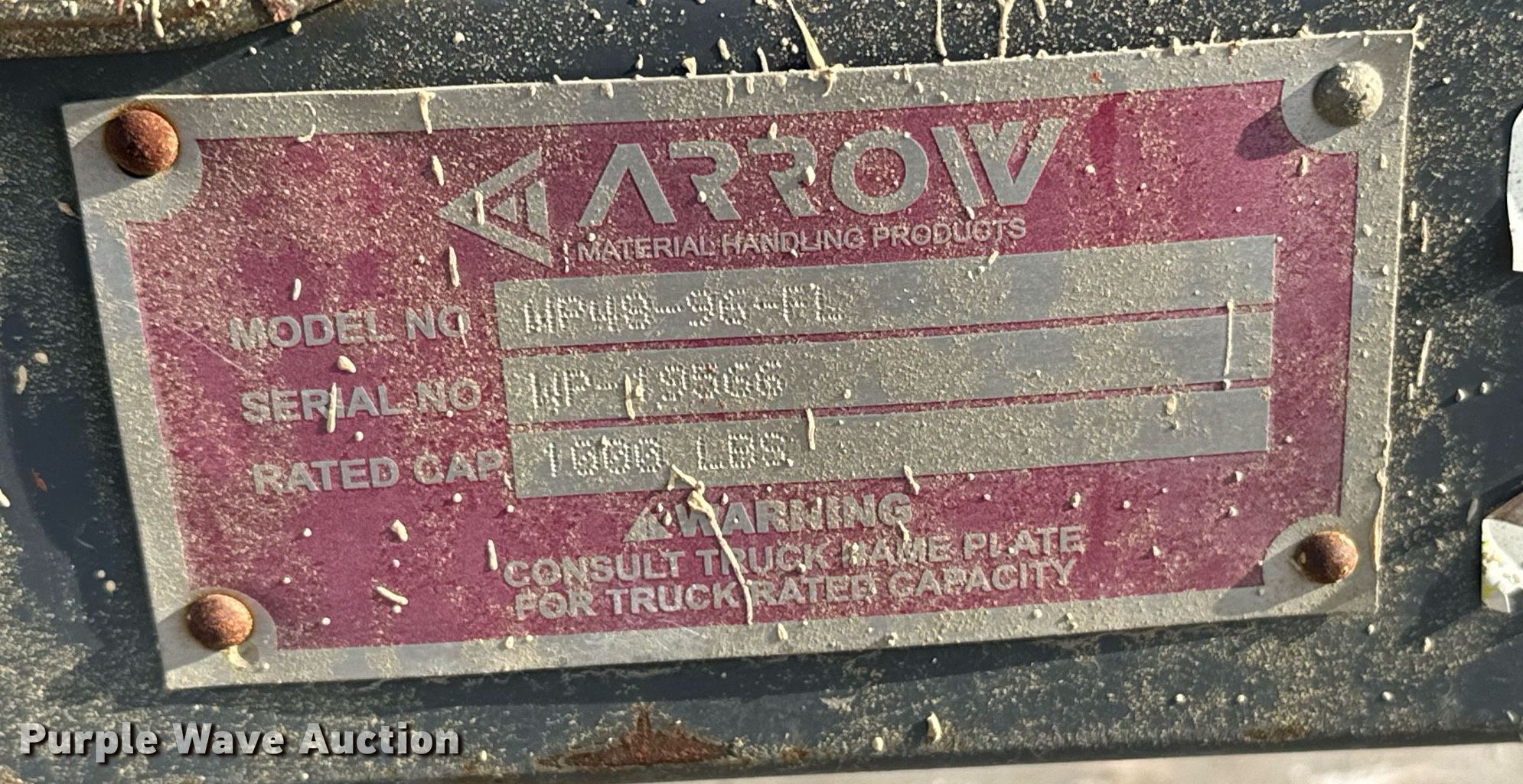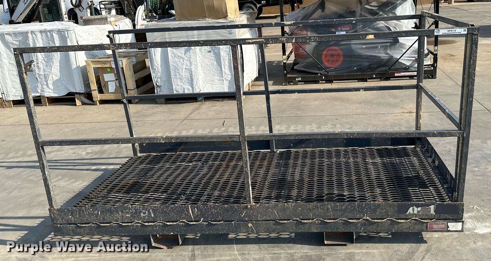 Purple Wave is selling a used Forklift Attach. in Kansas. This item is a Arrow WP48-96-FL work platform with the following: Serial: WP-19566, Dimensions: 96"L x 46"W, Capacity: 1,000 lbs