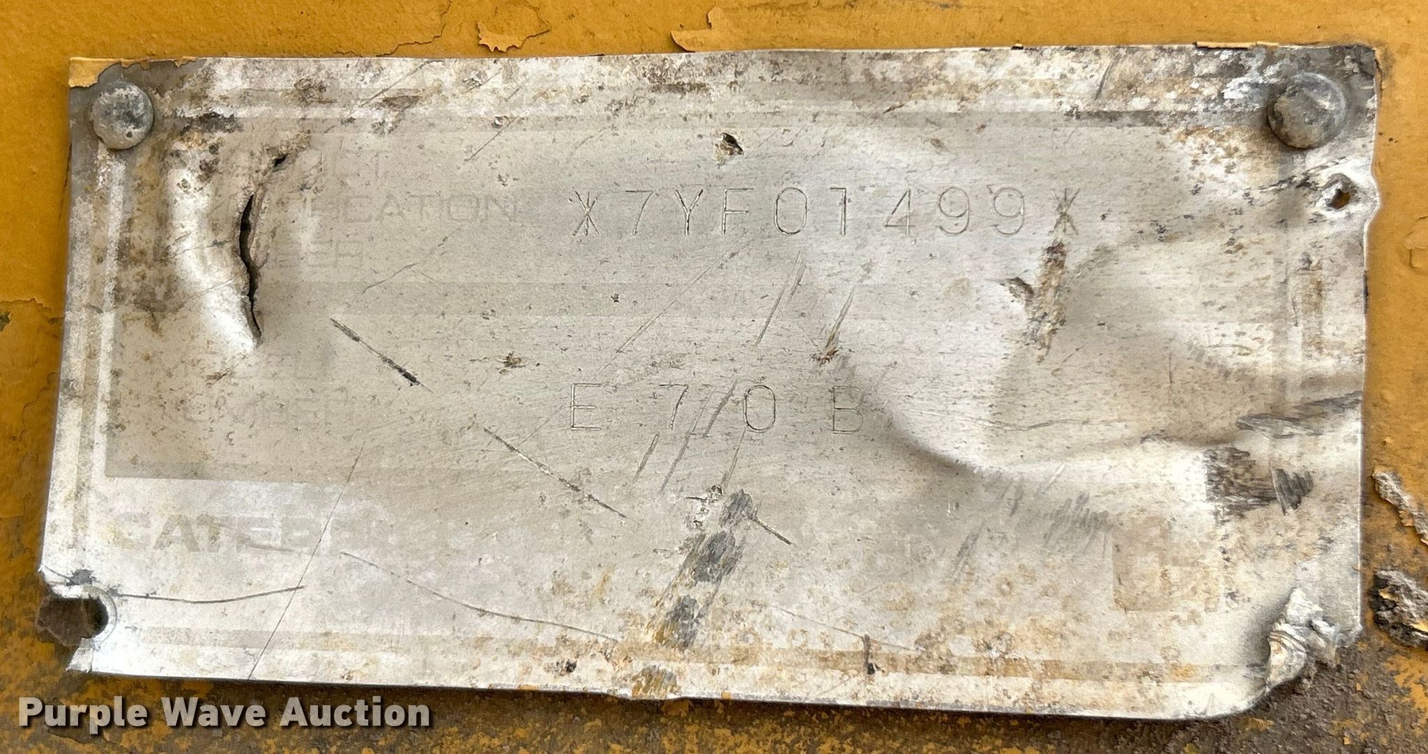 1989 Caterpillar E70B excavator. Hours: 8,099 on meter, Serial: 7YF01499. Engine Fuel type: Diesel. Transmission Hydrostatic. Operators station Enclosed cab, Heat. Features Boom Standard, Stick Stick length: 5', Magnet. Tracks Width: 17.5", Steel, Grouser pads: Triple. Notes Door missing, Glass missing. Foster Salvage. 2781 Illinois 37. Salem, IL 62881