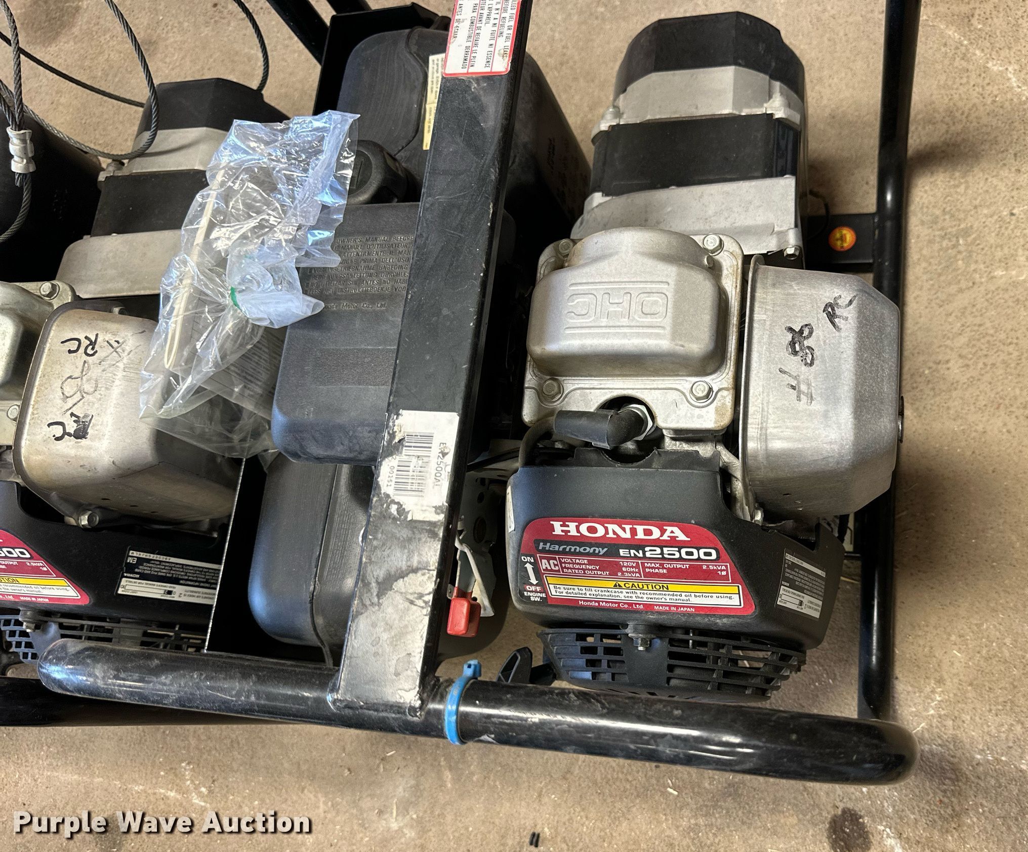 Purple Wave is selling a used Generator Set in Kansas. This item is a (4) Honda Harmony EN2500 generators with the following: Honda, Displacement: 160 cc, Cylinders: 1, Fuel type: Gas, HP: 5