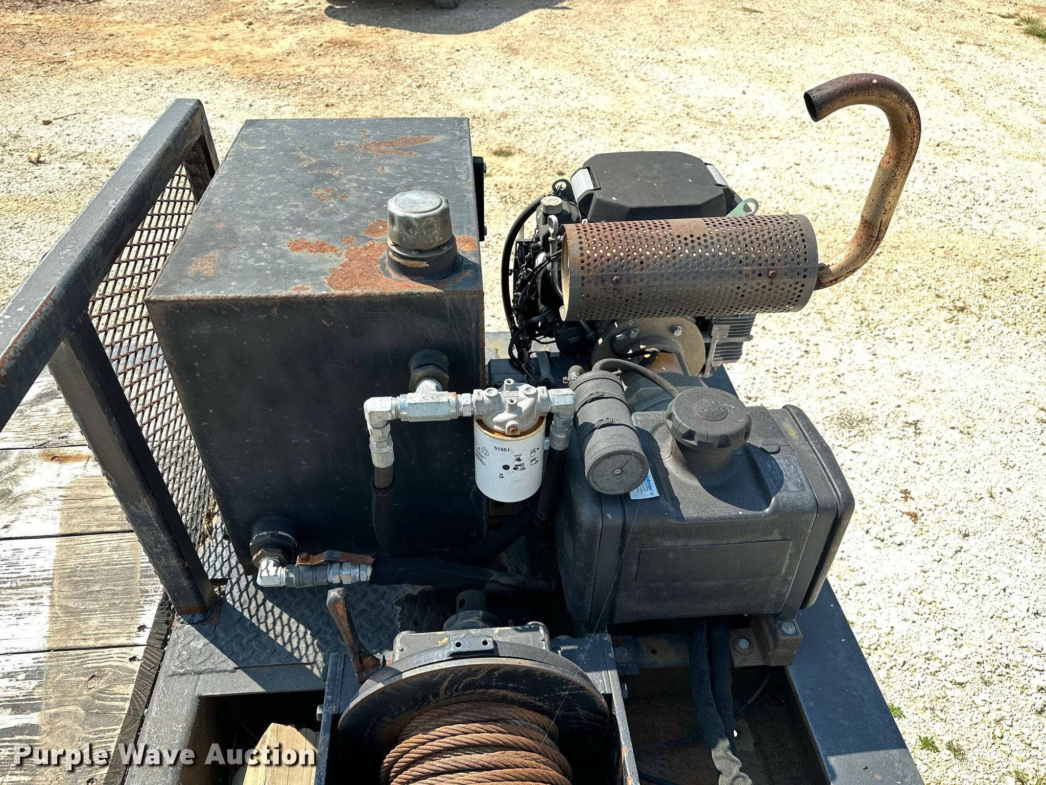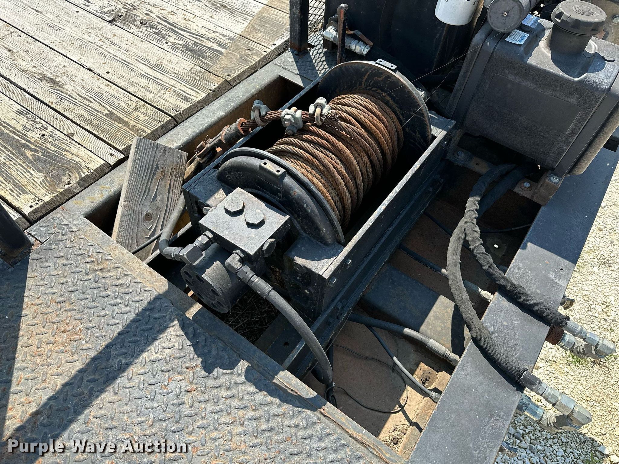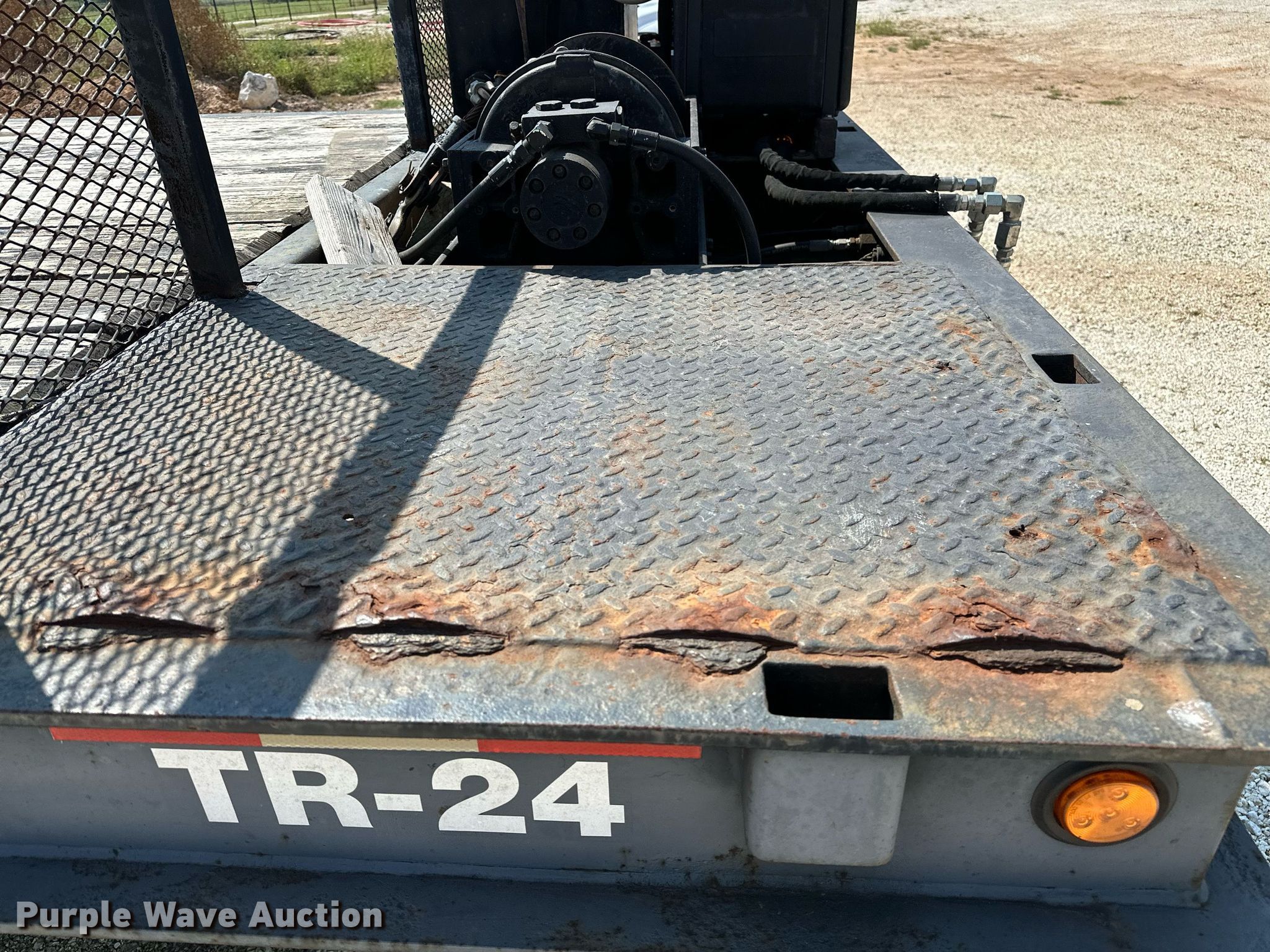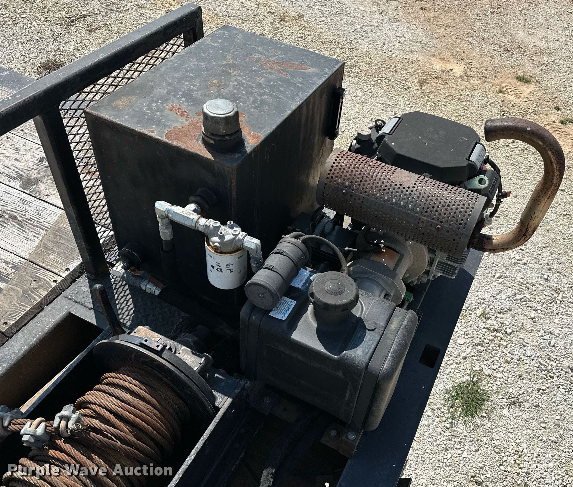 2000 Dakota Trail-EZE drop deck equipment trailer. VIN: 1DA72C733YC014947. Dimensions Overall: 48' L x 102" W, Deck: 38' 3" L x 96" W, Top deck length: 6' 3", Deck height: 20", Hydratail length: 96", Ramps: Hydraulic Length: 48". Features Deck type: Steel, Wood, Board size: 9", Self-contained hydraulics, Winch. Engine Honda, Fuel type: Gas, Cylinders: 2, Hours: 133 on meter. Chassis Landing gear: Dual, Suspension: Air, Brakes: Air, Axles: Tandem, GVWR: 43,591 lbs, GAWR: 9,716 lbs. Tires Steel wheels, Size: 235/75R17.5. Arkansas title. Title distribution may be delayed up to 14 days from verification of funds. 13316 Rheas Mill Road. Farmington, AR 72730