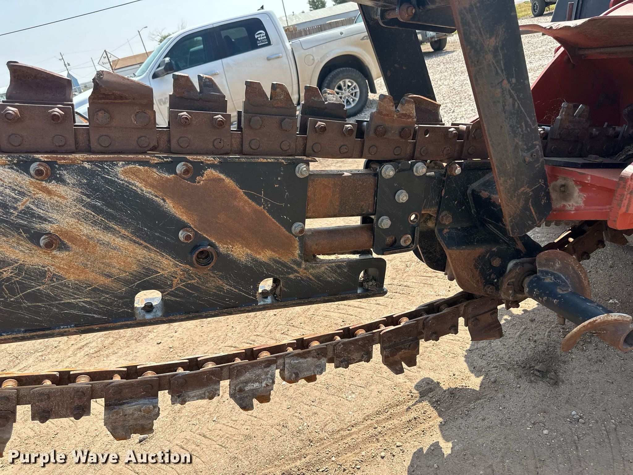 2006 Ditch Witch RT75 trencher. Hours: 2,086 on meter, Serial: CMWRT75MJ60000024. Engine John Deere, Displacement: 4.5L, Cylinders: 4, Fuel type: Diesel. Transmission Hydrostatic, Two speed travel, Four wheel drive. Operators station Canopy. Features Trencher Model: M910, Estimated dig depth: 96", Cutting width: 7", Teeth: Rock, Dirt, Backfill blade Width: 72". Tires Size: 35x19.00-16.1. Notes Engine issues, knocks. 1935 W Second Street. Liberal, KS 67904