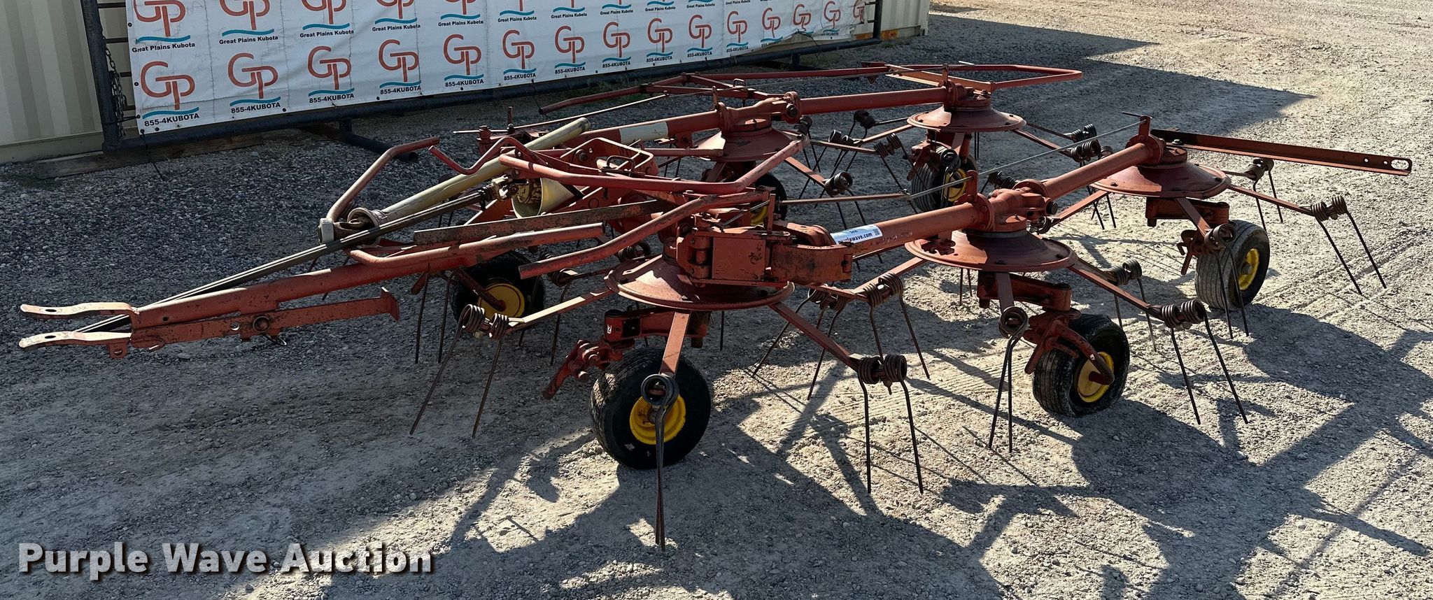 Purple Wave is selling a used Hay Rake in Oklahoma. This item is a New Holland 169 hay tedder with the following: Serial: 960163