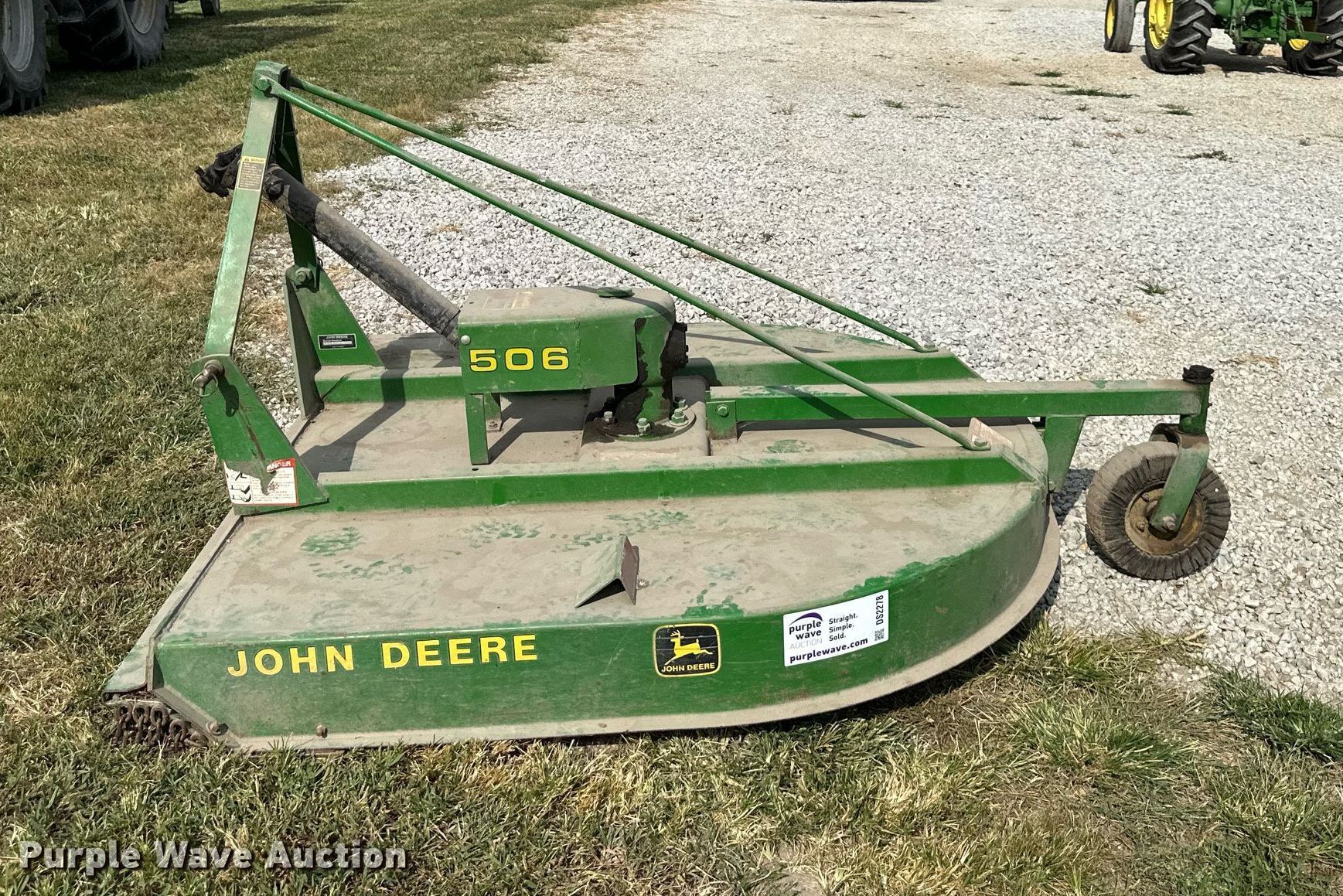 Purple Wave is selling a used Mower, Cutter, Shredder in Kansas. This item is a John Deere 506 rotary mower with the following: Serial: W005060037954