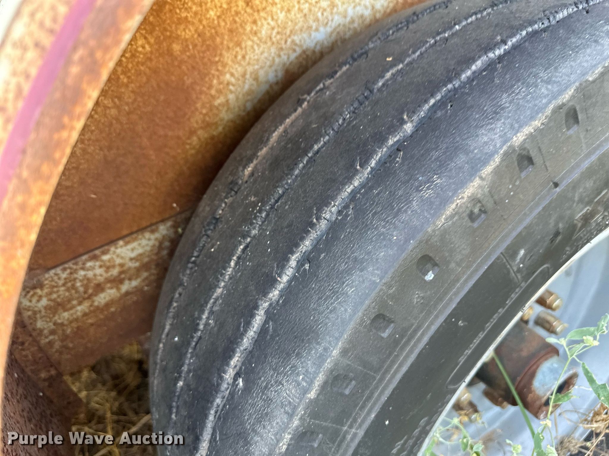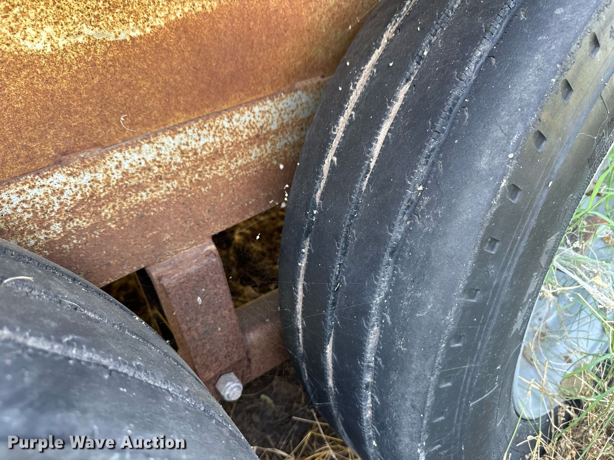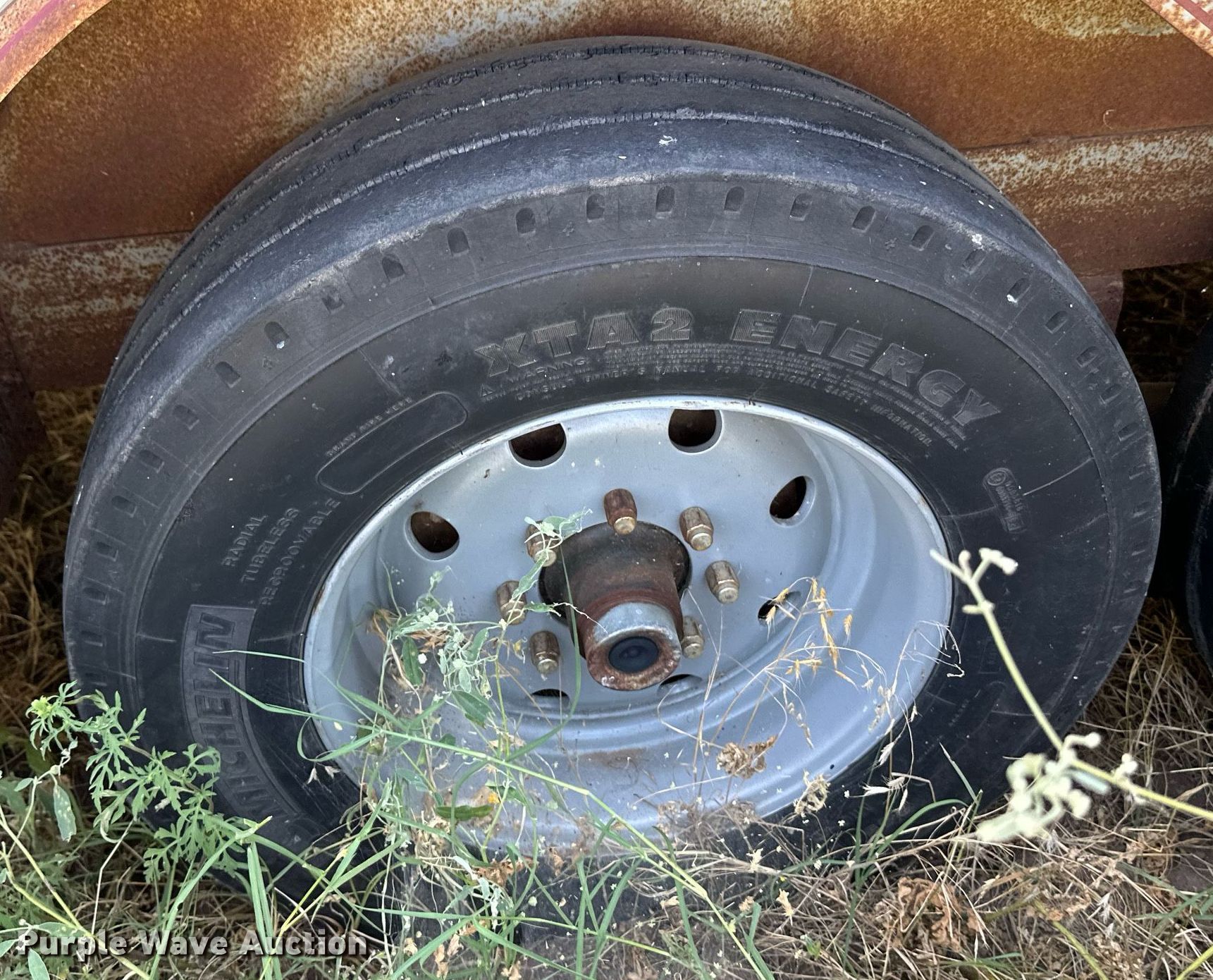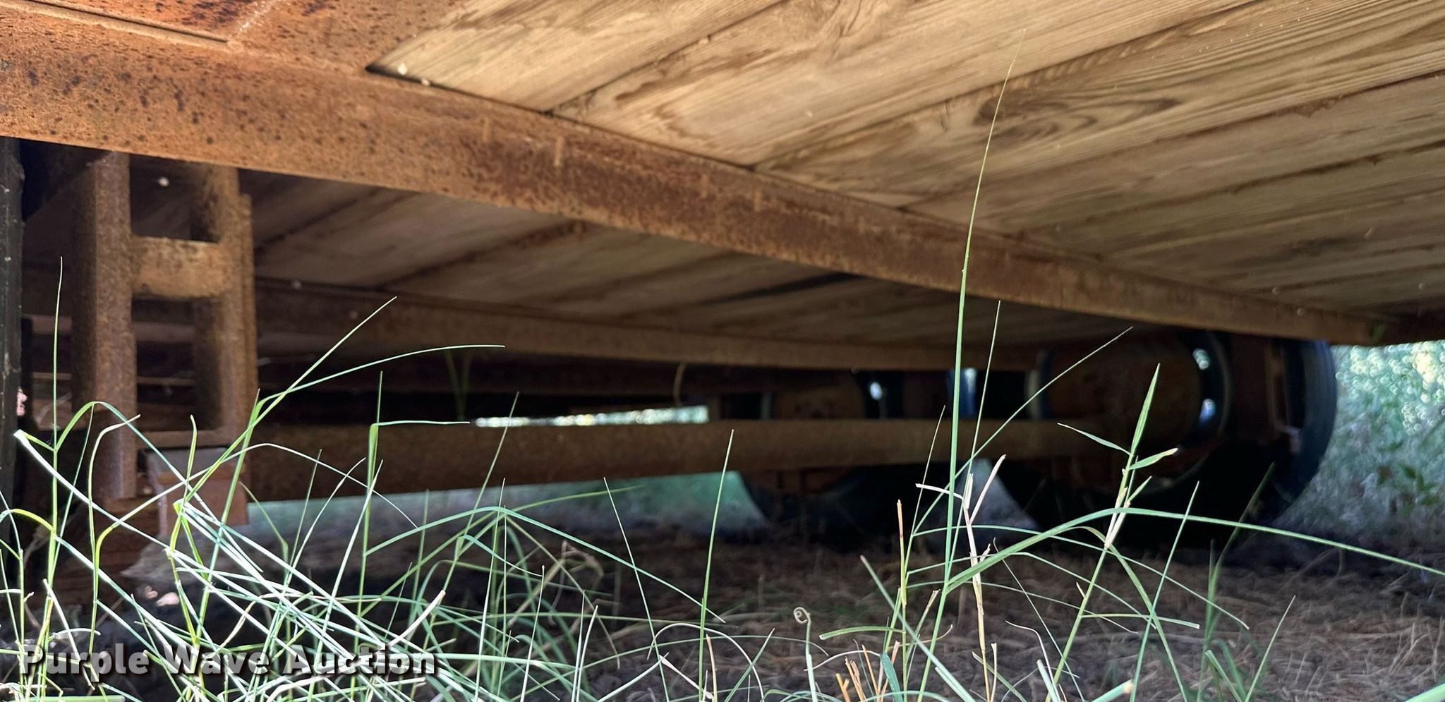 1988 Travalong livestock trailer. VIN: 138GS2023J1007296. Dimensions Overall: 27' 6" L x 102" W, Body: 20' L x 82" W. Features Center gates: 1. Chassis Hitch: Gooseneck, Landing gear: Single, Suspension: Spring, Brakes: Electric, Axles: Tandem, GVWR: 14,500 lbs, GAWR: 7,000 lbs. Tires Steel wheels, Size: 245/70R17.5. Notes Trailer wiring plug missing. Kingman, KS 67068