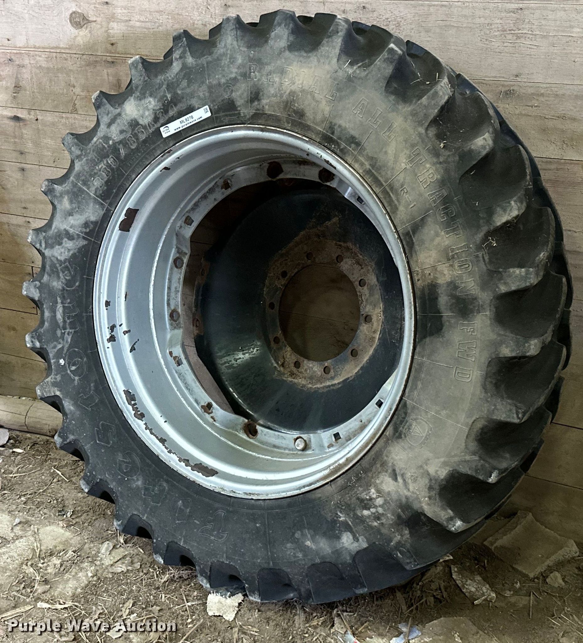 380/85R34 tire and wheel | SOLD! October 04 Ag Equipment Auction