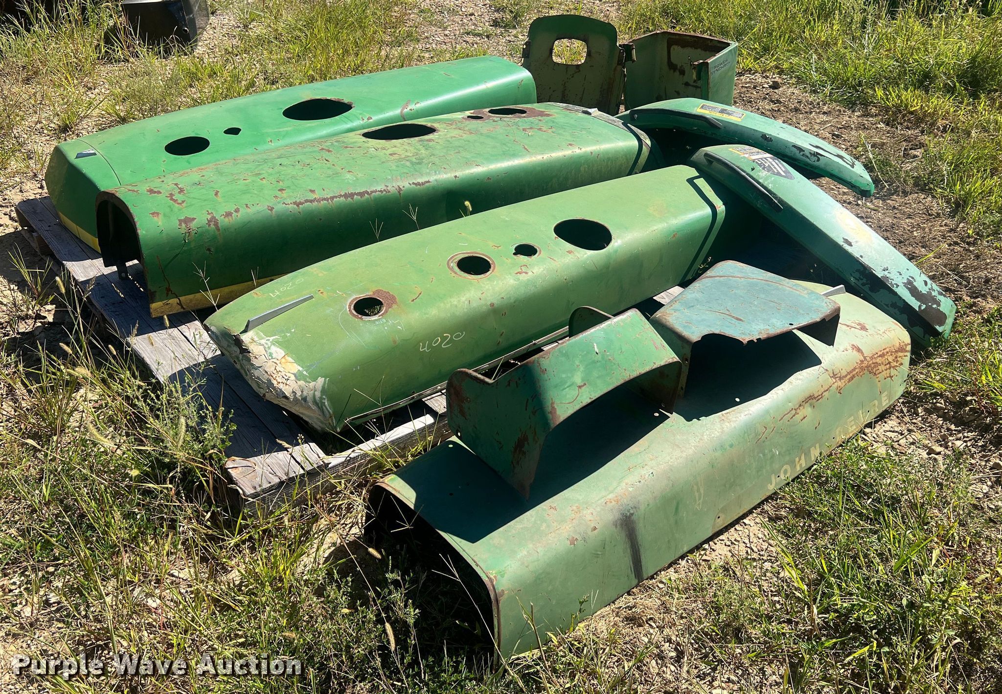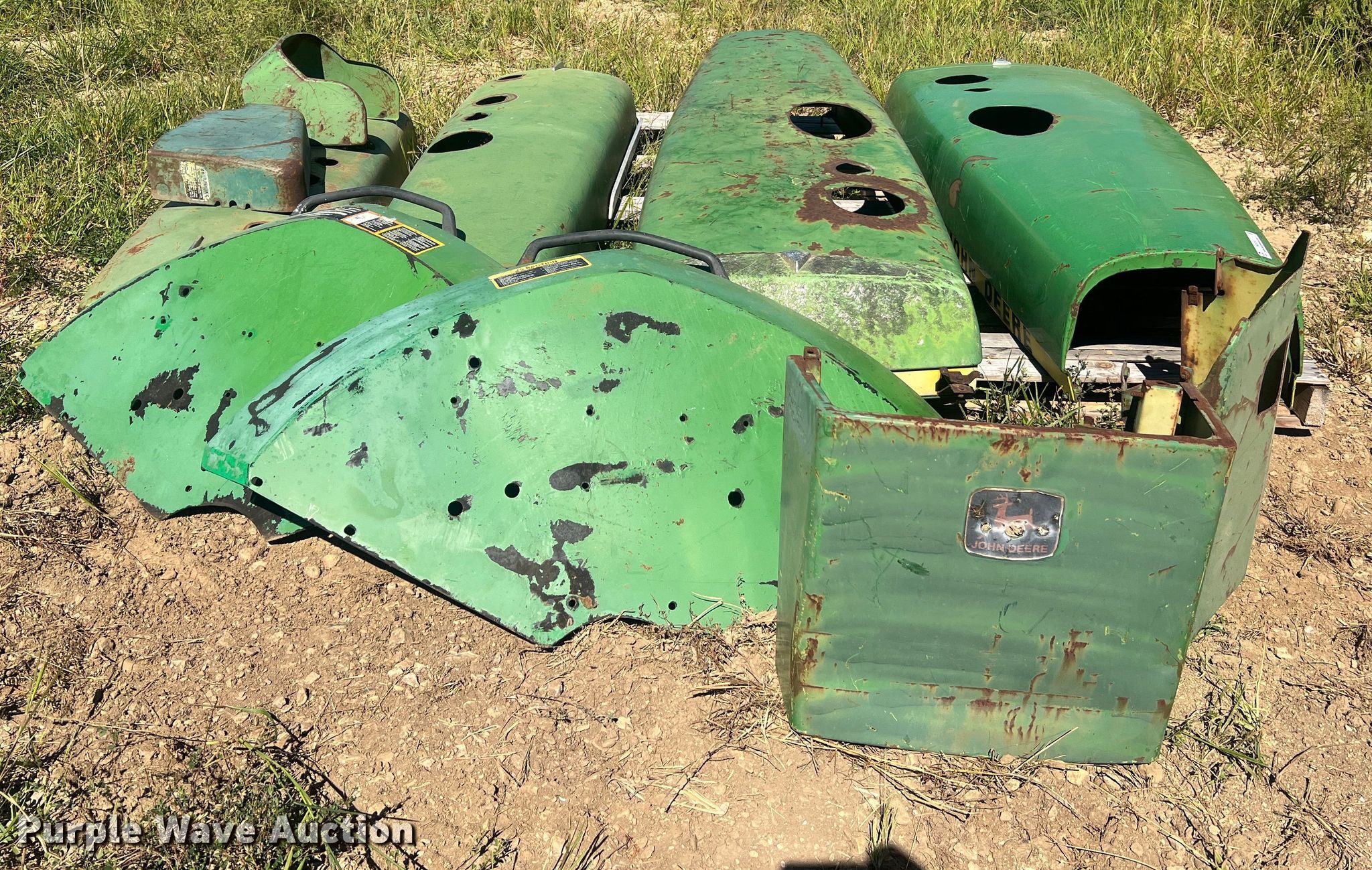 Purple Wave is selling a used Ag Tractor Loader or Attach. in Missouri. This item is a Tractor parts with the following: Hood, Fits John Deere 8640, Hood, Fits John Deere 8430, (2) hoods, Fits John Deere 4020, Side cover, Fits John Deere 4020, (2) fenders and more