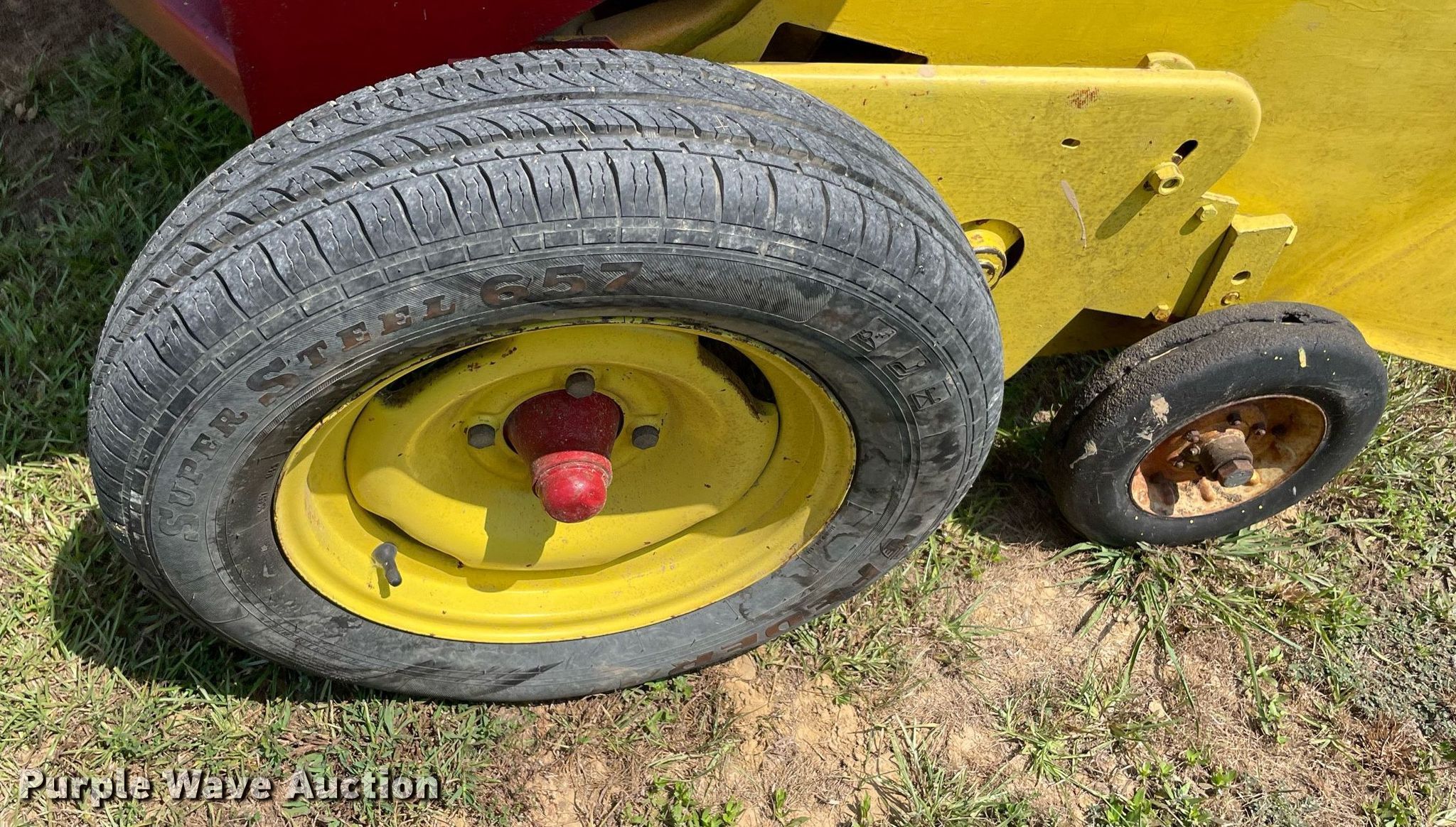 New Holland Hayliner 271 small square baler. Serial: 6084. Features PTO: 540, Gauge wheels, Pickup width: 5', Wire tie, Bale chute. Tires Size: 7.00-15. 3408 State Highway 37. Garvin, OK 74736