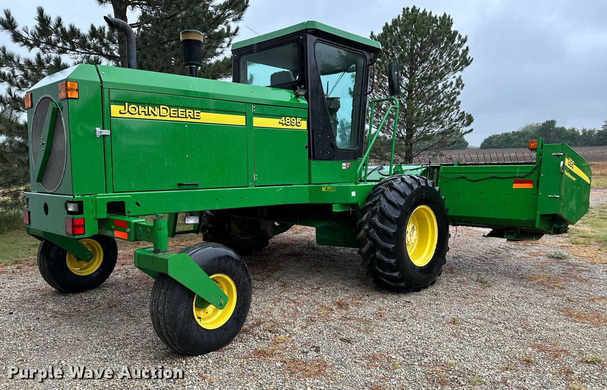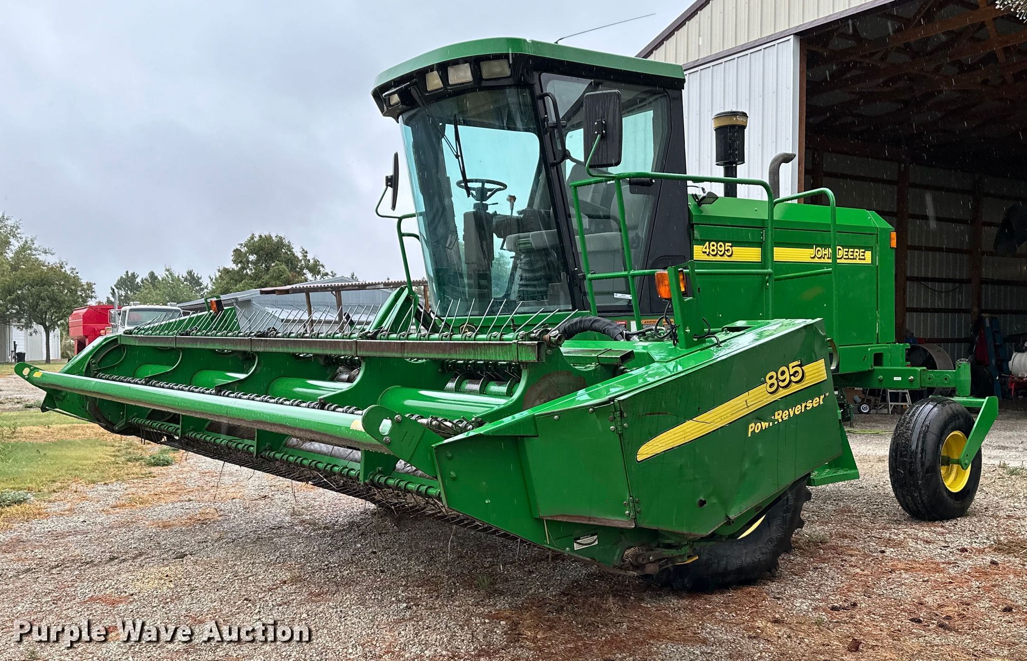 Purple Wave is selling a used Windrower Self Propelled in Kansas. This item is a 2004 John Deere 4895 swather / windrower with the following: Engine hours: 1,772 on meter, Header hours: 1,414 on meter, Serial: E04895X300128