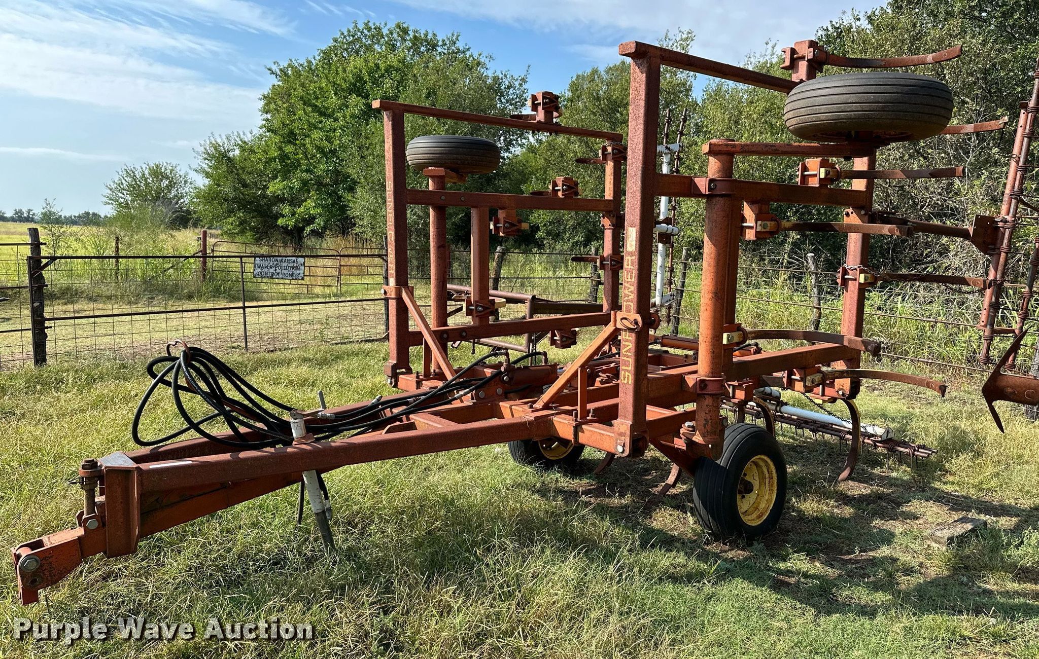 Sunflower chisel. Overall width: 20'. Features Shanks: 21, Operation Hydraulic lift, Hydraulic fold, Attachments Tine harrow Harrow bars: 3.. Tires Tire size: 9.5L-15. Sharon, KS 67138