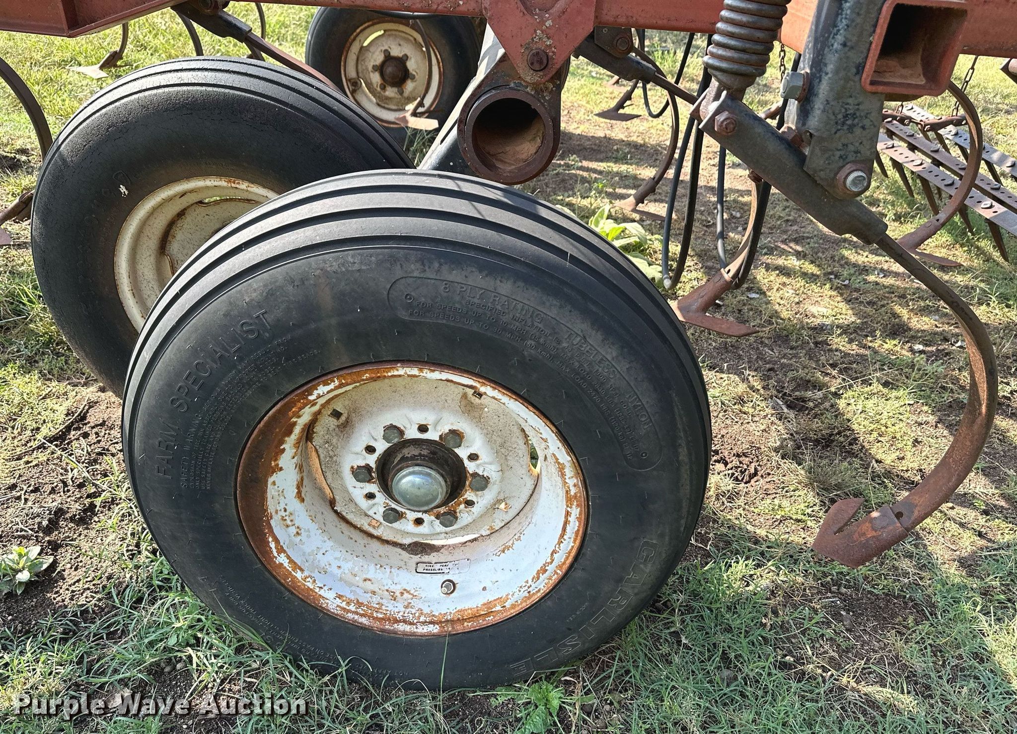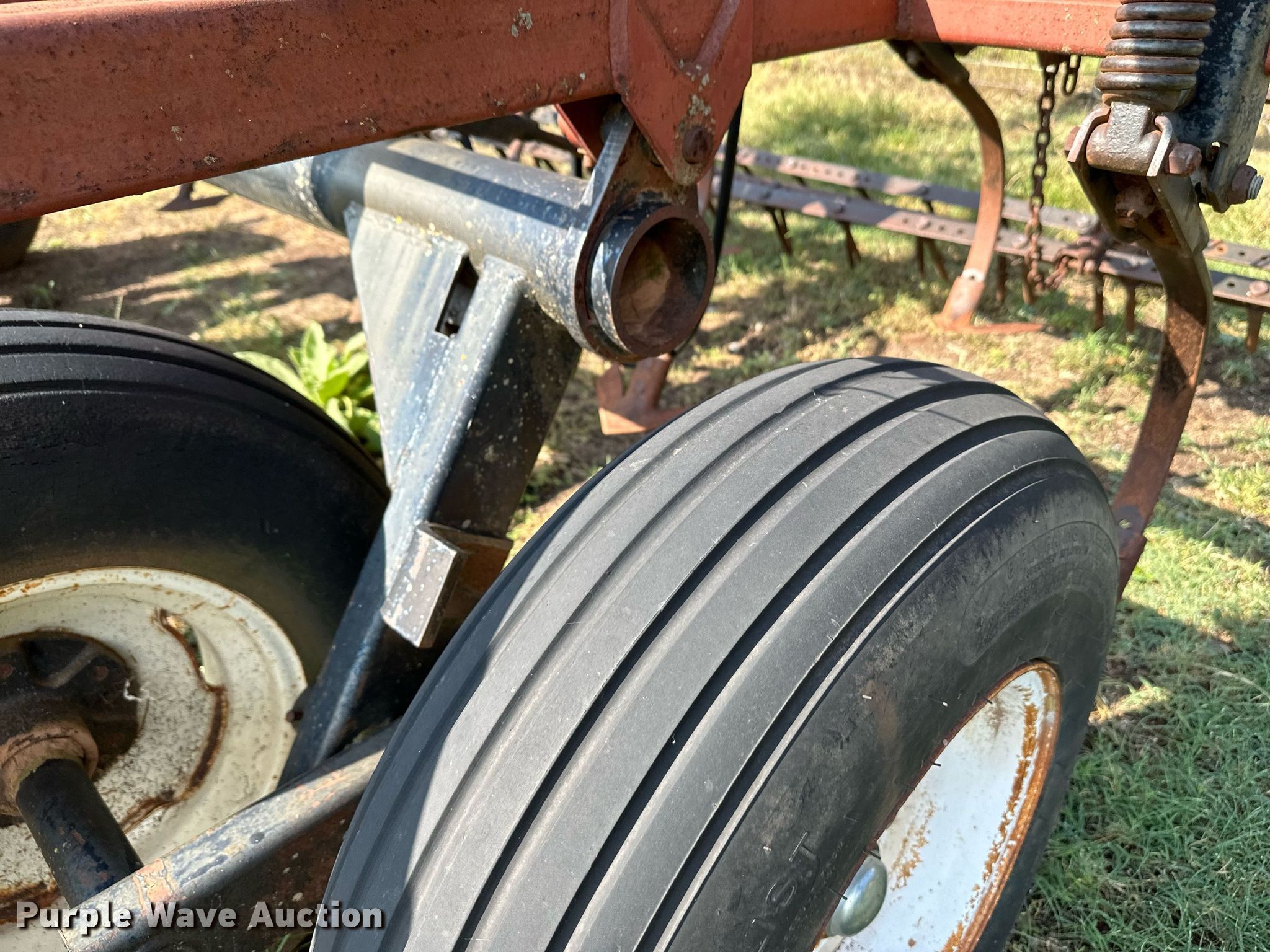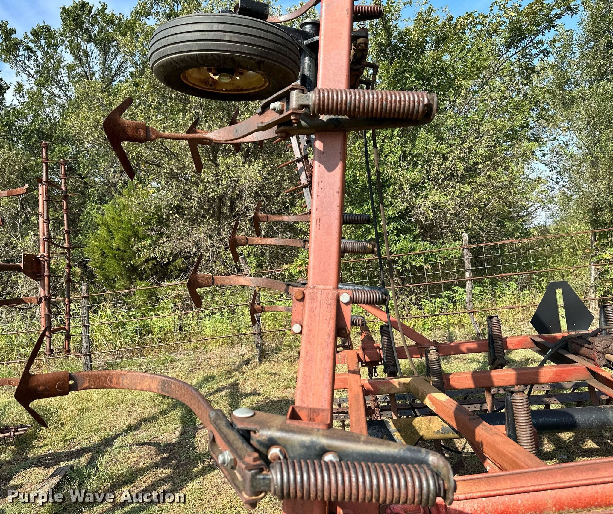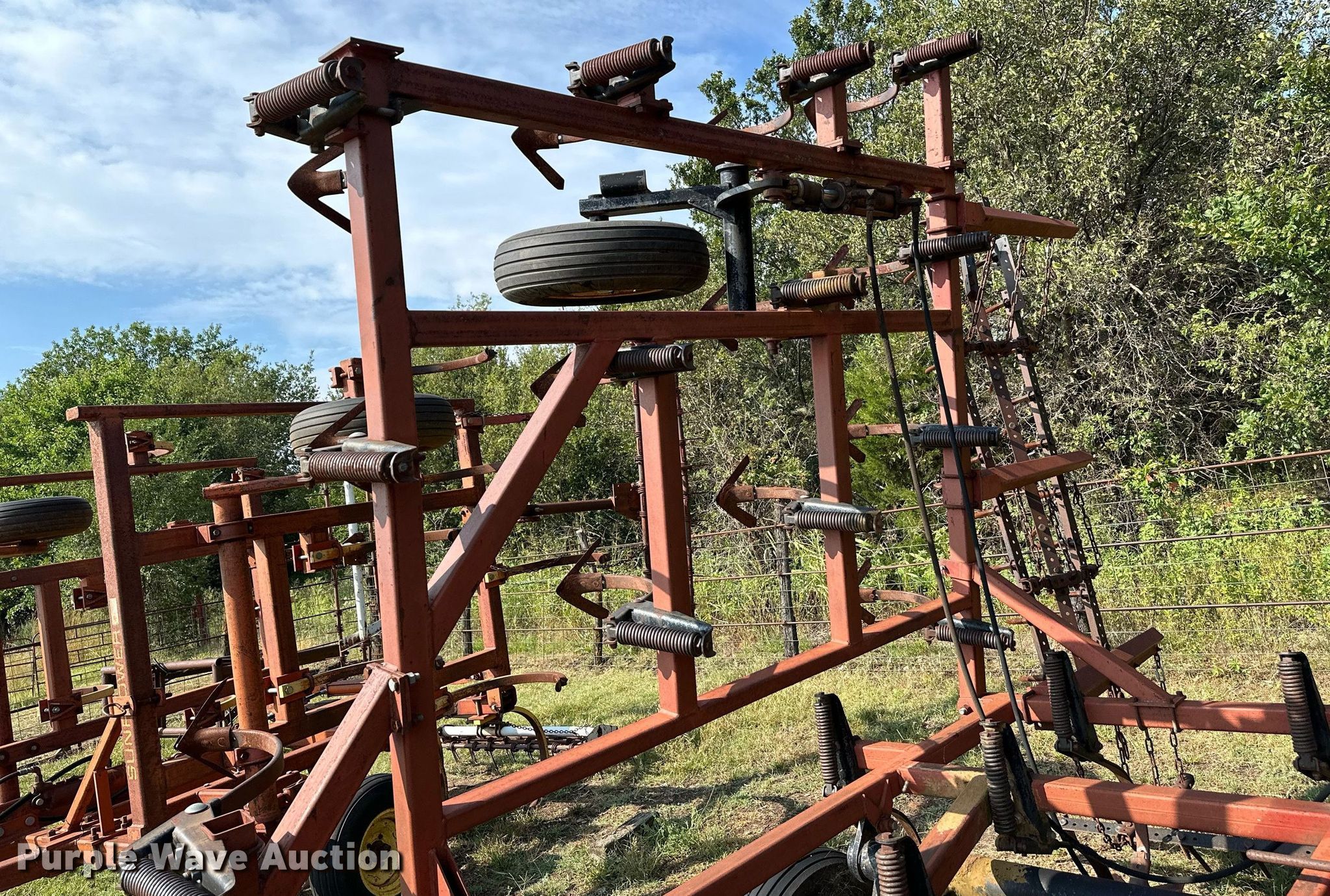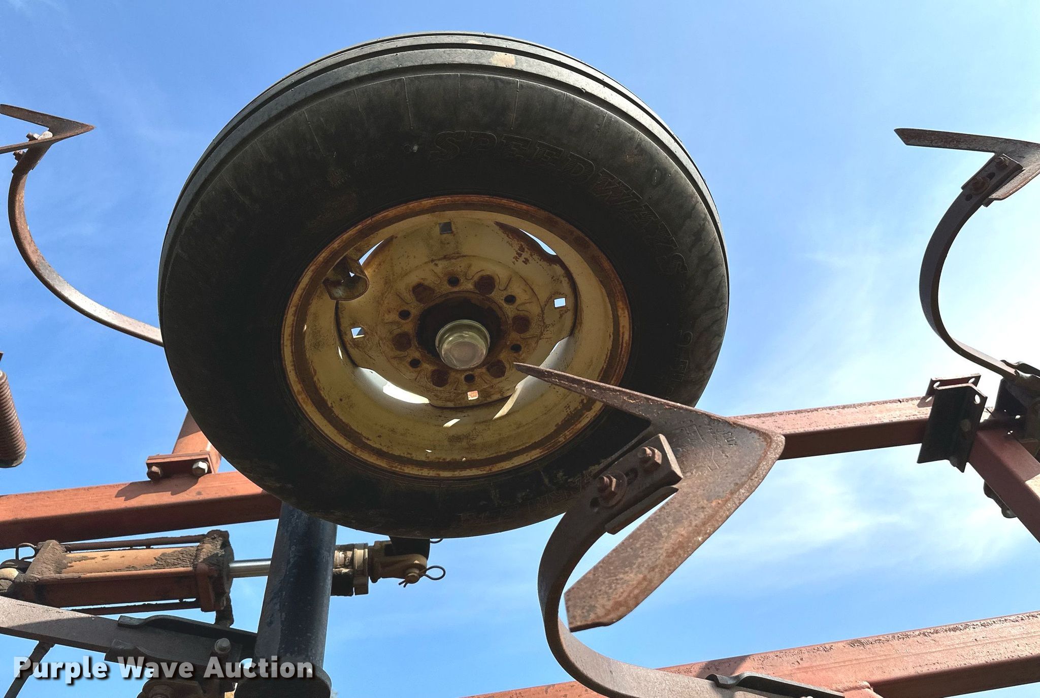 Kent Series IV field cultivator. Overall width: 26'. Features Shanks: 45, Sweep width: 10", Operation Hydraulic lift, Hydraulic fold, Walking tandem axle, Attachments Spike tooth harrow Harrow bars: 3.. Tires Tire size: 9.5L-15, 11L-15. Sharon, KS 67138