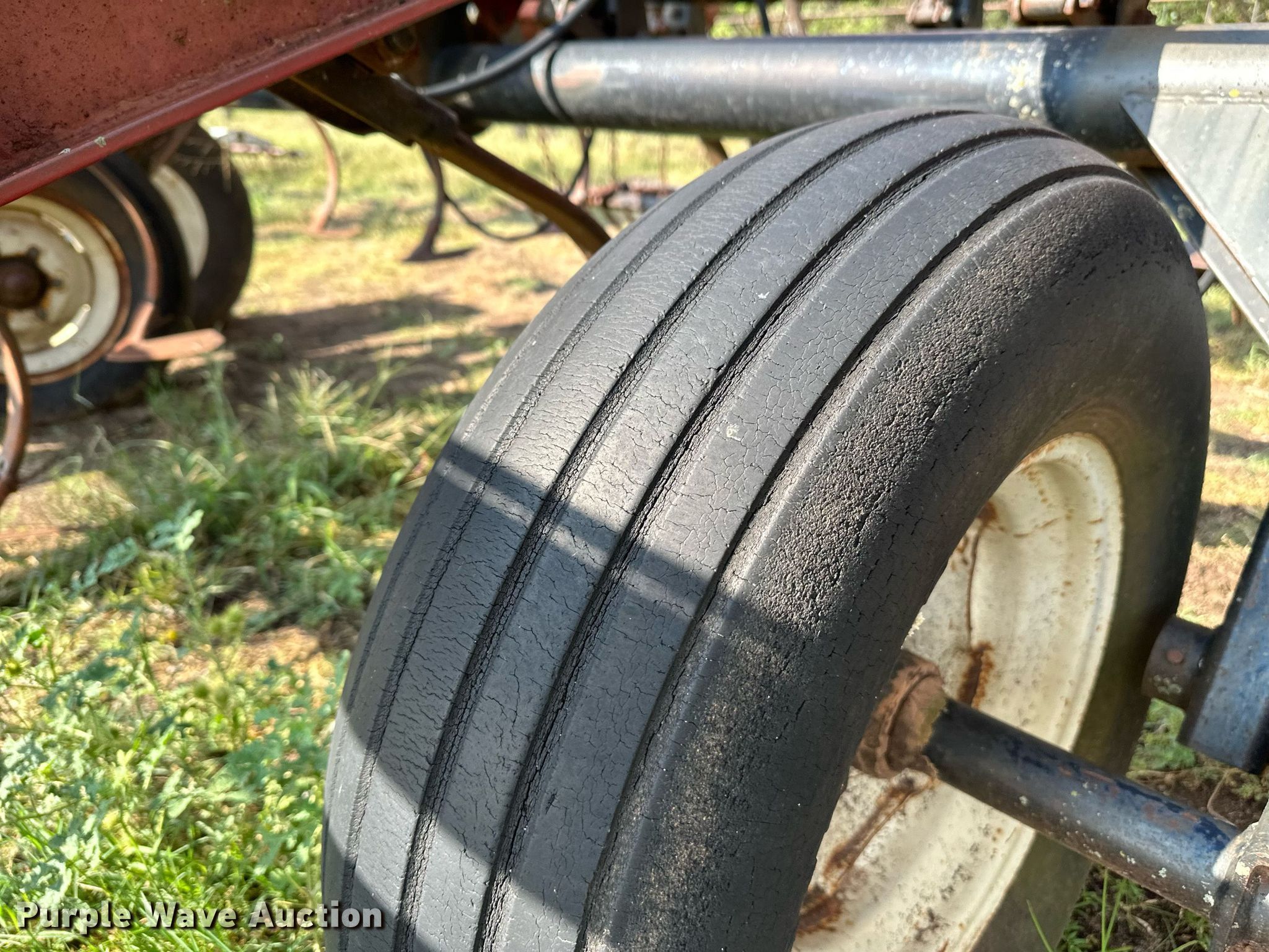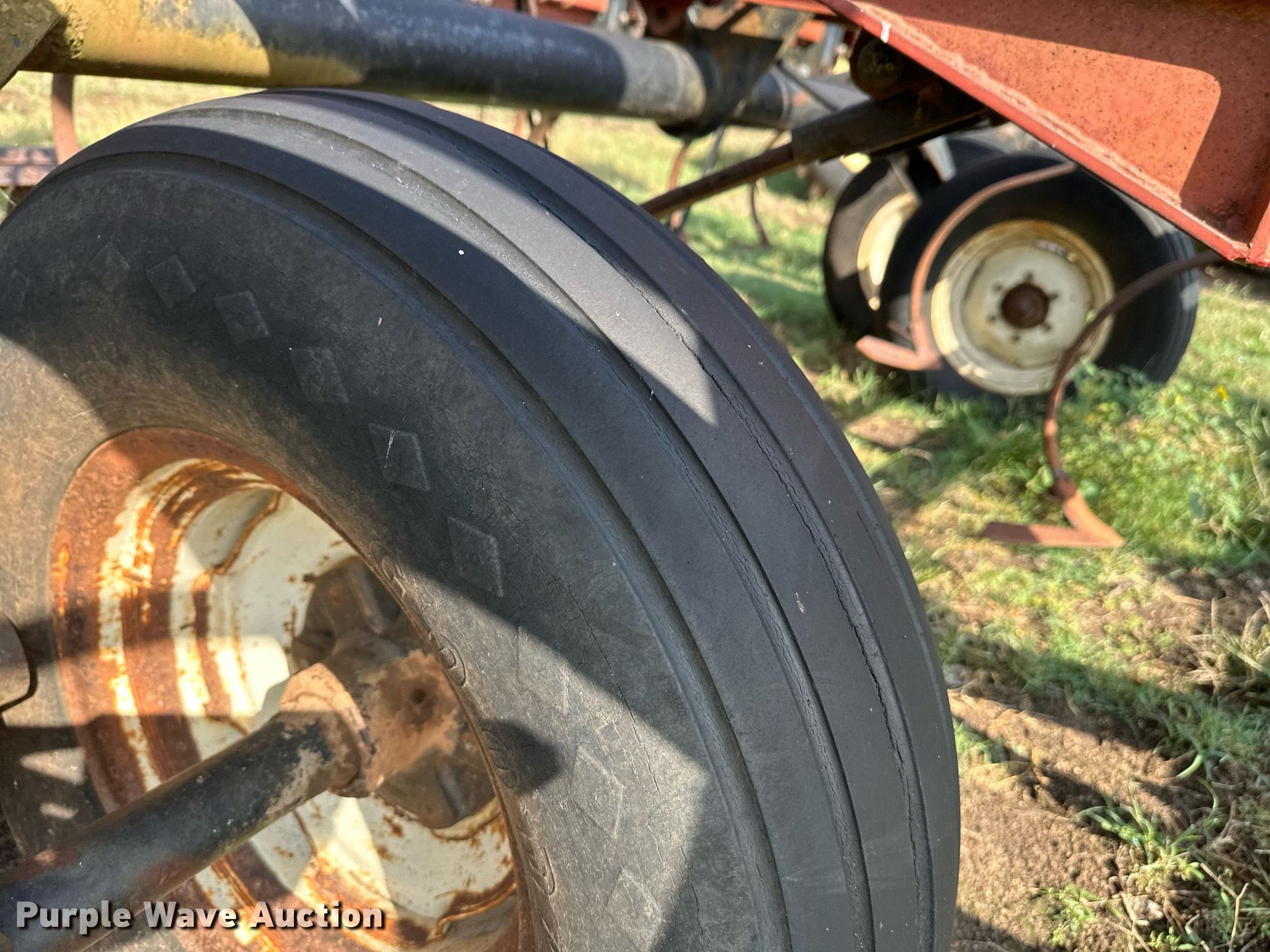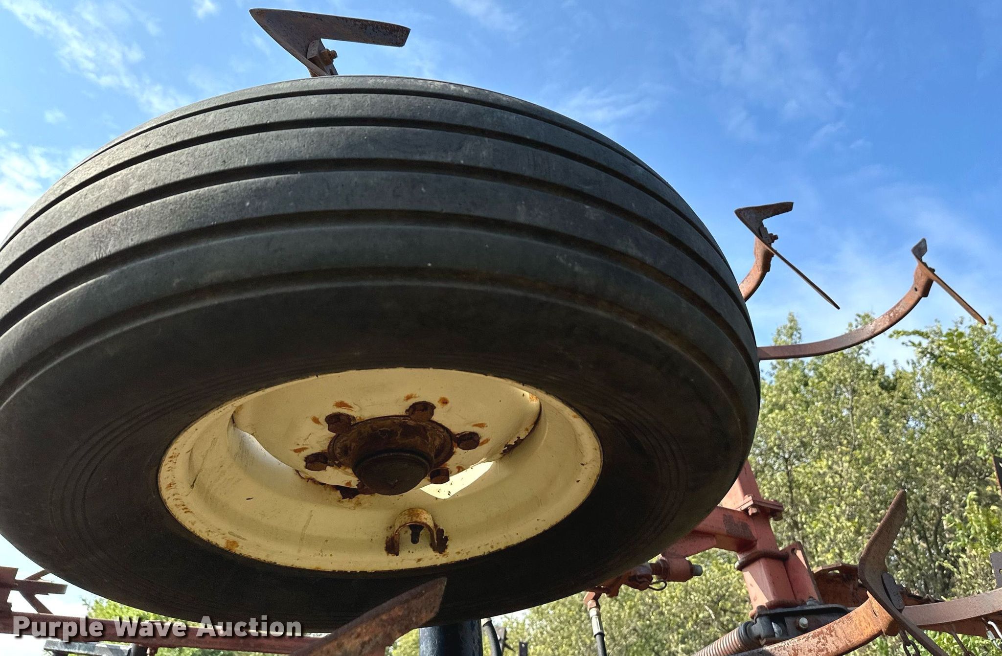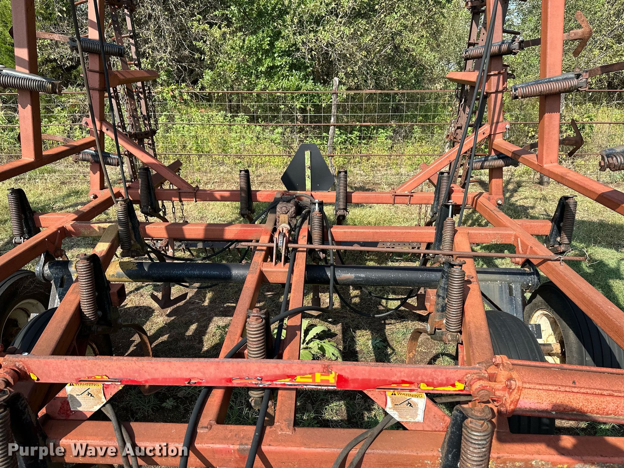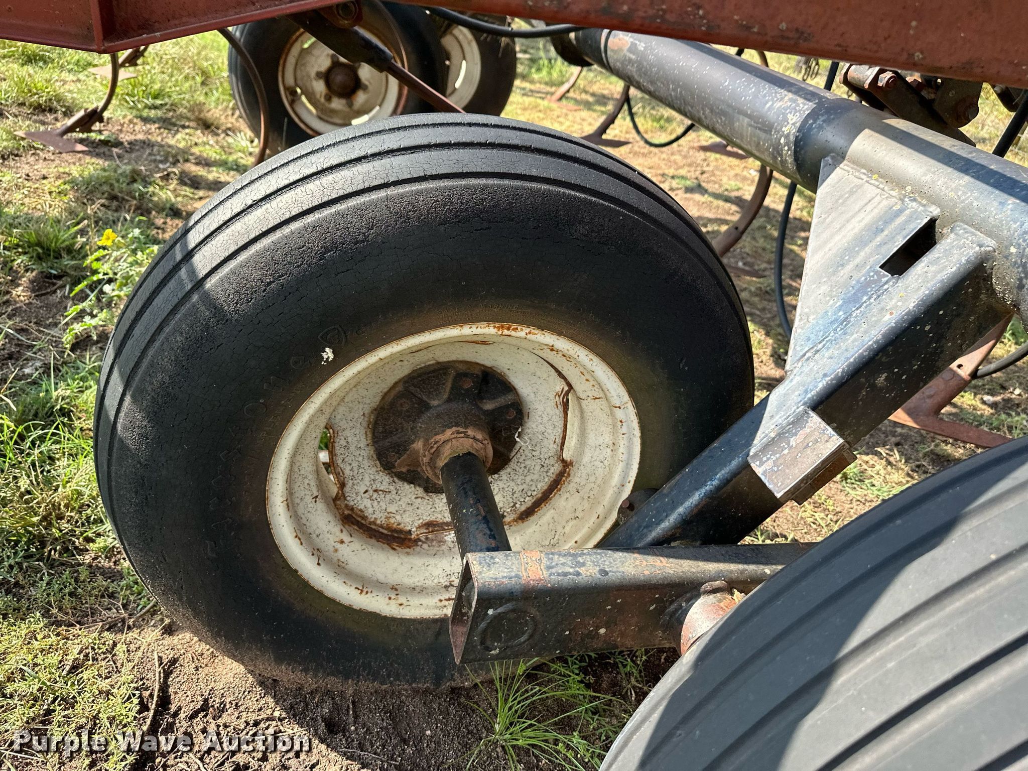 Kent Series IV field cultivator. Overall width: 26'. Features Shanks: 45, Sweep width: 10", Operation Hydraulic lift, Hydraulic fold, Walking tandem axle, Attachments Spike tooth harrow Harrow bars: 3.. Tires Tire size: 9.5L-15, 11L-15. Sharon, KS 67138